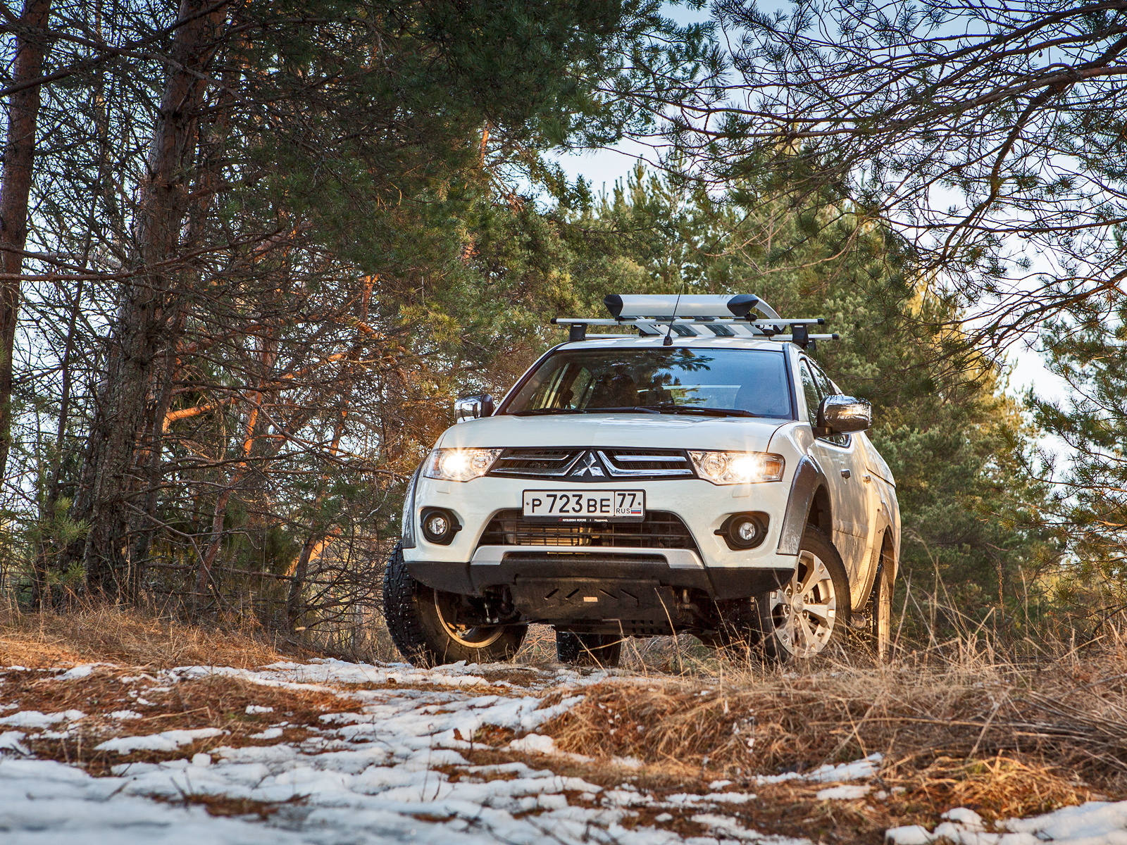 Зато при медленном движении мягкая подвеска, по-внедорожному длинный руль (почти четыре оборота от упора до упора) и полный привод позволяют творить чудеса. Водитель пикапа L200 может сам выбирать направление движения, даже если дороги нет и в помине, стоит лишь подключить передок и задействовать понижающую передачу, а также принудительно заблокировать межосевой и задний дифференциалы. Конечно, в данном случае неплохо бы иметь лебёдку, лопаты и реечный домкрат. Но недаром L200 позиционируется компанией Mitsubishi не только как рабочая лошадка, но и как доступный внедорожник. Бывалые джиперы рассказывали мне, что соплатформенная L200 модель Pajero Sport — едва ли не идеальный вариант для энтузиаста: и базовых возможностей немало, и доработки не требуют существенных вложений.