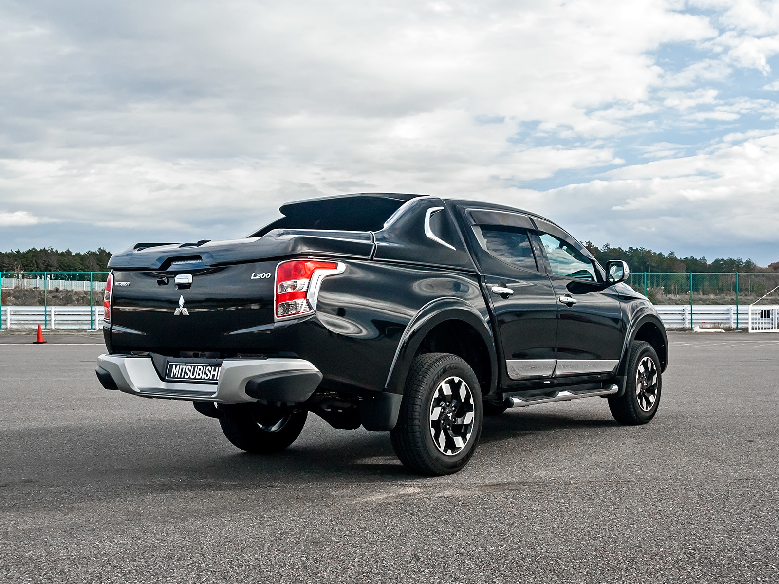 Для тестов выкатили четырнадцать машин. Вопреки ожиданиям, праворульных среди них всего две, полноприводных — половина, а версия для России — одна-одинёшенька. Зато какая… На фоне заднеприводных пузотёрок для европейского рынка наш Mitsubishi L200 выглядит настоящей разбойничьей тачкой: Are you Gangsters? — No, we are Russians. Только «русский» пикап окрашен в чёрный цвет Pyrenees Black, только у него имеется грозная крышка со спойлером над грузовой платформой, и только ему нацепили диски самого агрессивного дизайна. Что японцы о нас думают? Или это шутка такая?