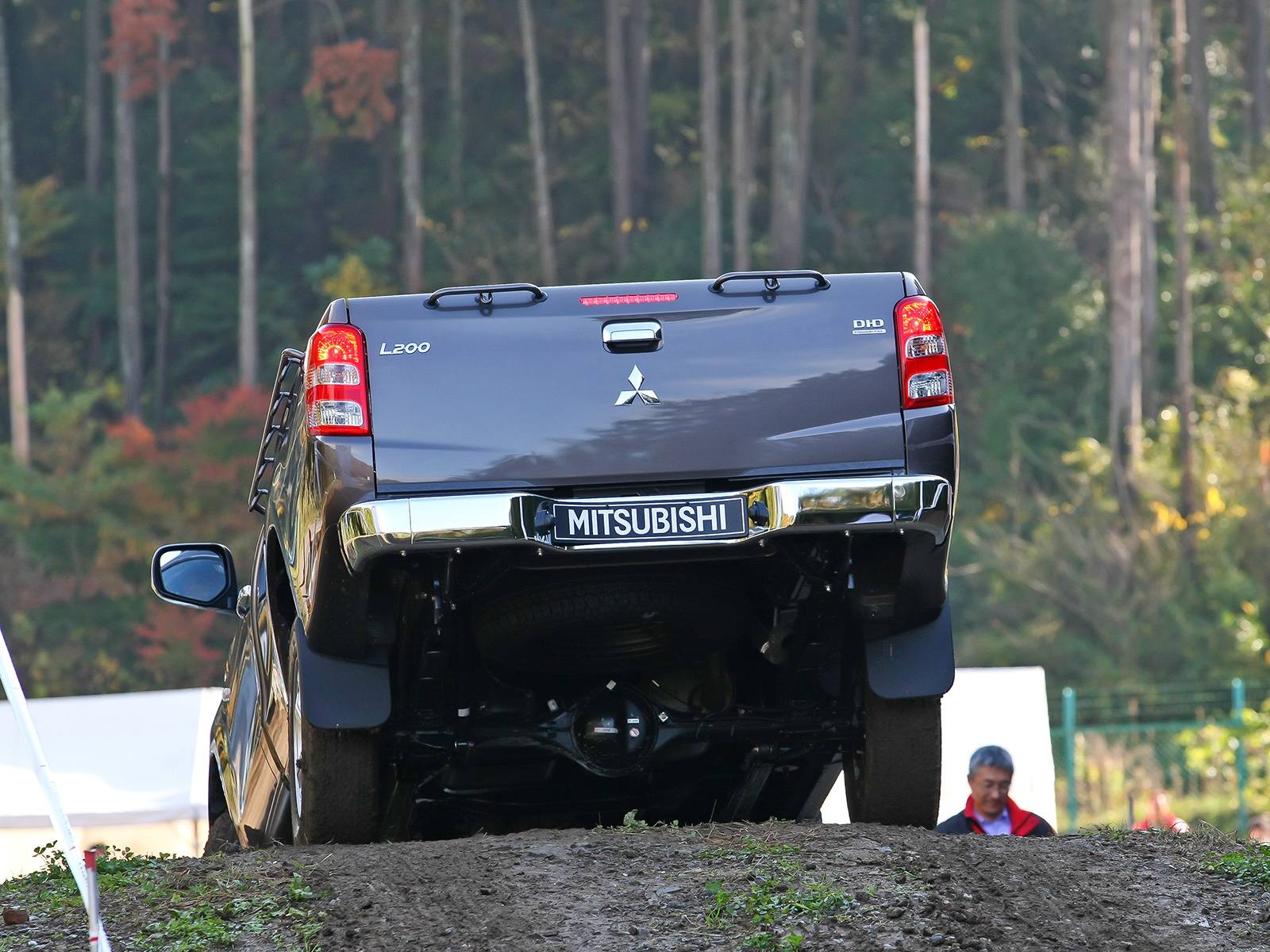 Построить своими руками место для демонстрации внедорожных способностей Mitsubishi L200 японцам оказалось проще, чем найти. Неподалёку от трассы они маленьким экскаватором нарыли на пятачке земли крутые горки, устроив эдакую грязевую песочницу диаметром с крупную карусель. Разумеется, никто не сомневался, что рамный пикап с клиренсом 205 мм, углом въезда 30 градусов, съезда 22 и углом рампы 24 градуса выступит в этих условиях шутя. Интереснее стало, когда машины намесили густые колеи, нарыли ям, заставив не ползти и ехать, а шкандыбать и корячиться. Тут начали случаться промахи в поворотах, вывешивания, пробуксовки. А любимицей публики стала финальная лужа, из которой L200 победно выстреливал фейерверком жижи. Так пикап Mitsubishi лишний раз доказал, какой он хороший и доступный внедорожник.