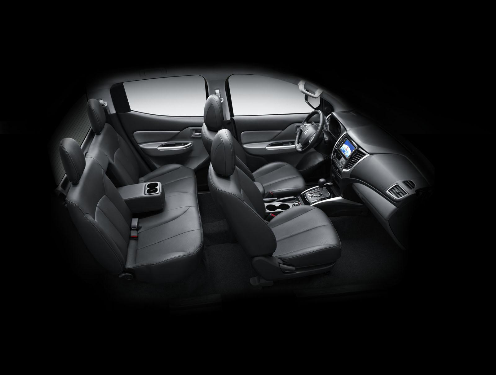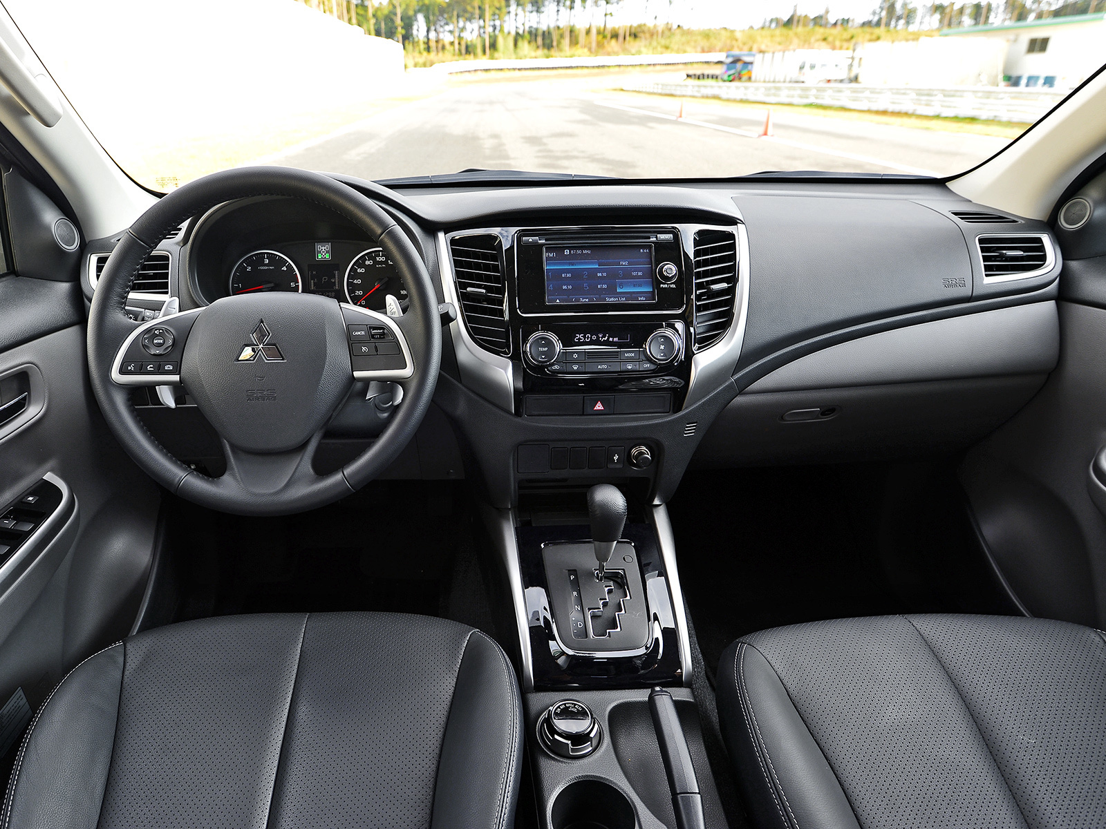 Возможностей предыдущего топового для L200 мотора (178 л.с., 350 Н•м), в общем-то, хватало за глаза. Ну а новейший турбодизель MIVEC 2.4 — самый мощный в истории пикапа. Выезжаю на гоночный трек и, прежде чем продавить акселератор, во время ознакомительного круга осматриваюсь в салоне с водительского кресла. «Четвёртый» L200 интерьером не блистал, этот тоже простоват, но в утилитарной лошадке определённо стало лучше.
