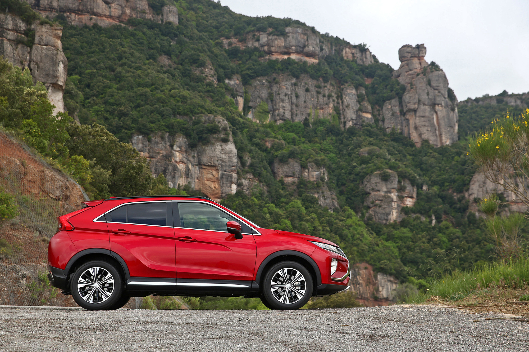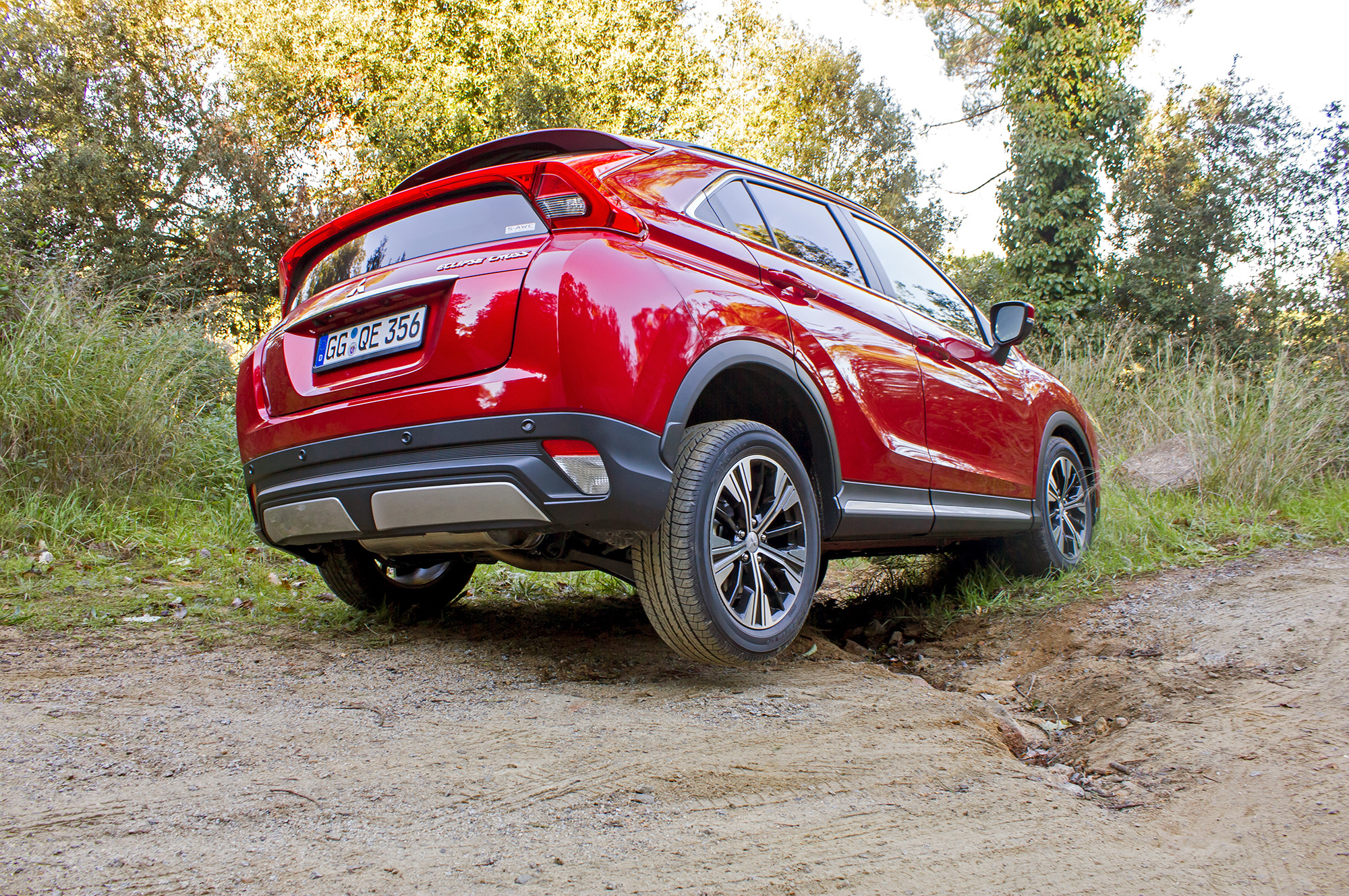 На бездорожье хватает ограничений. Это и скромный клиренс, и масса узлов, выступающих снизу, включая бензобак. На выбор предложены ездовые режимы «Гравий» и «Снег», но в ходе вылазки в горный испанский лес проку от них я не заметил. Причём даже в дорожном режиме Eclipse Cross выдержал двадцатикратное трогание «в пол» посуху на крутом грунтовом склоне, не проявив и намёка на перегрев вариатора или муфты.