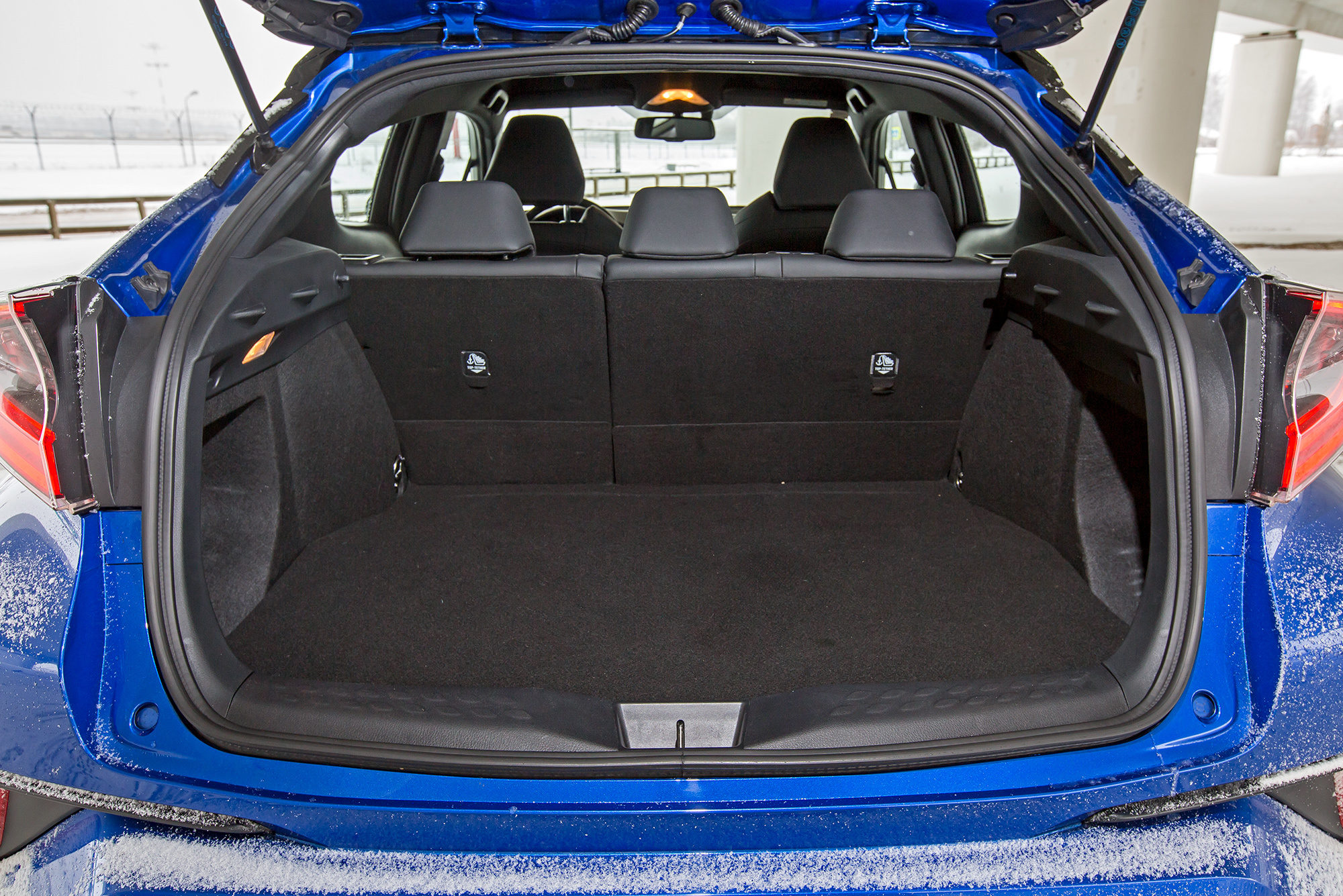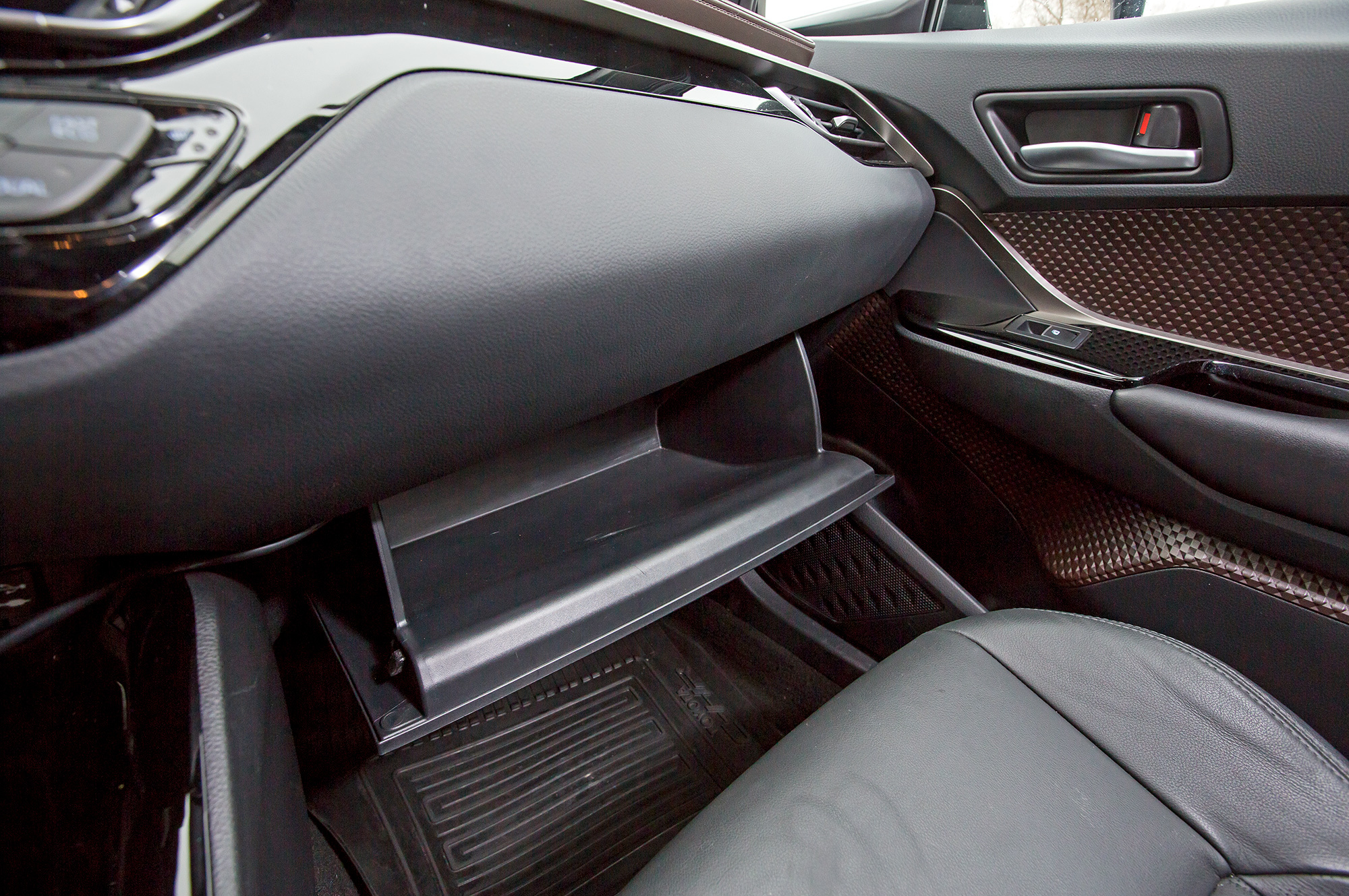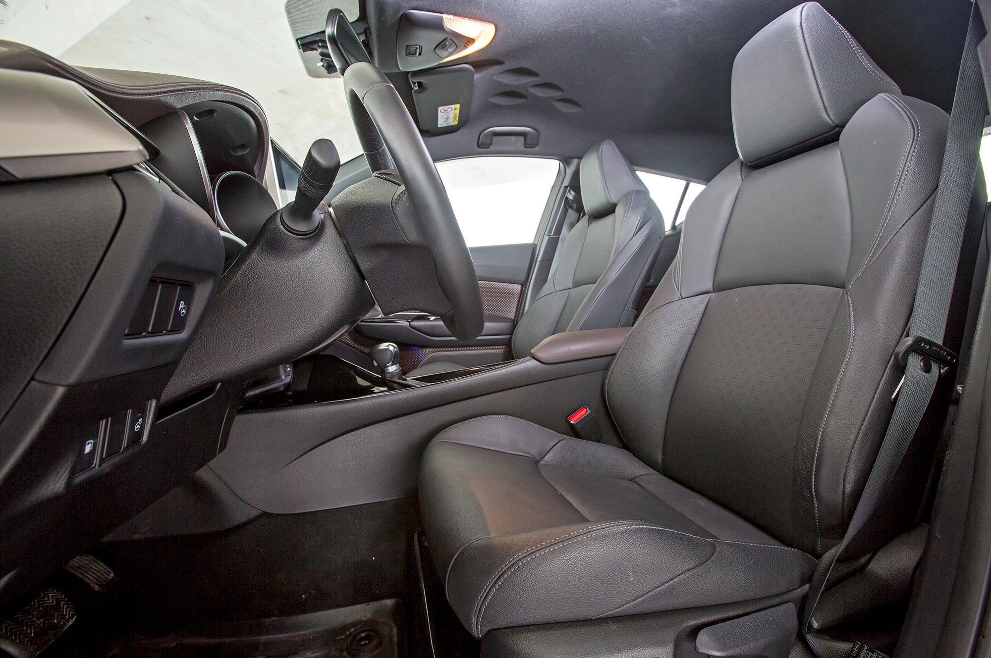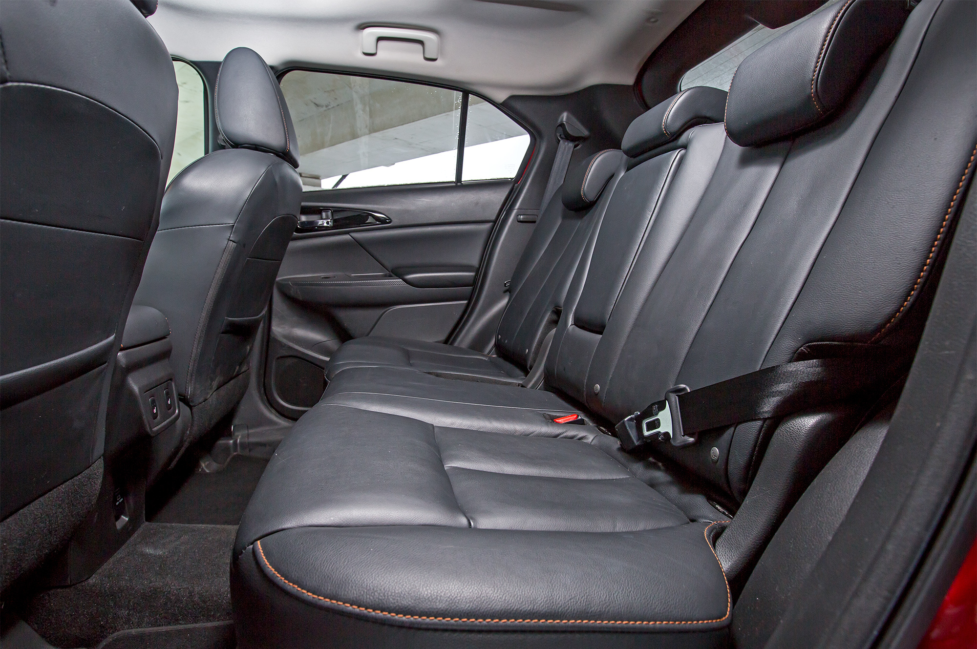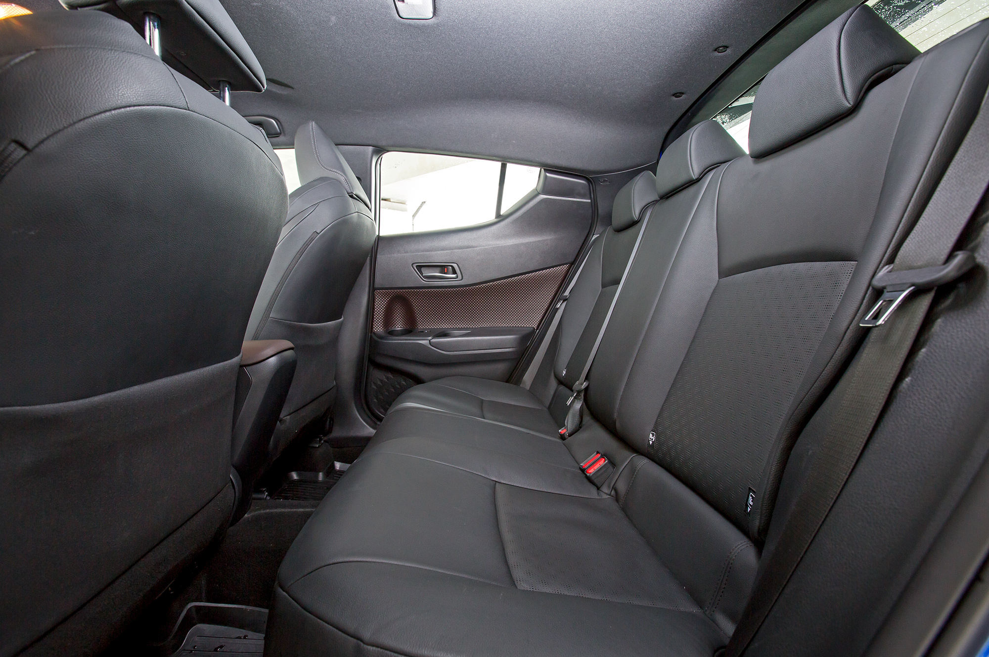 Качество интерьера озадачивает. Корпус дисплея скрипит, если положить на него руку, чтобы попасть в сенсорные «кнопки». Потолок отделан дешёвым картоноподобным материалом, мягкие панели в дефиците… «Ящичков» для мелочей мало. Зато приятно удивляют задние места. Высокий пассажир за высоким водителем размещается вполне нормально, в мягком касании коленями переднего кресла. Жить можно, хотя и в аскезе: сзади у C-HR нет ни дефлекторов, ни даже центрального подлокотника. Окошки небольшие, но расположены удачно ― видно почти всё. Однако втроём тут делать нечего. Багажник лишь чуть больше эклипсовского и отделан совсем без изысков.