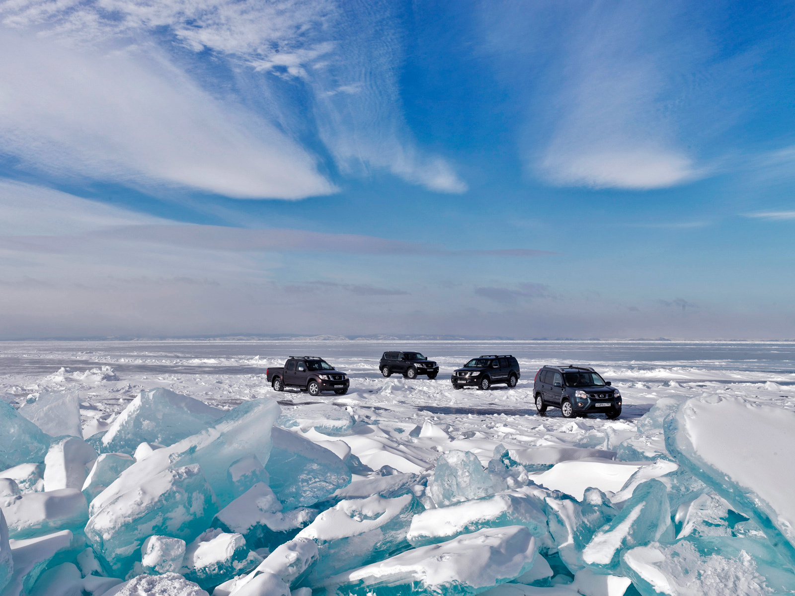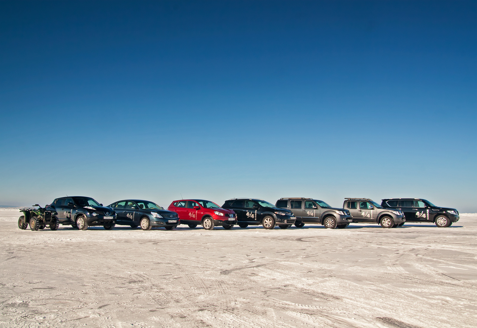 Стройная шеренга Ниссанов поблёскивает на солнышке. В моём распоряжении почти вся гамма полноприводников японской марки. От монументального Nissan Patrol до озорного мини-кроссовера Juke. Чуть поодаль стоит Teana. Бизнес-седан тоже с приводом на все колёса. Не хватает в этой компании разве что спорткара GT-R. Но мощному купе здесь не место, ведь «зажигать» нам придётся не по гоночному треку, а по льду озера Байкал.