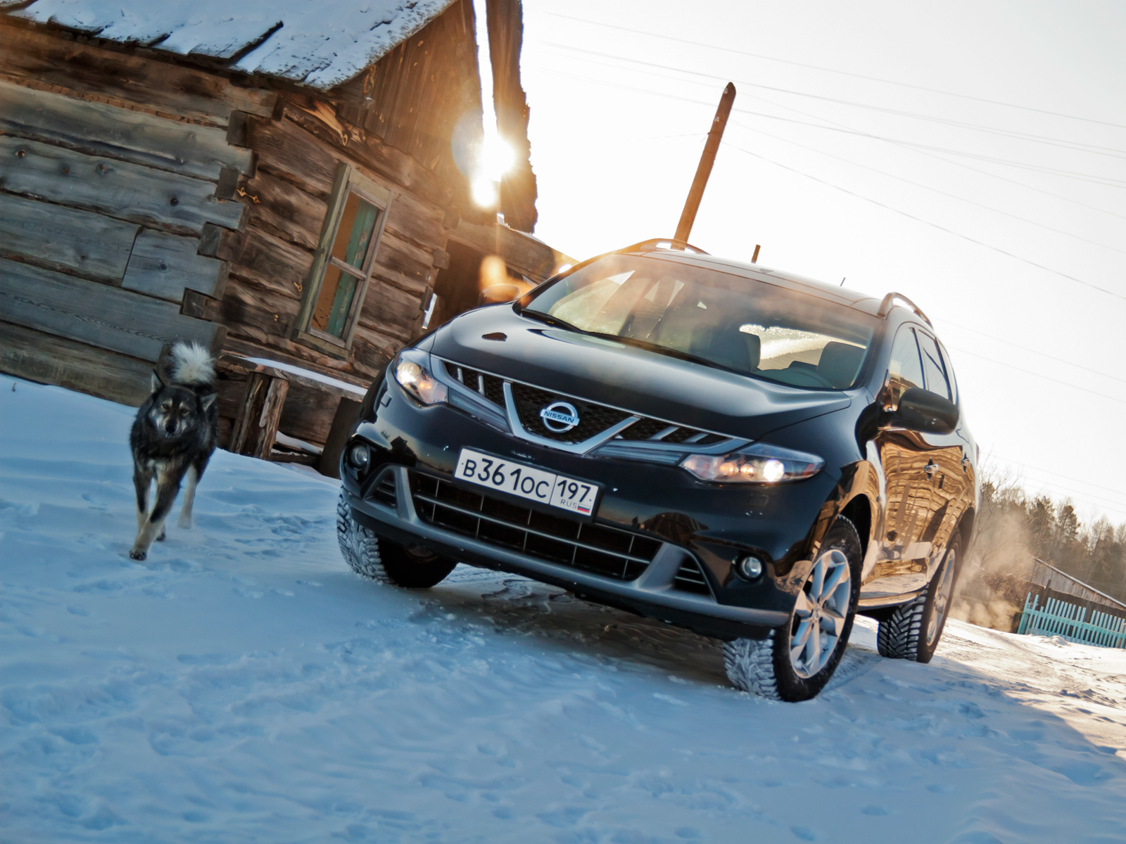 Теперь Murano. Я подозревал, что после пикаповской встряски ощущения от езды на нём будут несколько отличаться от реальных. Но автомобиль, названный в честь острова в венецианском заливе, известного своими стеклодувами, оказался и вправду неплох. После ночной стоянки на тридцатиградусном морозе подвеска кроссовера озвучивала неровности щербатой грунтовки лишь первые пару минут пути. Затем, прогревшись, просто перестала их замечать. Впереди небольшой трамплин — отрыв всех колёс, приятное чувство невесомости и по-кошачьи мягкое приземление.