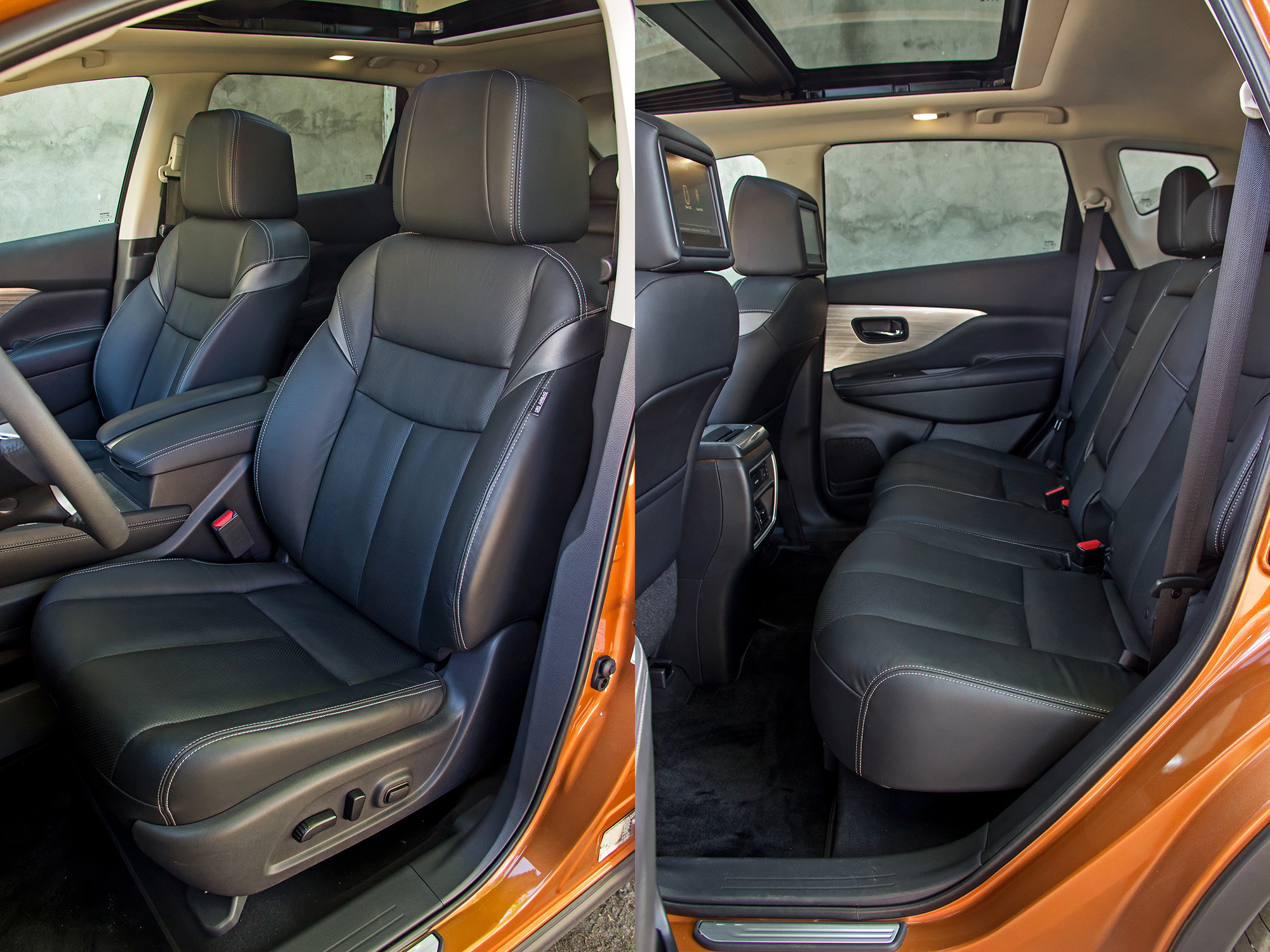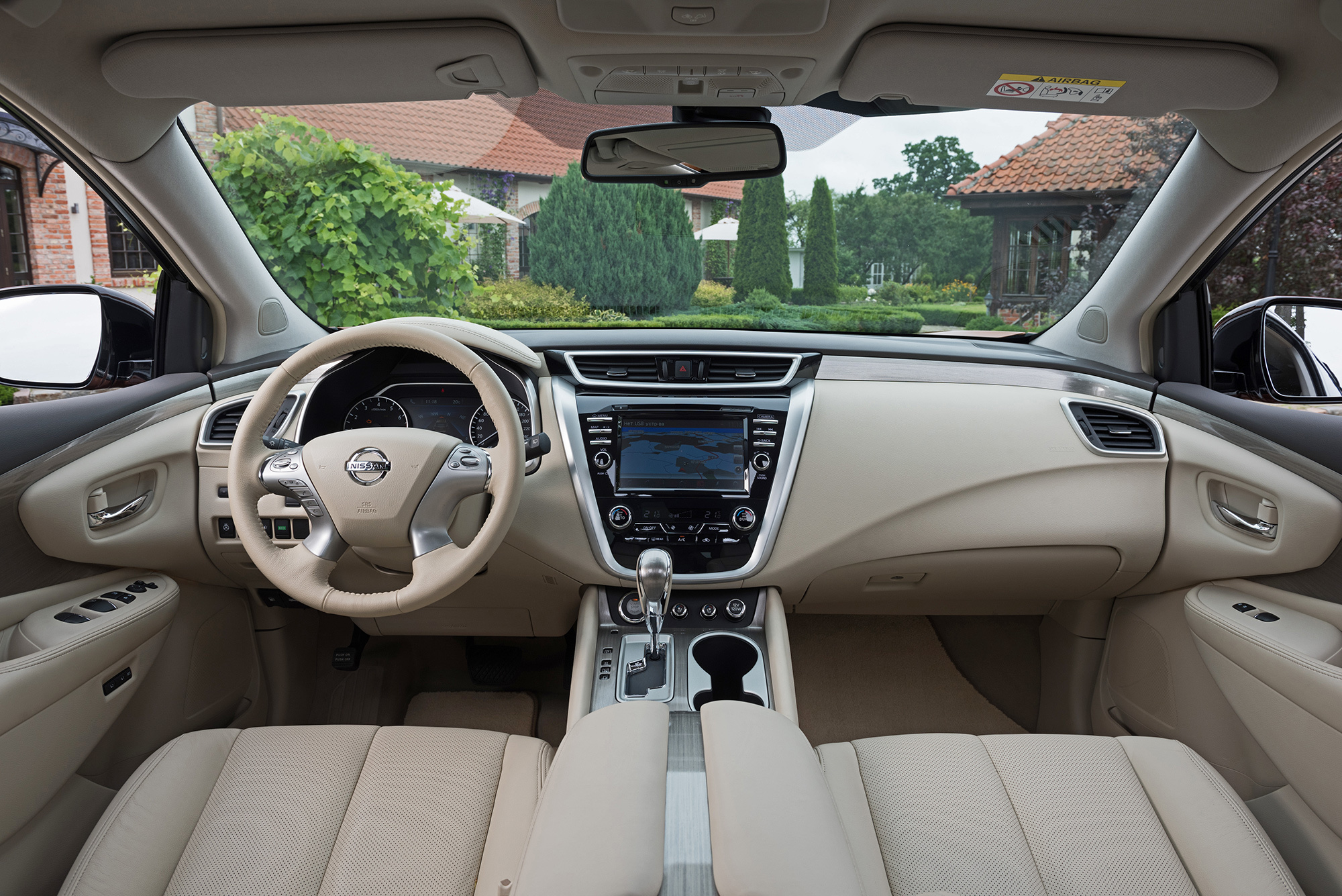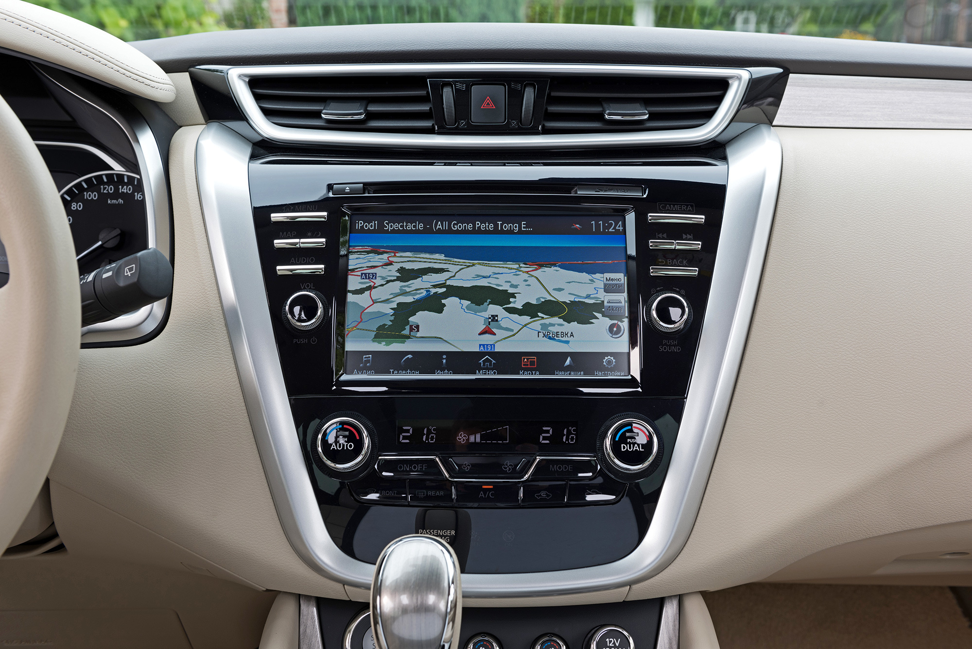 Интерьер с экстерьером не перекликается от слова «совсем». Если снаружи Murano футуристичен, то внутри время остановилось в недалёком прошлом. Общее впечатление, однако, приятнее, чем от прежней модели: архитектура элегантнее, материалы добротнее, посадка удобнее. Есть, конечно, огрехи сборки и ряд эргономических просчётов — например, кнопками на руле пользоваться неудобно, а центральный тоннель настолько широк, что рослые водители упираются в него коленом.
