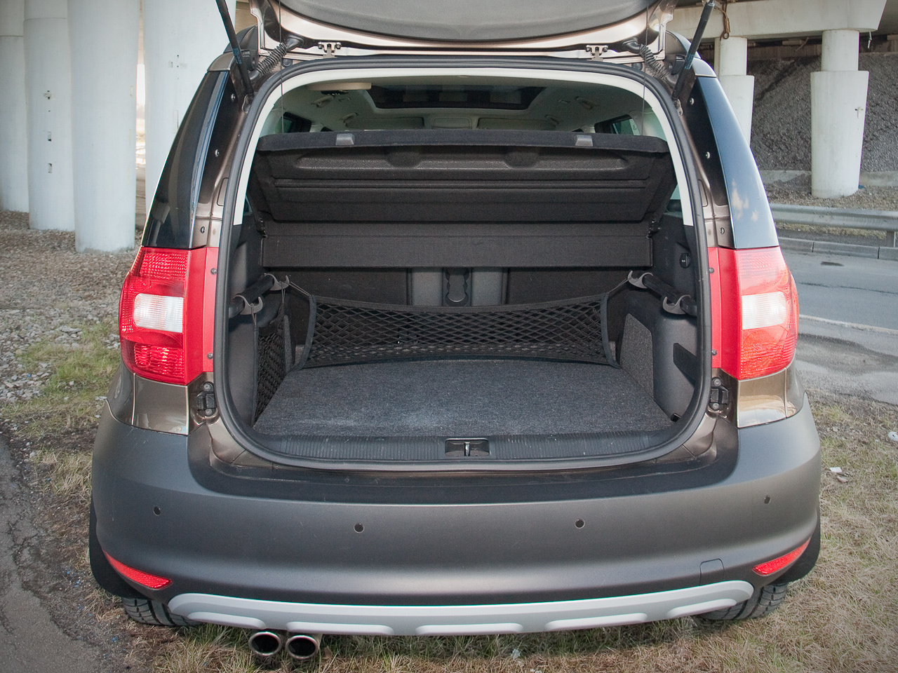 Внутри всё знакомо по другим моделям фирмы Skoda. Комбинация приборов — с характерной радиальной оцифровкой. Показания низко расположенного блока климат-контроля нормально воспринимаются лишь в темноте. Опциональная мультимедийная система за 12 тысяч рублей с упорством верблюда отказывается учить русский язык. Но интерьер напрягает разве что мелочами. Пластик местами «дубовый», потолочные ручки без микролифтов, а противосолнечные козырьки без подсветки. Мы-то знаем, что таким образом фольксвагеновские маркетологи проводят чехо-немецкую границу между Yeti и Тигуаном. Однако всё это не вяжется с заоблачной ценой тестового автомобиля — 1,3 миллиона рублей.