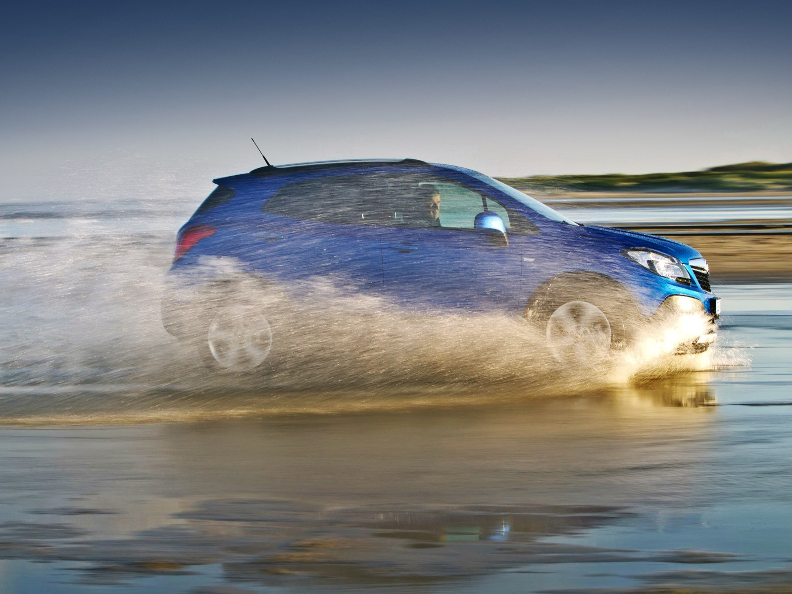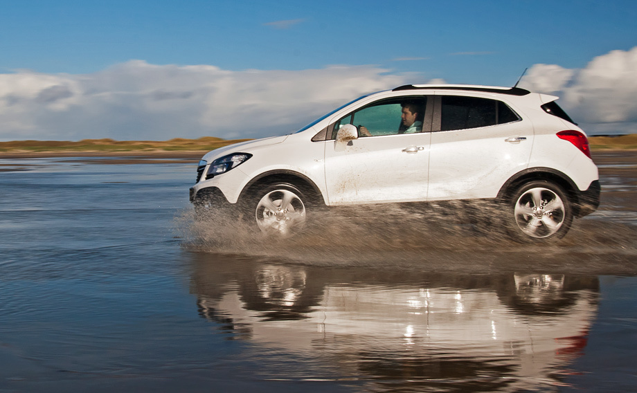 Проверить Мокку в отсутствие асфальта немцы предложили на побережье Северного моря — на гигантской парковке у пляжа, рассчитанной на 6000 (!) машино-мест. Покрытый лужами мокрый песок, истинно паркетное бездорожье, Mokka изъездил без проблем: не дал усомниться в себе и своих системах безопасности, но и похулиганить не дал тоже. Ни на какие провокации не поддался.