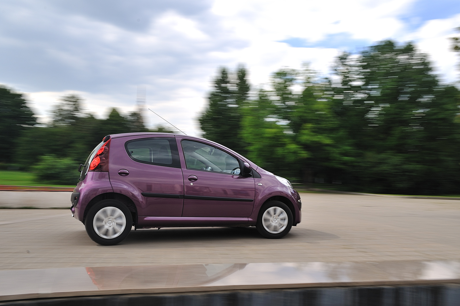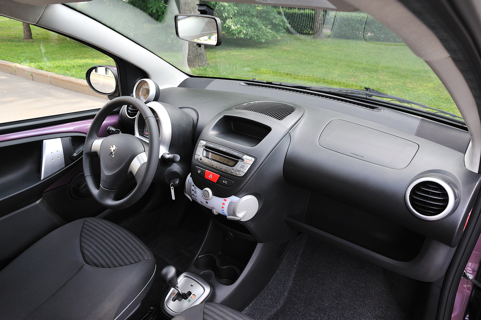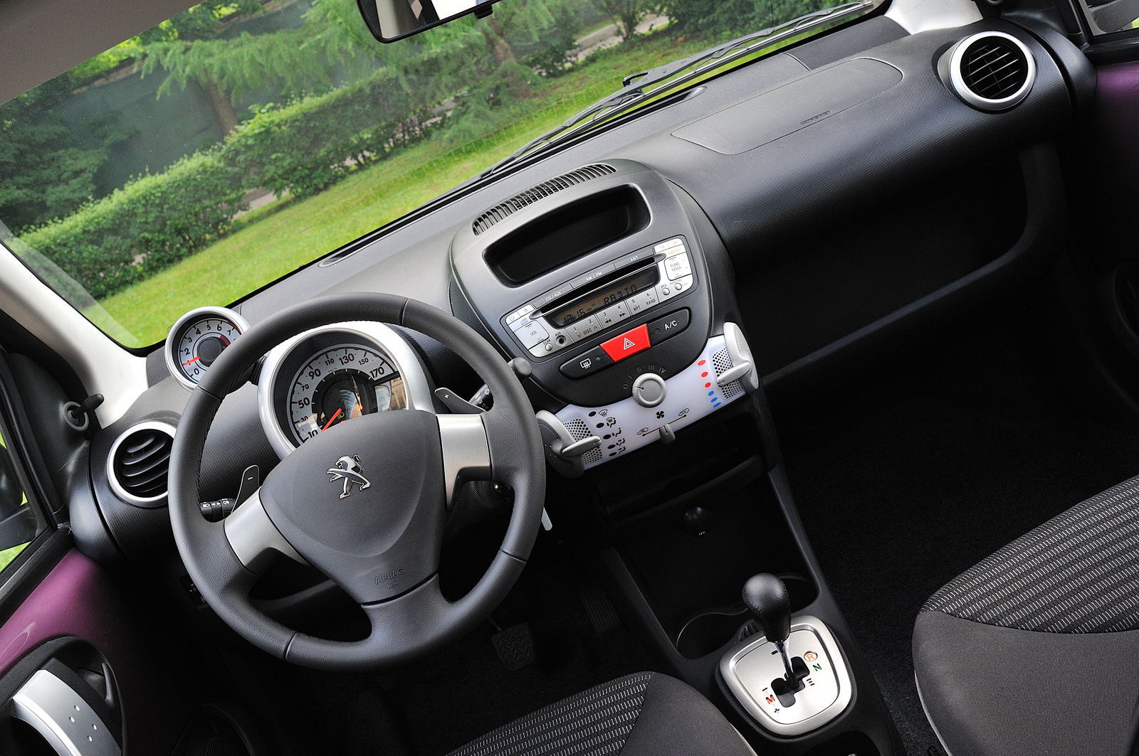 За руль фиолетового Peugeot 107 я попал сразу же после теста седана Subaru Impreza WRX STI и машинально постоянно их сравнивал. Минус — два ведущих колеса, втрое меньше мощность, плюс — широченная улыбка на лице. Невозможно? Отнюдь! В меру тяжёлый руль, бодрое завывание литрового моторчика, «робот», остающийся в пределах выбранной передачи, как двигатель ни крути. Плевать, что разгон до заветной сотни здесь занимает 13 секунд. Если уж разогнался, вышивать по серо-чёрному потоку крестиком из фиолетового мулине — одно удовольствие. Чего стоят одни удивлённые лица солидных дядь в больших и мощных машинах, когда их обгоняет такой вот клоп.