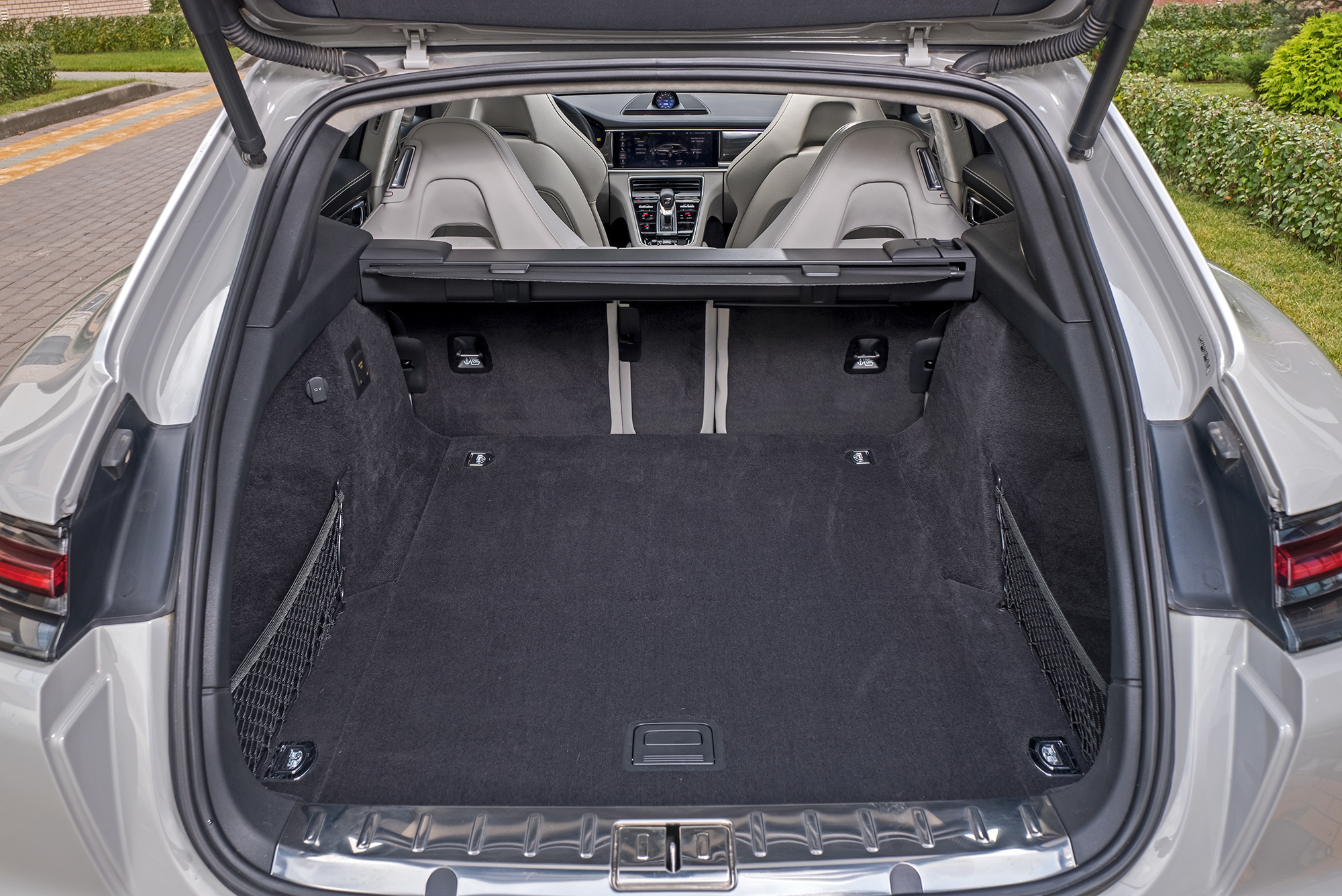 Задняя часть от самой средней стойки слеплена заново. Мнения расходятся, что это дало Панамере. Я считаю, она от трансформации выиграла. Пропорции универсала видятся мне более классическими, чем у дельфинообразного хэтчбека. Так и гармоничнее, и динамичнее. А Петровский, например, который с нетерпением ждал этой машины с самой премьеры концепта, разочарован: ему «сарай» кажется визуально потяжелевшим.