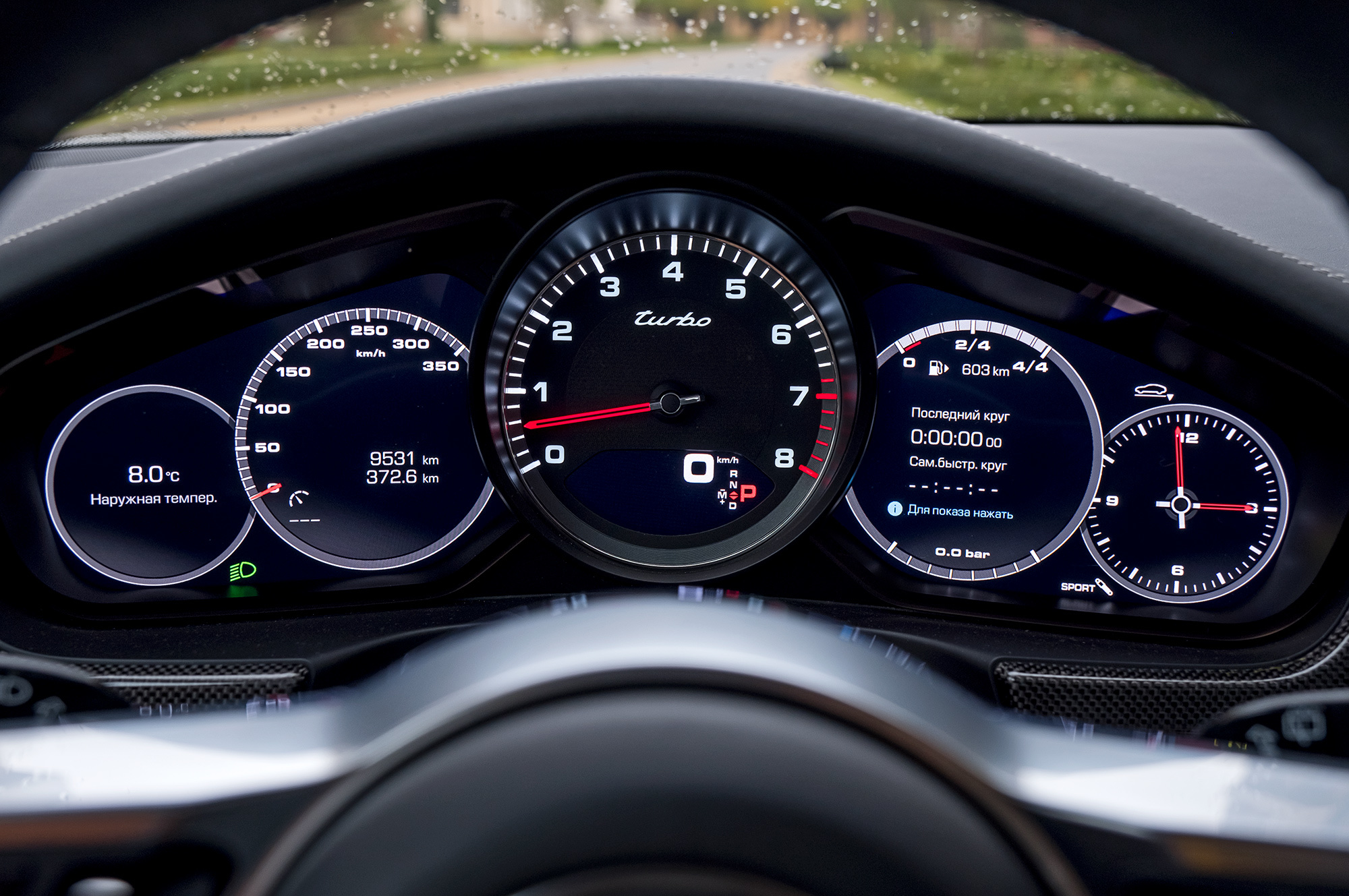 Мотору, способному выдать 550 сил, и готовому их реализовать «роботу» PDK тяжеловато в городском трафике. Они вроде стараются реагировать аккуратно и адекватно на небольшие перемещения напольного акселератора, но чувствуется, что в недрах Porsche недовольно пинается обузданный дикий зверь. Никакой «туристической» сглаженности по сравнению с обычной Панамерой Turbo не чувствуется.