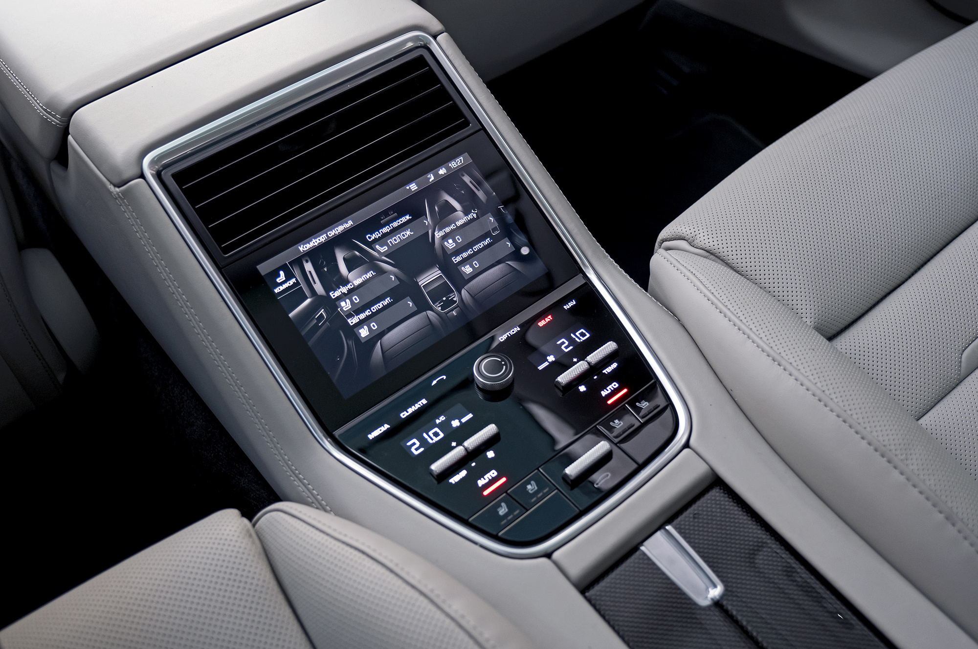Любопытная деталь: у задних кресел три ячейки памяти для положения, а у передних ― по две. Впрочем, место за рулём Панамеры я бы не стал делить ни с кем. Единожды преодолев порог толщиной с фонарный столб и провалившись в очень низкое небольшое креслице, подогнав его по фигуре, балдеешь от сочетания воздушности и массивности немецкого интерьера.