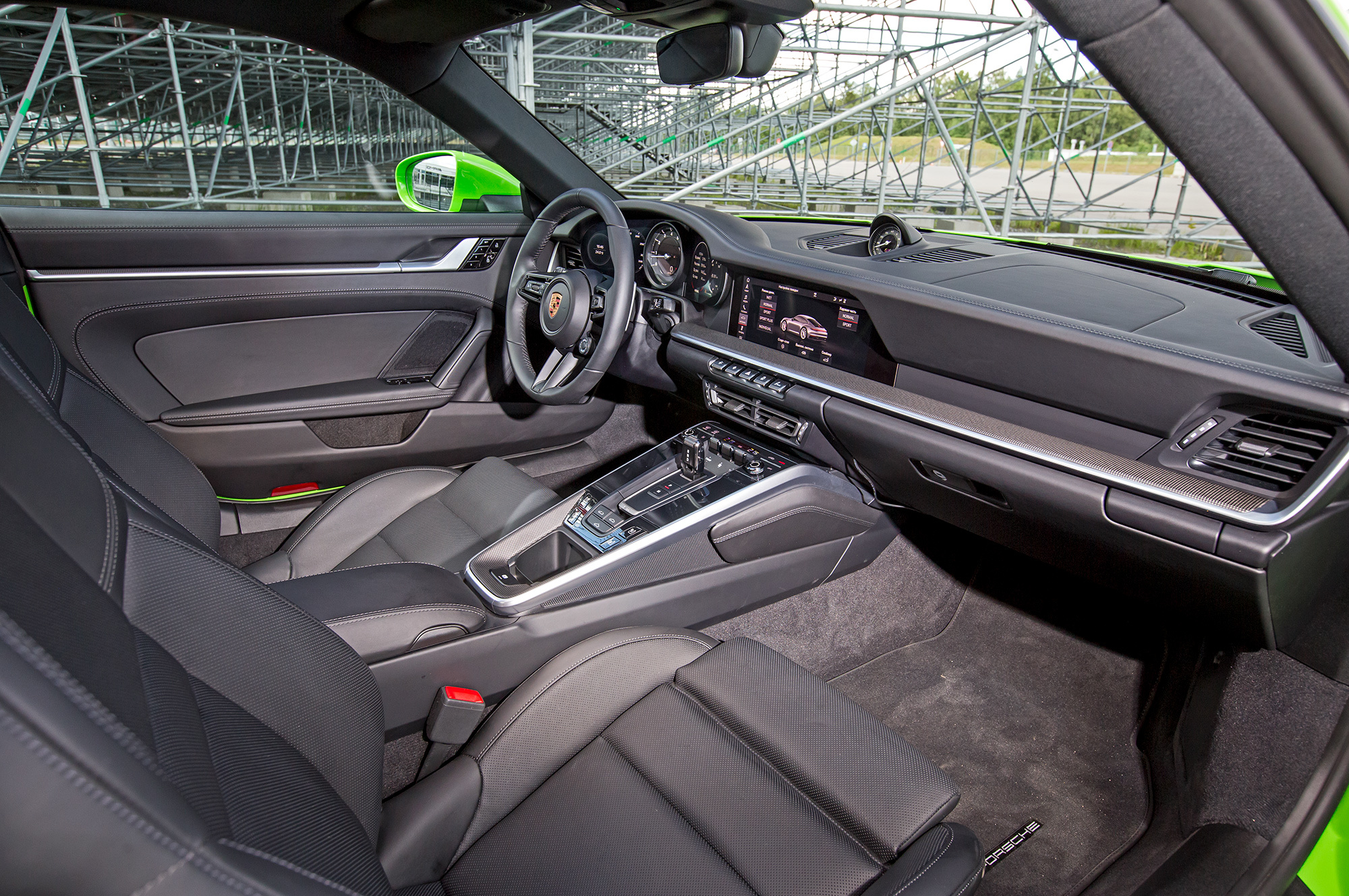 Сегодня главный источник удовольствия в городе — сам факт пребывания за рулём 911-го. Это не нормально. Рефлексия проявляется там, где машина не додаёт. Не подумайте, мне не надо хардкора. Мягкость откликов на газ отлично подходит для ежедневного автомобиля. Пусть в нормальном режиме чуть подтормаживает кикдаун — тяги всё равно с лихвой. А не хватает мелкого взаимодействия. Интерактив ограничен даже на уровне дверных замков. Покидая салон, ты не открываешь дверь, а лишь показываешь машине, что хочешь выйти при помощи электронной рукоятки.