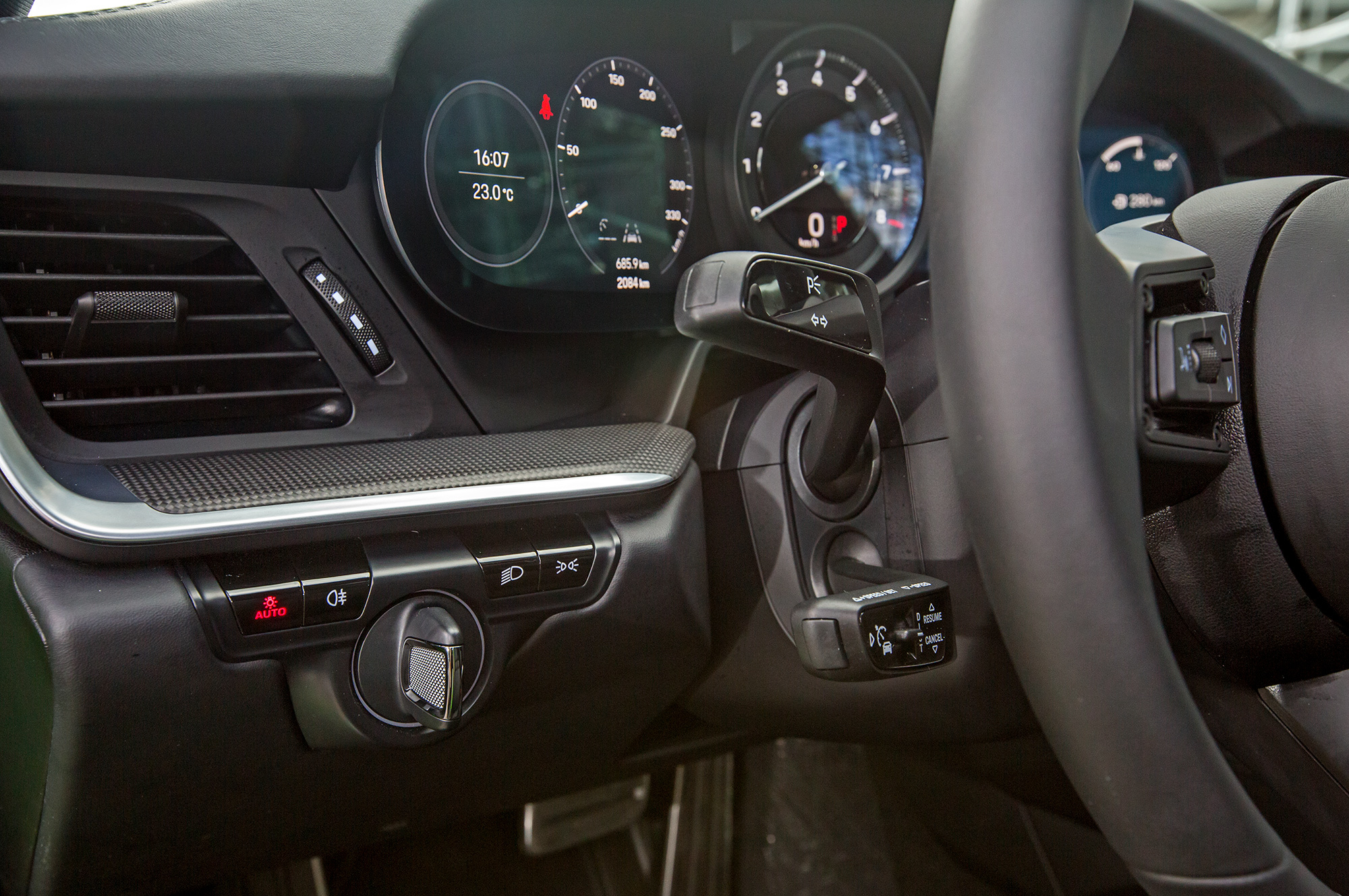 Помню, как проводил недели напролёт с 911-ми, не включая мультимедийную систему. А сейчас в салоне постоянно что-то светится. Причём ночью хорошо видна разница между дисплеями, изображающими чёрный цвет, и по-настоящему тёмным тахометром. Такие мелочи вредят воспринимаемому качеству не меньше, чем простенькая фурнитура. Ответьте мне: разве хорошо, когда после двух дней с Porsche, я тепло вспоминаю прежде всего смелый адаптивный круиз-контроль, который не боится ползучего трафика?