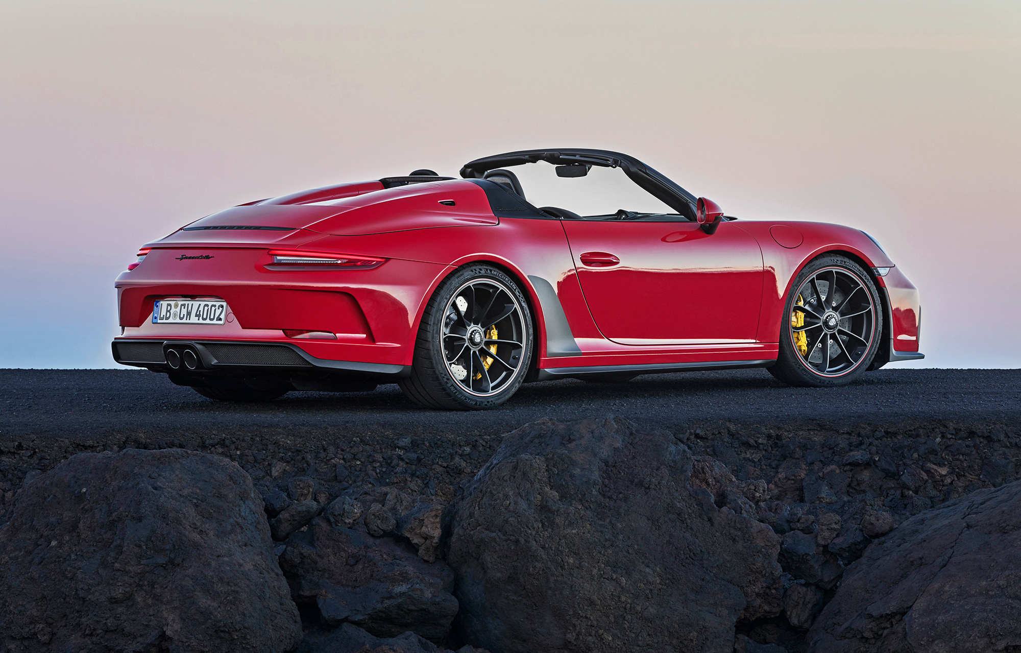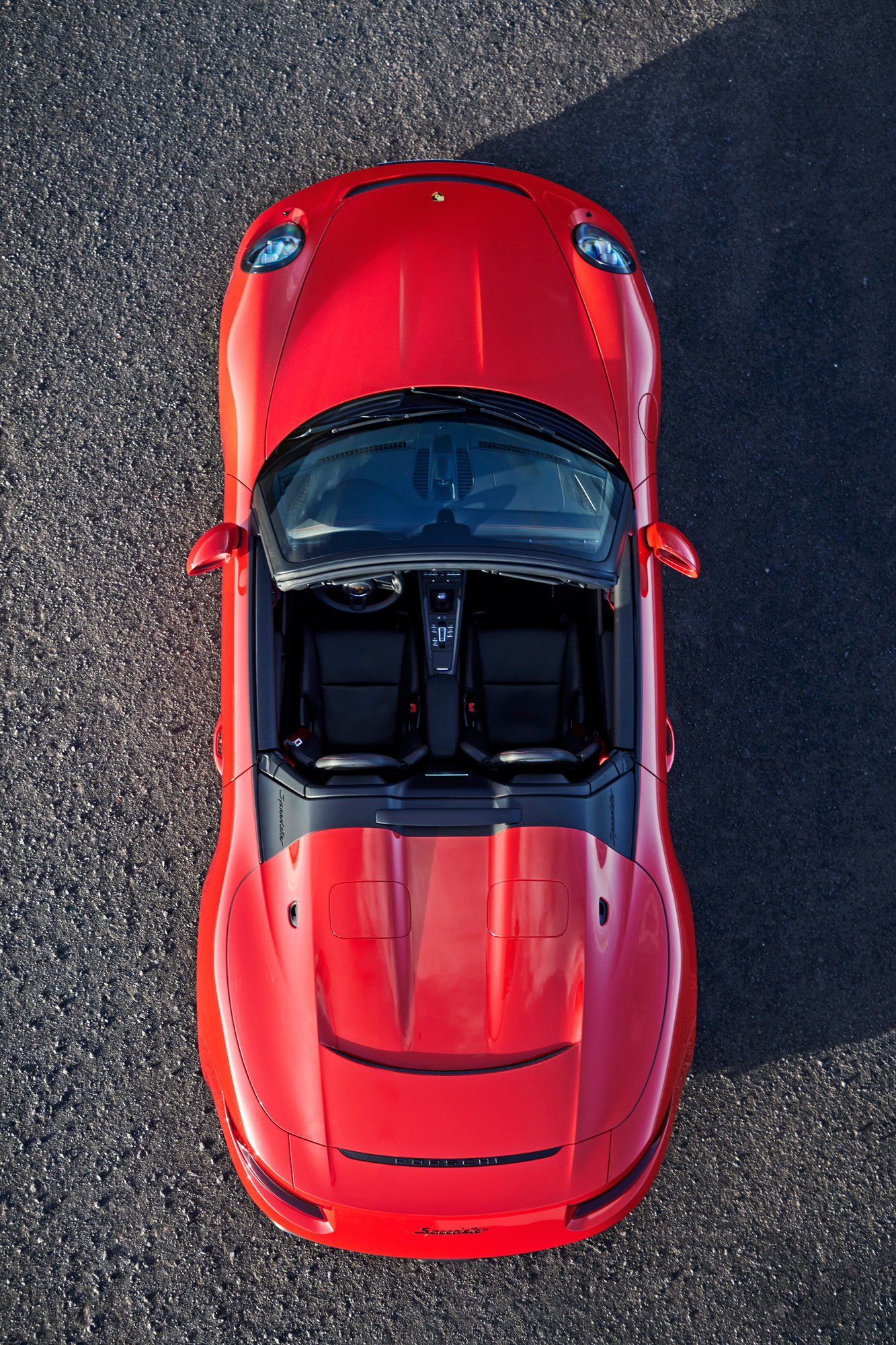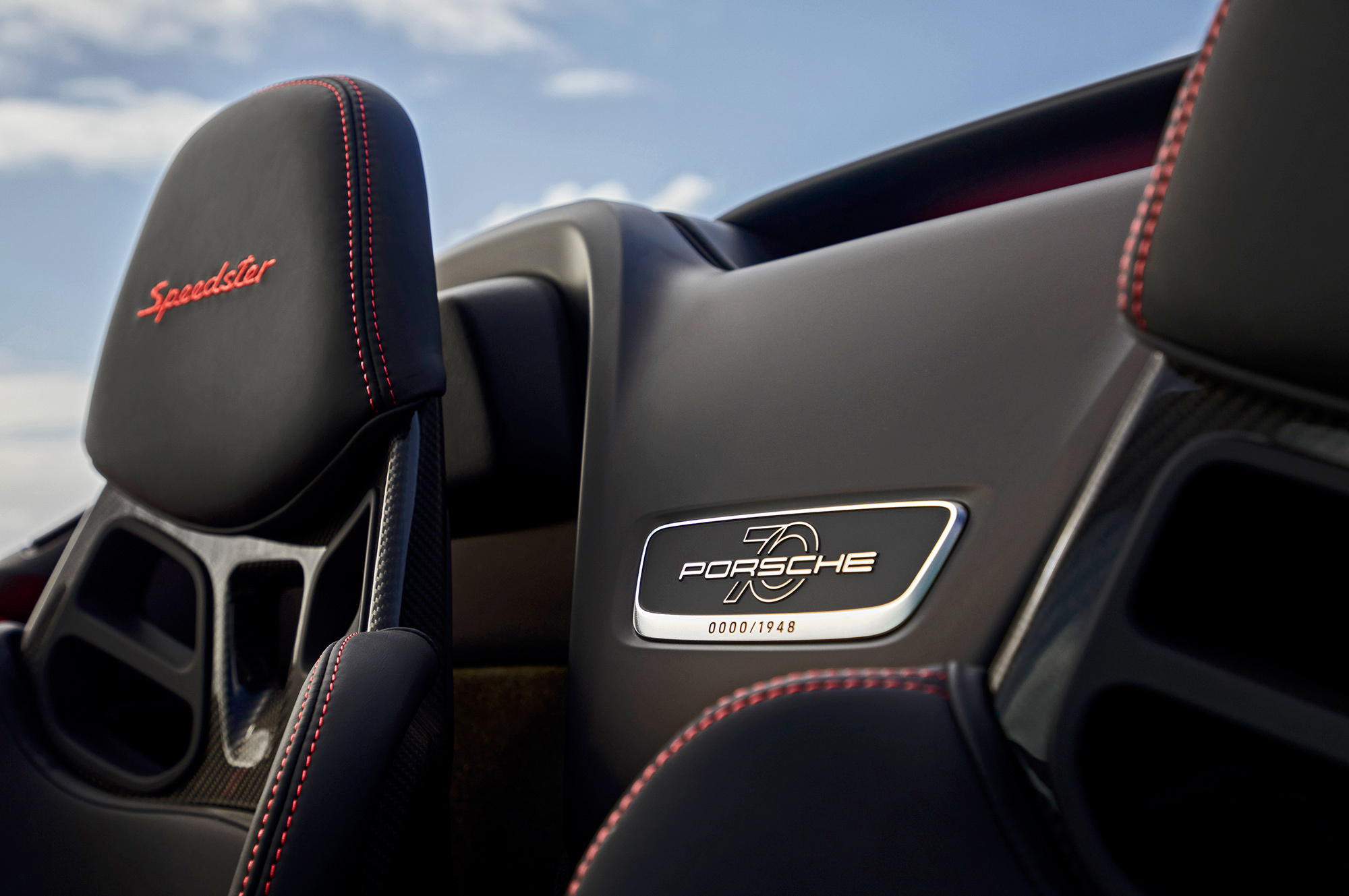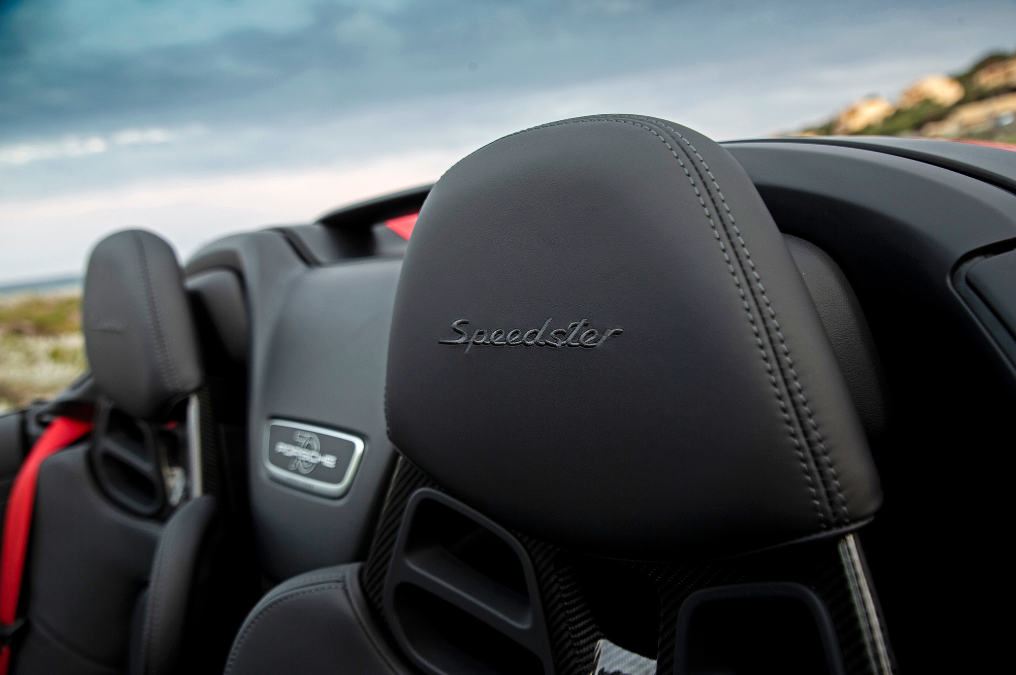 Под характерным горбатым обтекателем спрятан тент без электропривода. Следует традиции и заниженная на 60 мм кромка лобового стекла. Но оснащён этот Speedster по полной программе: климат-контролем, мультимедийной системой, адаптивными амортизаторами, углеродокерамическими тормозами. Двигатель от Карреры GTS выдавал 408 л.с., работая в паре только с «роботом» PDK. То был первый Speedster с рублёвым ценником: он стоил 10 974 000. Тогда за кабриолет Turbo S просили 9 520 000 рублей, а Carrera S предлагалась вдвое дешевле Спидстера.