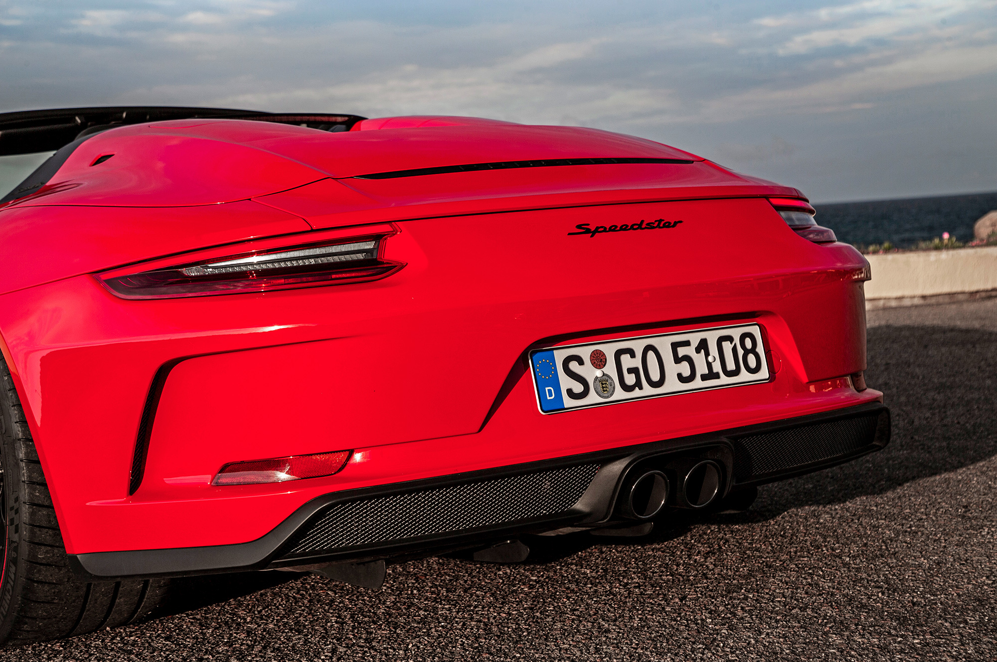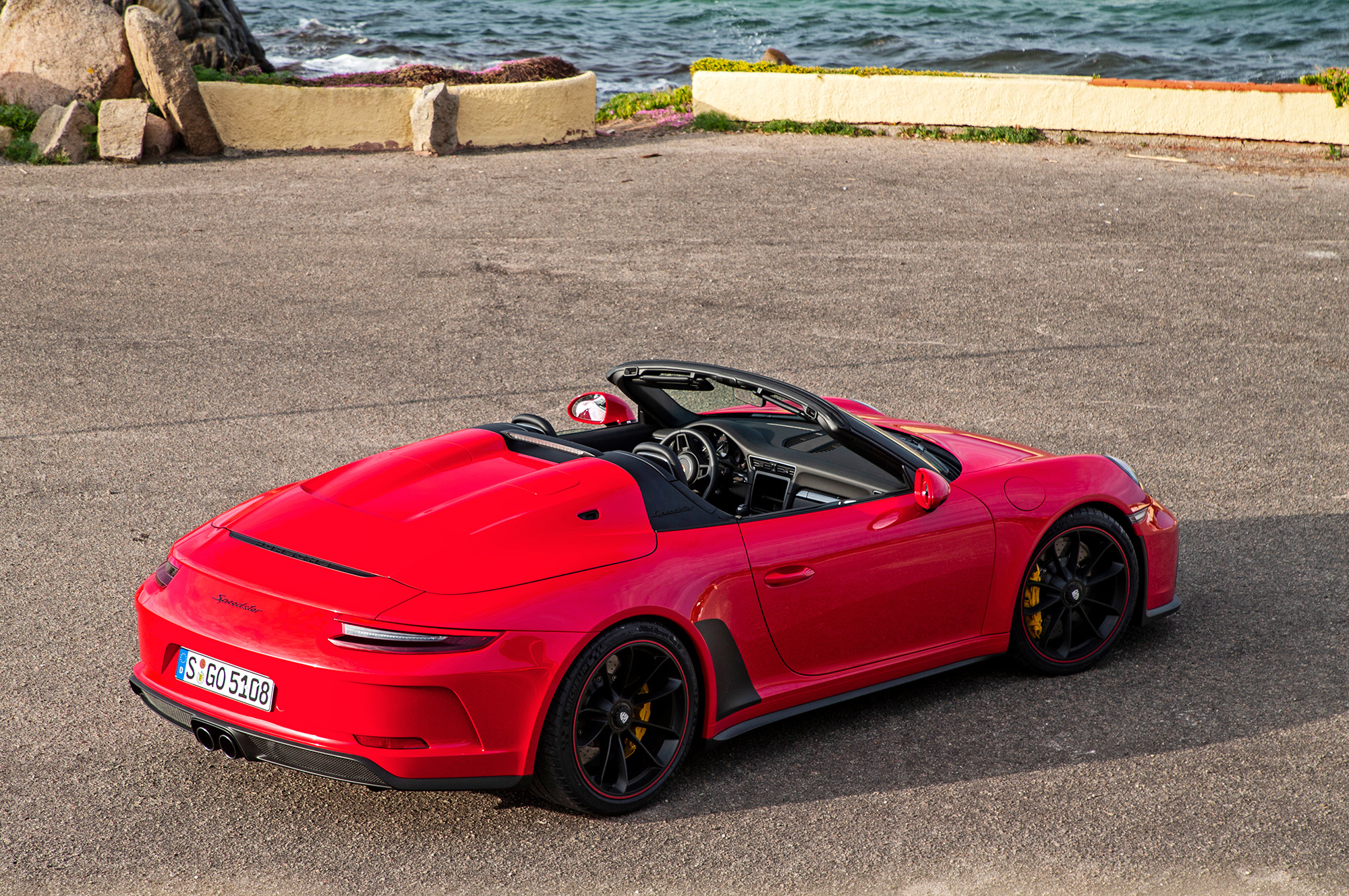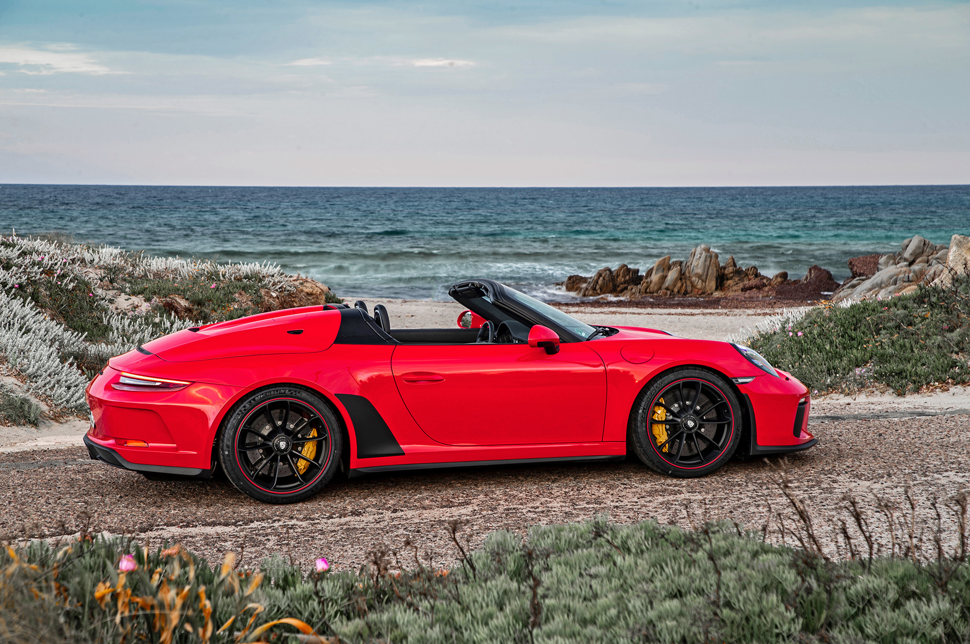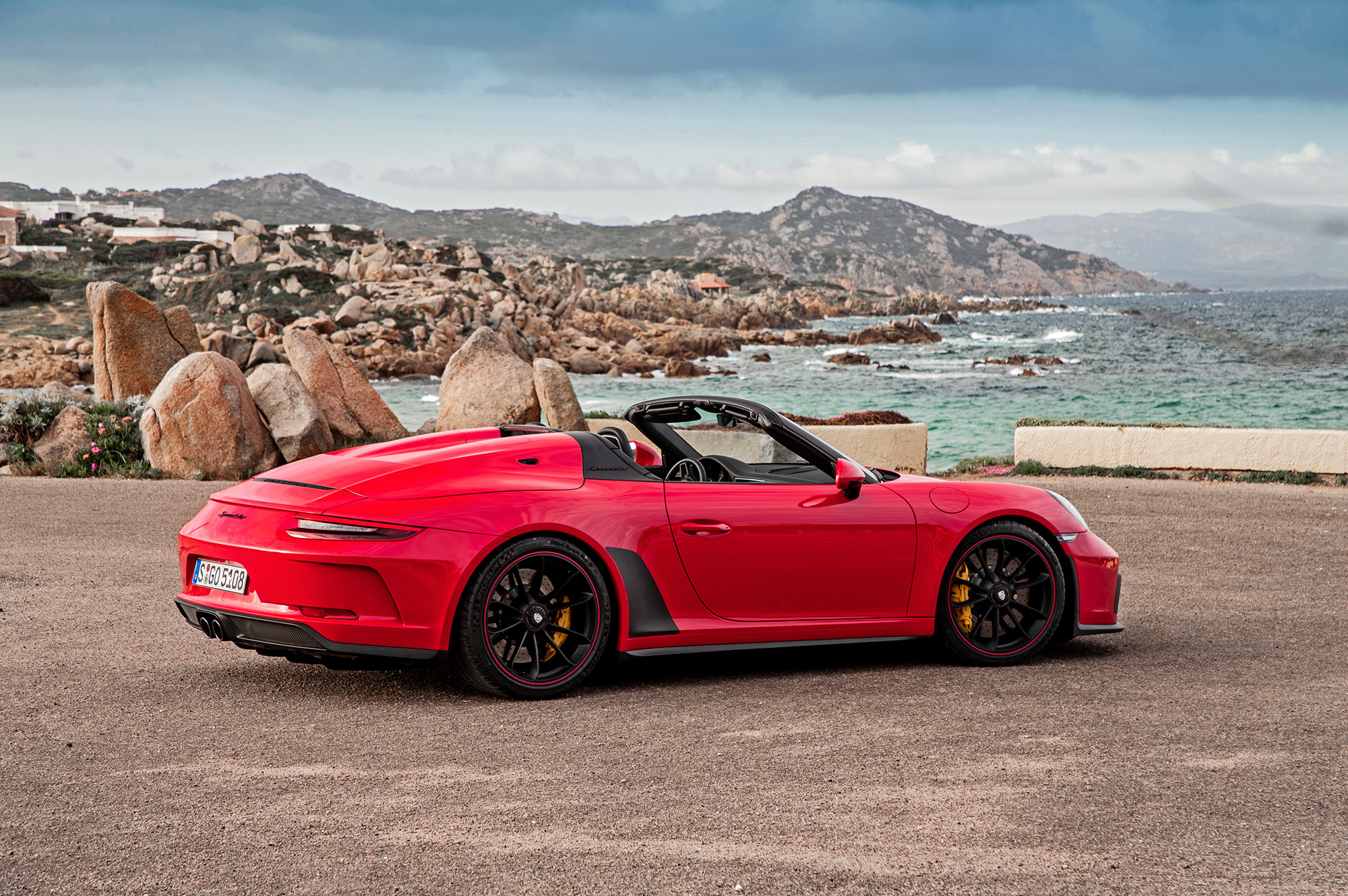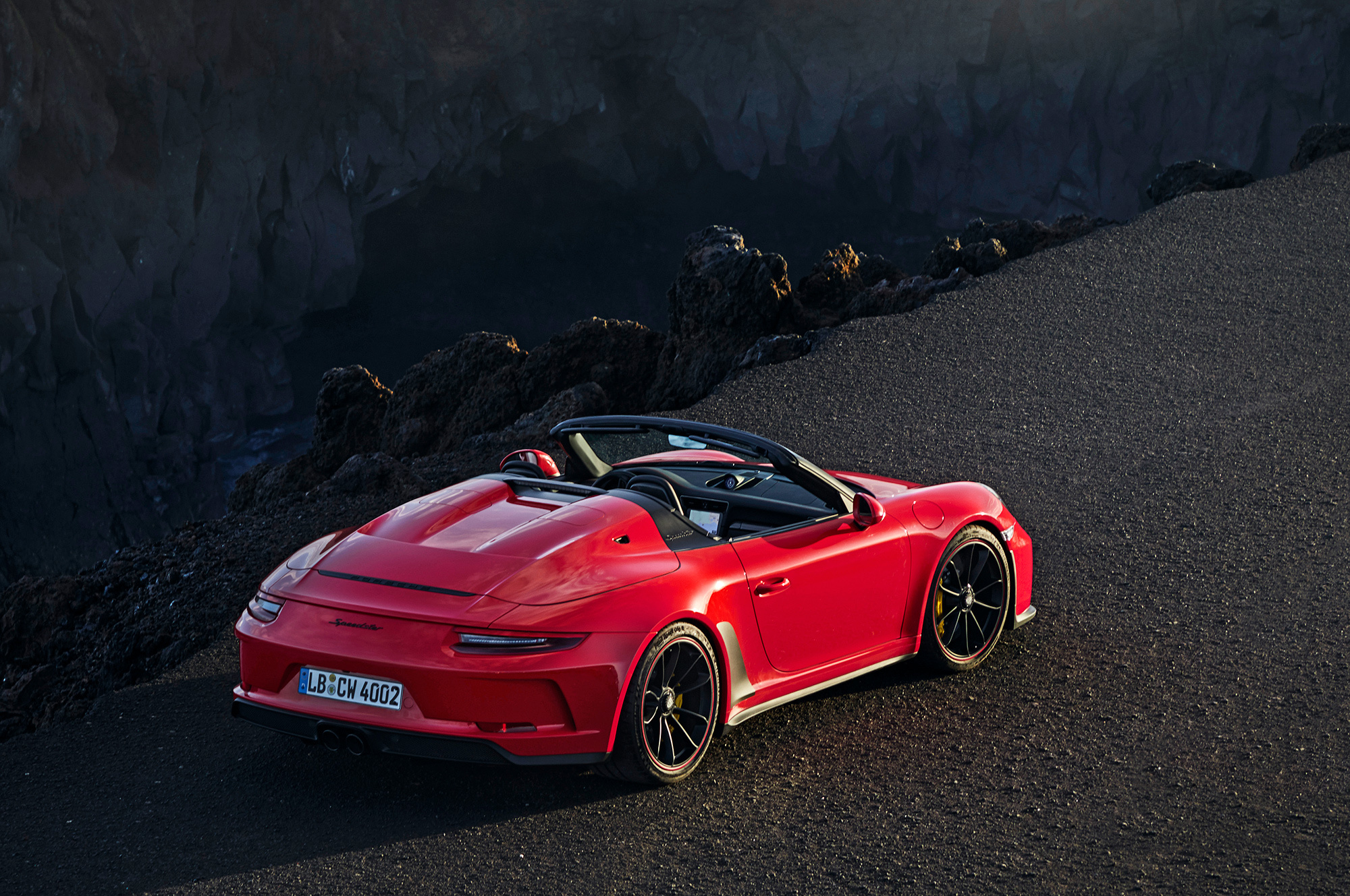 Под характерным горбатым обтекателем спрятан тент без электропривода. Следует традиции и заниженная на 60 мм кромка лобового стекла. Но оснащён этот Speedster по полной программе: климат-контролем, мультимедийной системой, адаптивными амортизаторами, углеродокерамическими тормозами. Двигатель от Карреры GTS выдавал 408 л.с., работая в паре только с «роботом» PDK. То был первый Speedster с рублёвым ценником: он стоил 10 974 000. Тогда за кабриолет Turbo S просили 9 520 000 рублей, а Carrera S предлагалась вдвое дешевле Спидстера.