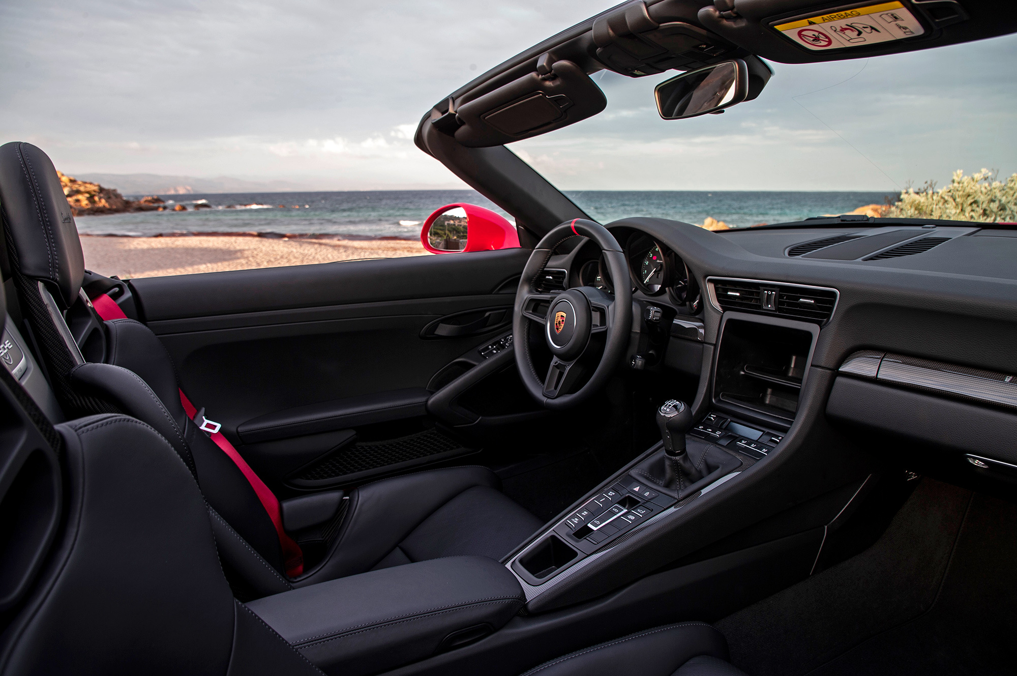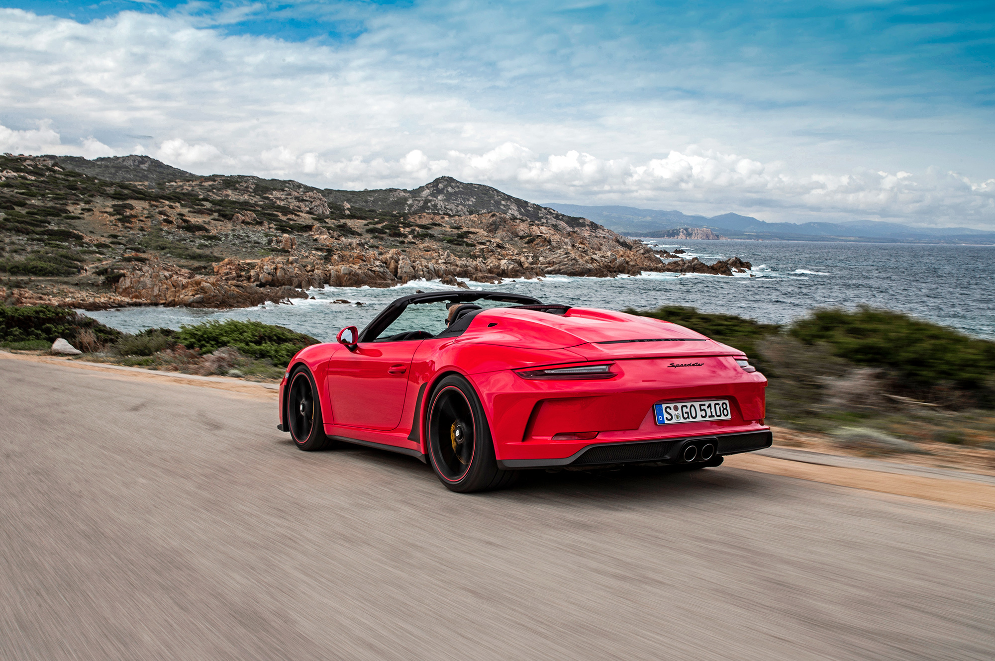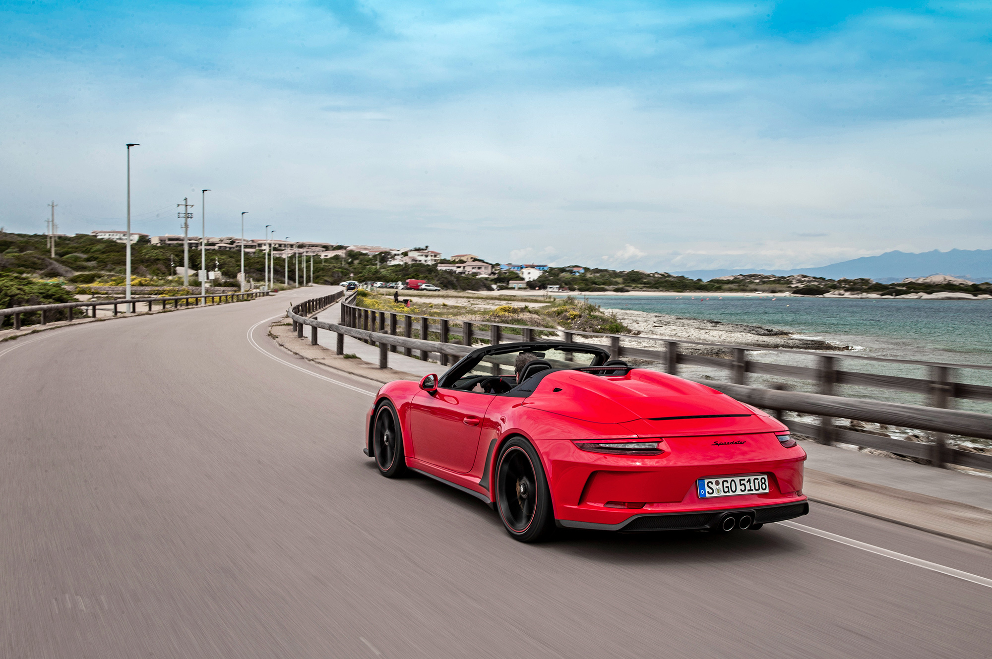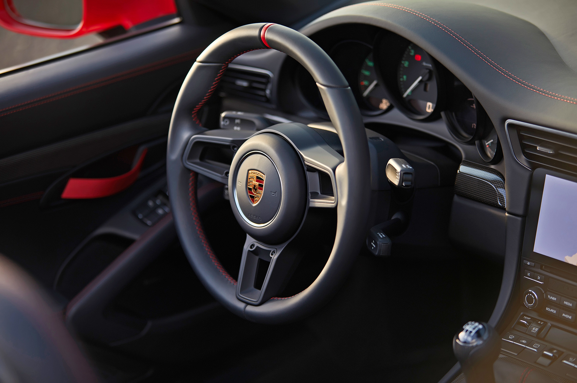 Под характерным горбатым обтекателем спрятан тент без электропривода. Следует традиции и заниженная на 60 мм кромка лобового стекла. Но оснащён этот Speedster по полной программе: климат-контролем, мультимедийной системой, адаптивными амортизаторами, углеродокерамическими тормозами. Двигатель от Карреры GTS выдавал 408 л.с., работая в паре только с «роботом» PDK. То был первый Speedster с рублёвым ценником: он стоил 10 974 000. Тогда за кабриолет Turbo S просили 9 520 000 рублей, а Carrera S предлагалась вдвое дешевле Спидстера.