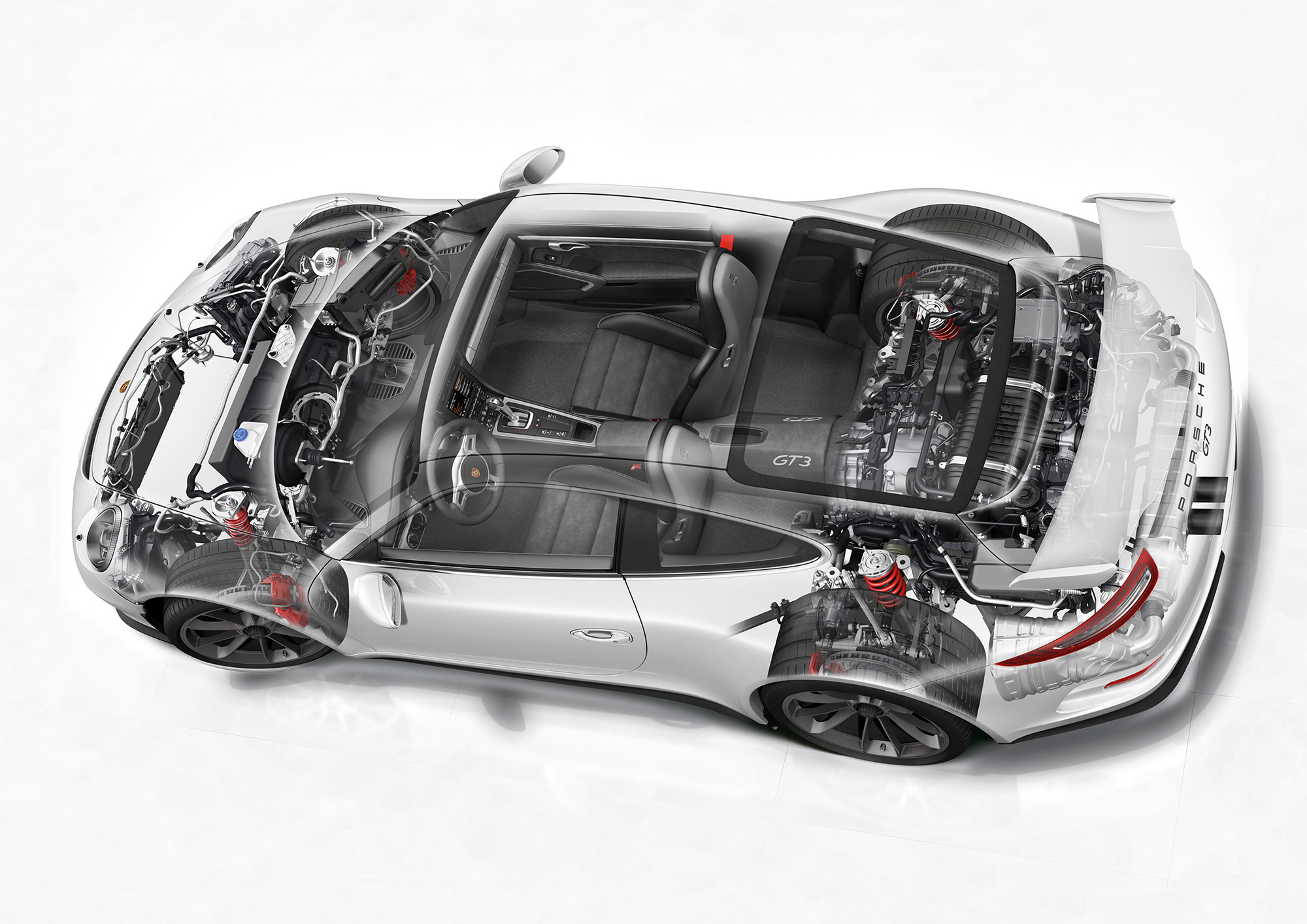 В 2013 году место легендарного мотора Мецгера (по имени моториста Ханса Мецгера) на GT3 занял алюминиевый омологационный оппозитник 3.8. Он был почти на 25 кг легче, оснащался непосредственным впрыском, фазовращателями на впуске и выпуске, а также системой смазки с сухим картером. Промежуточная версия 4.0 с увеличенным на четыре миллиметра ходом кованых поршней и рокерами в приводе клапанов дебютировала на GT3 RS в 2015-м.