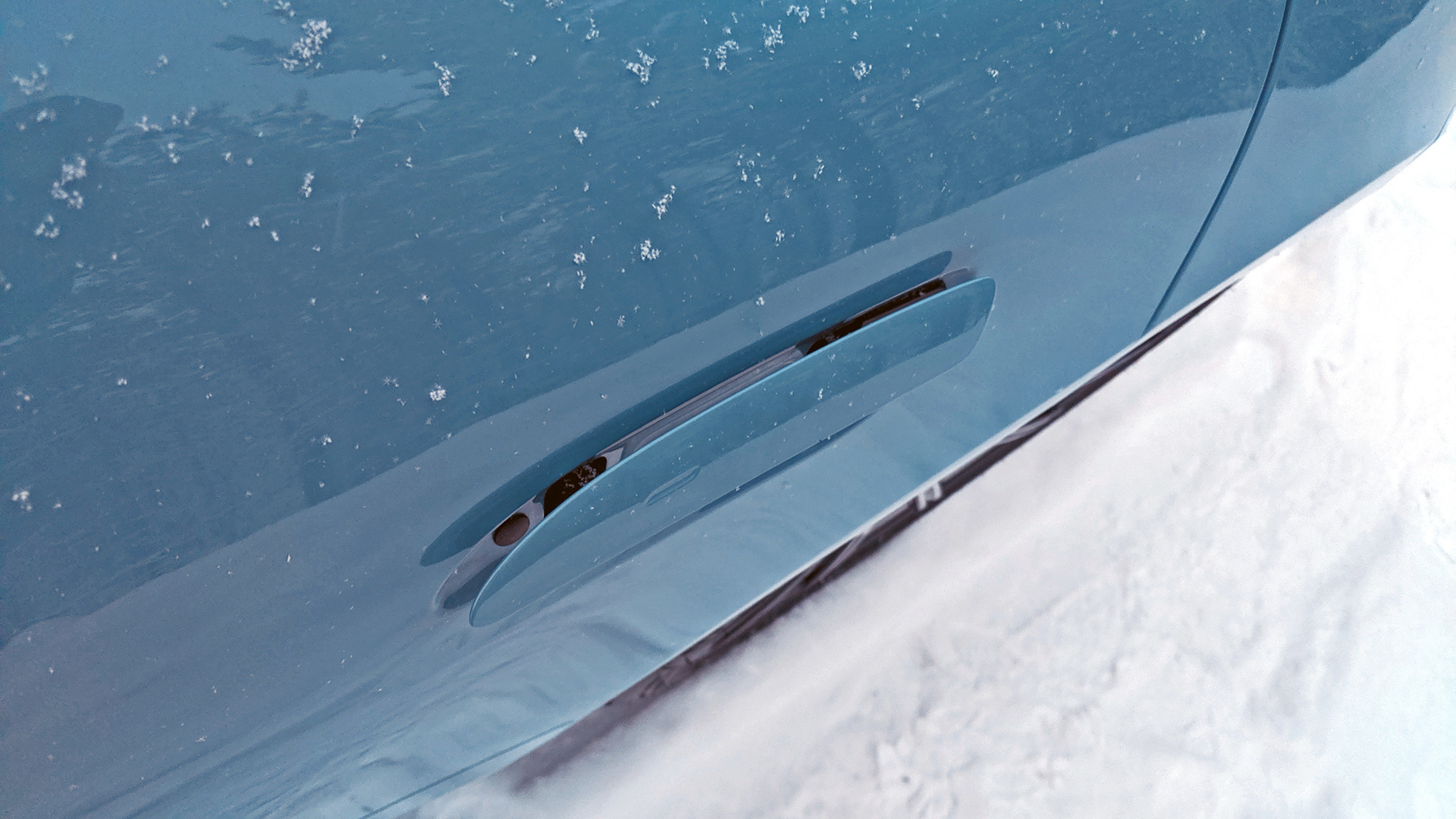 При этом в салоне без всяких скидок тепло. Эффективны все обогревы и подогревы, матричный светодиодный свет шикарно освещает заполярные зимники. Омыватель камеры заднего вида способен эффективно сбить с неё снег. Не пугают даже выдвижные дверные ручки: их нижний край выступает над дверью, чтобы легко было поддеть в случае замерзания. Только дворники в отсутствии тёплого воздуха от моторного отсека обмерзают сильнее привычного ― а подогрева лобового стекла не предлагается. Переход в экономичный режим Range заметен сразу: свет слабнет, а отопитель начинает работать «волнами», экономя килокалории.
