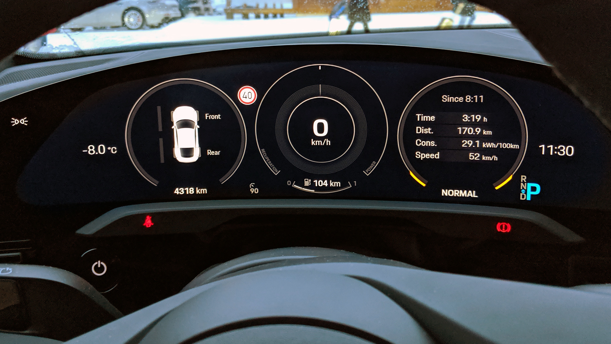 Инженеры уверяют, что Taycan способен ездить и при 50-градусном морозе, но если на термометре ниже минус пятнадцати, настоятельно рекомендуется оставлять его на стоянку подключённым к сети. Чем холоднее ― тем больше энергии тратится на разогрев батареи, и при низких температурах после «пуска» пройдёт некоторое время, прежде чем аккумулятор согреется до той степени, чтобы питать ходовые двигатели. Говорят, что достаточно нескольких минут. Однако возможности проверить всё же не дают: поутру выдают прогретый Taycan, снятый с зарядки час назад. «По соображениям логистики».