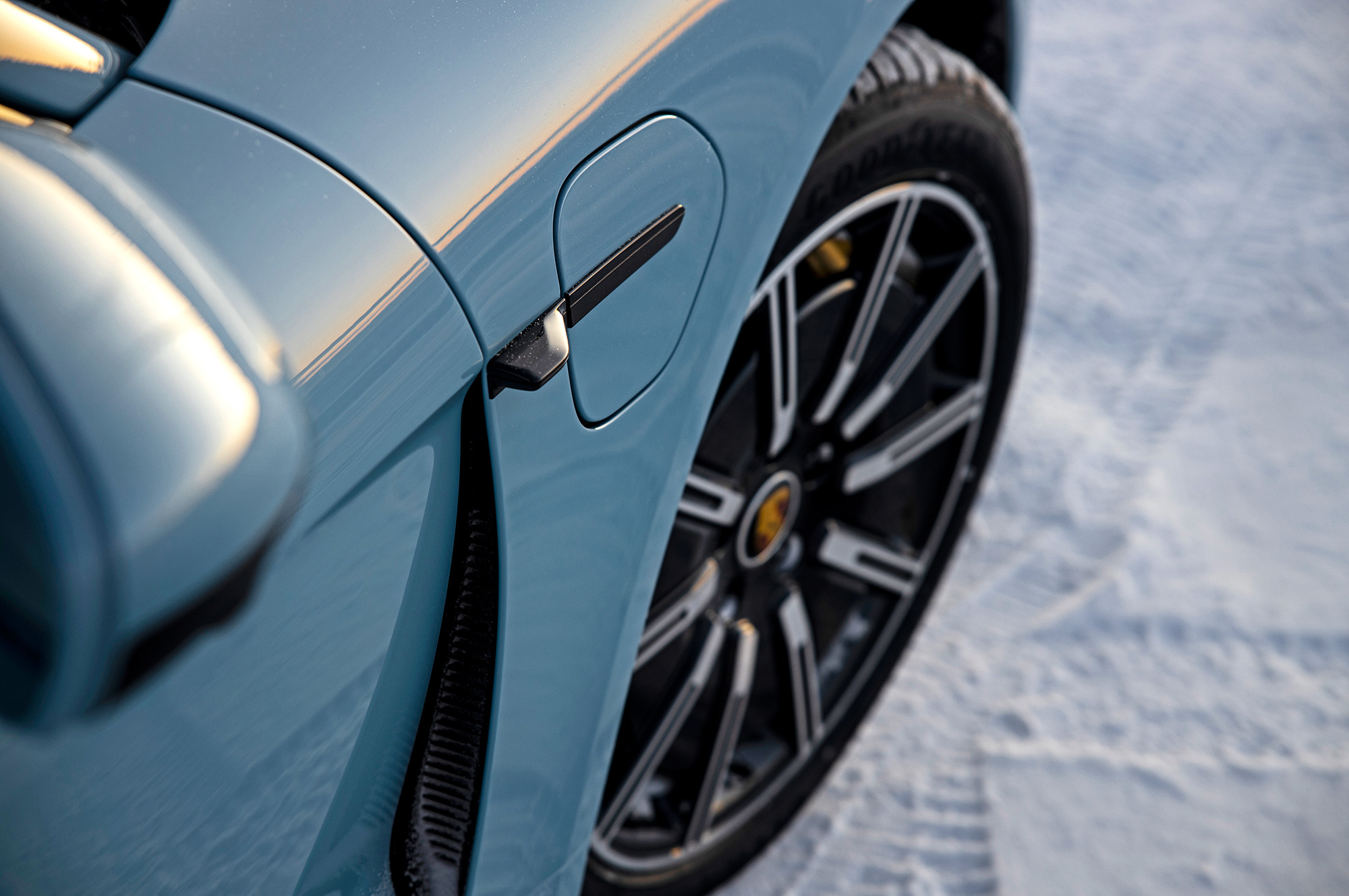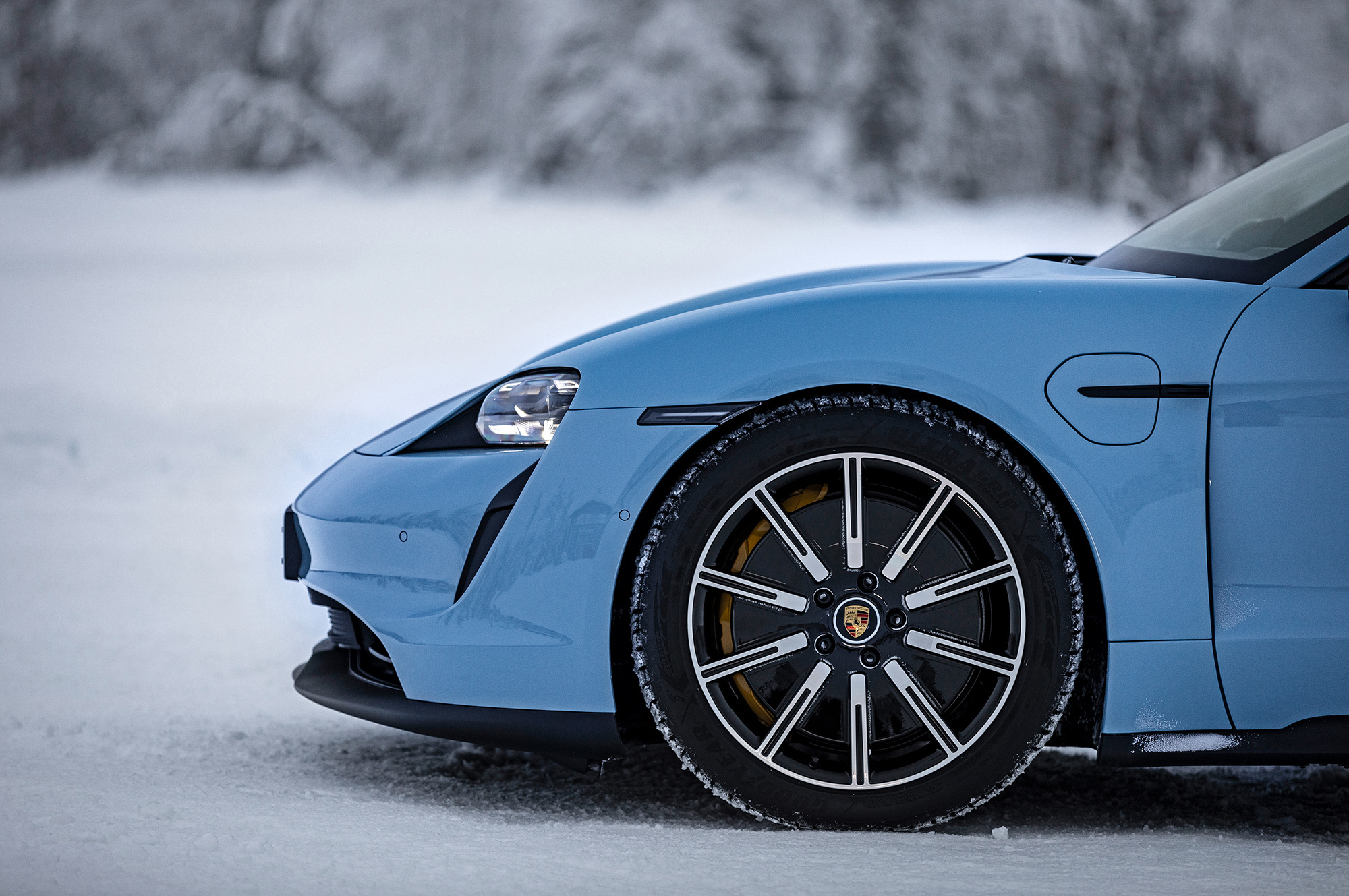 После получасовой быстрой зарядки в батарее снова 85% заряда, а меня ждут ледовые трассы. На 20-дюймовых дисках ― нешипованные покрышки Goodyear UltraGrip Performance, доработанные с учётом потребности Тайкана в низком сопротивлении качению. Хотя это жёсткие шины «европейского» типа, сцепление со льдом на удивление хорошее. Жаль, шумные и не шибко комфортные ― на зимних дорогах Taycan всё так же дрожит жёстким кузовом на небольших неровностях и обращает внимание на колёсный гул, как это было летом.