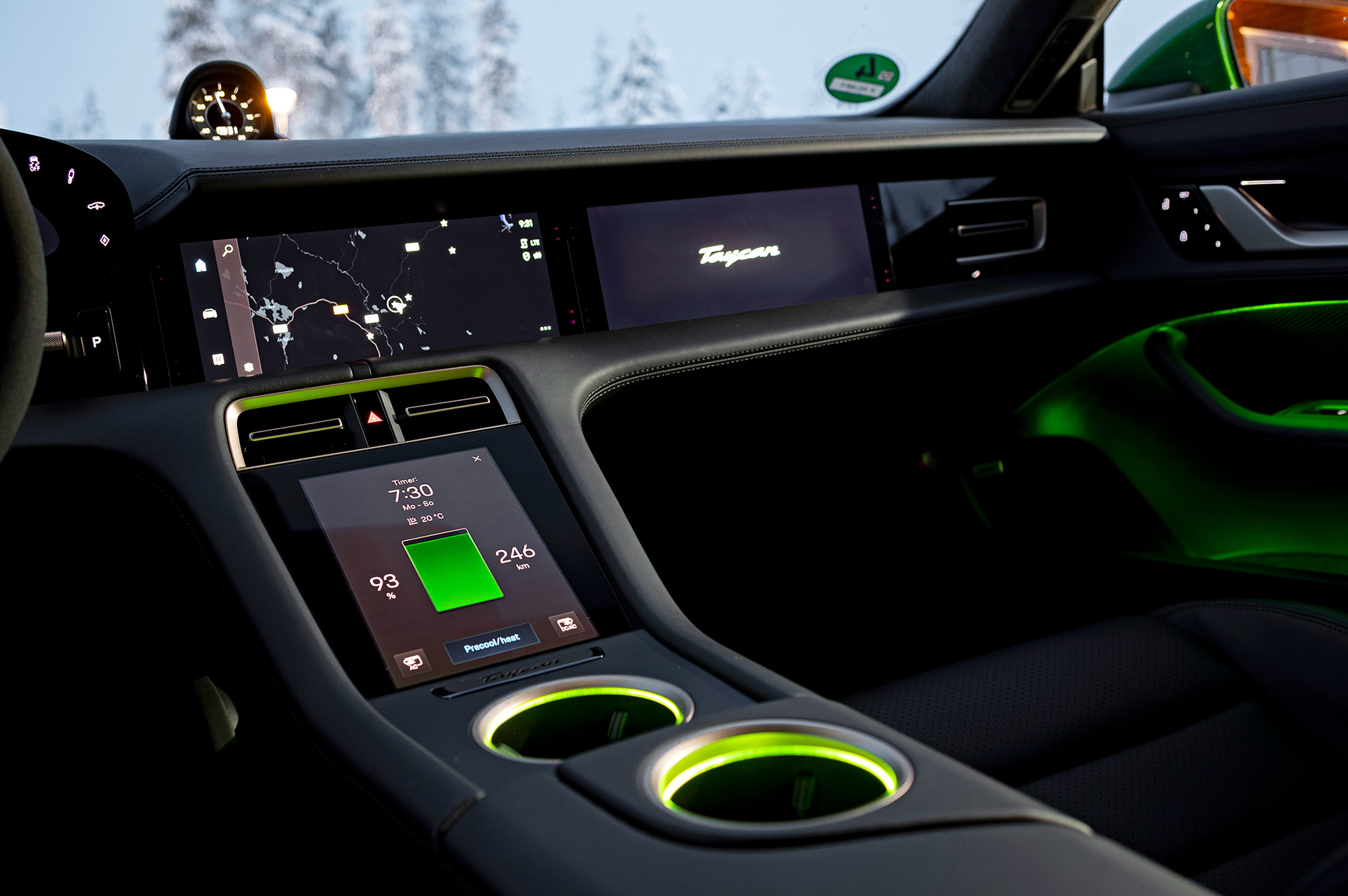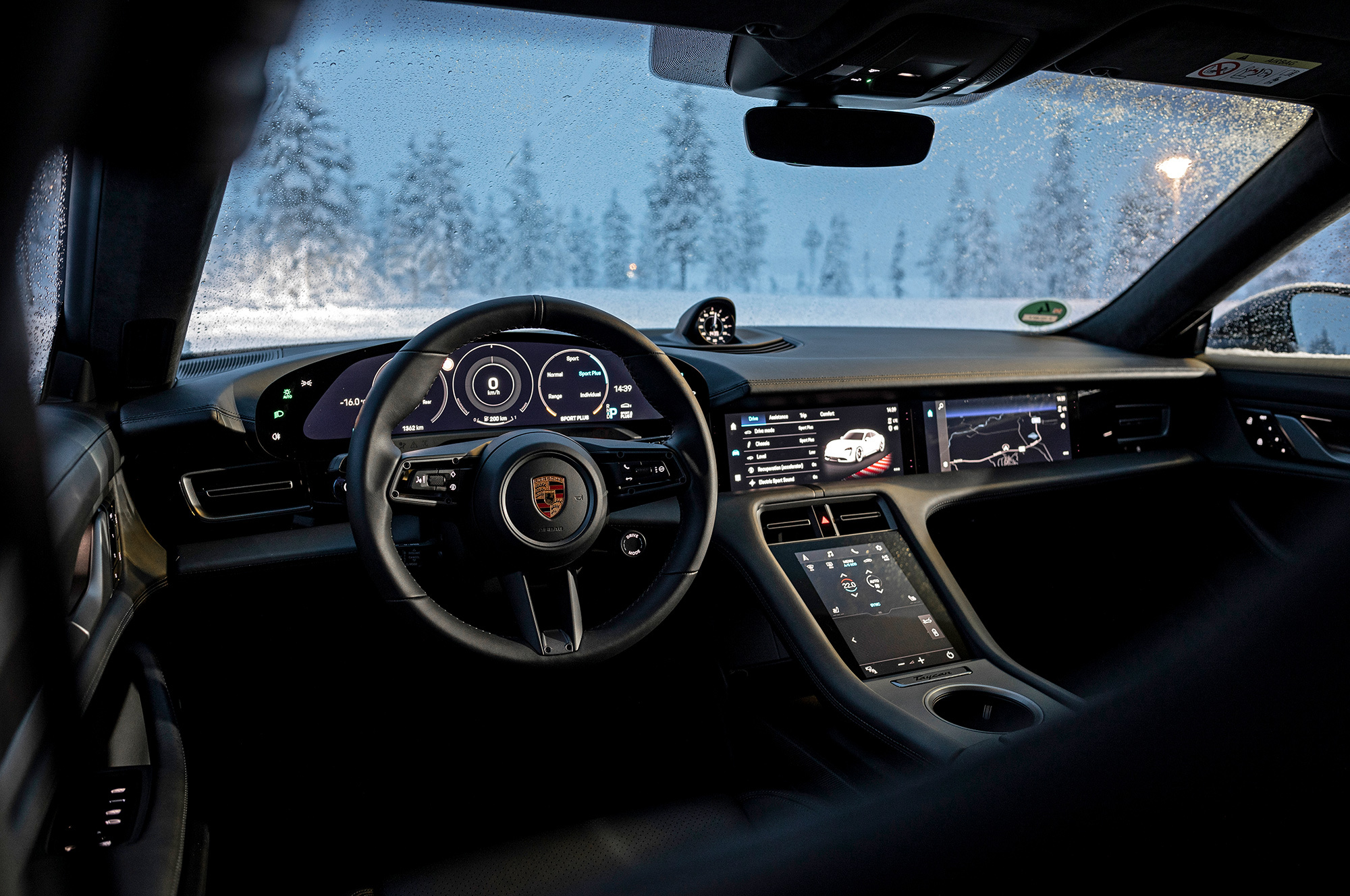 Изложенное ниже ― скорее продолжение рассказа Михаила Петровского о том, как едет электрический Porsche Taycan, чем самостоятельный материал. Слишком специфичны условия зимней Лапландии, где дороги бывают двух видов: чистый лёд и чистый снег, а максимальное значение скорости на дорожных знаках ― 80 км/ч. Представленный на тест Taycan 4S был оснащён такой же 800-вольтовой батареей на 93 кВт•ч, что и испытанные шефом Turbo и Turbo S, ― но здесь это опция относительно базовых 79,2 кВт•ч. К утру обещают до минус десяти. Холод не экстремальный, но для чистоты эксперимента прошу оставить нашу машину у гостиницы неподключённой к зарядке: пусть промёрзнет.