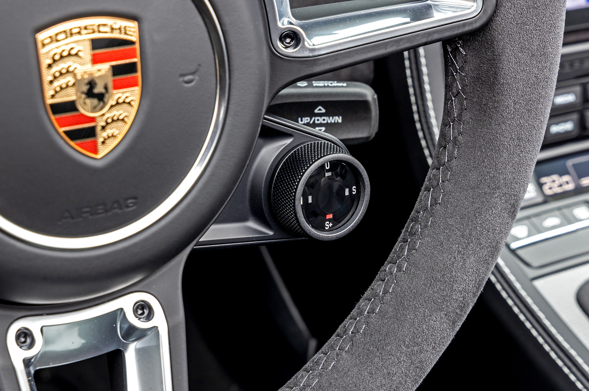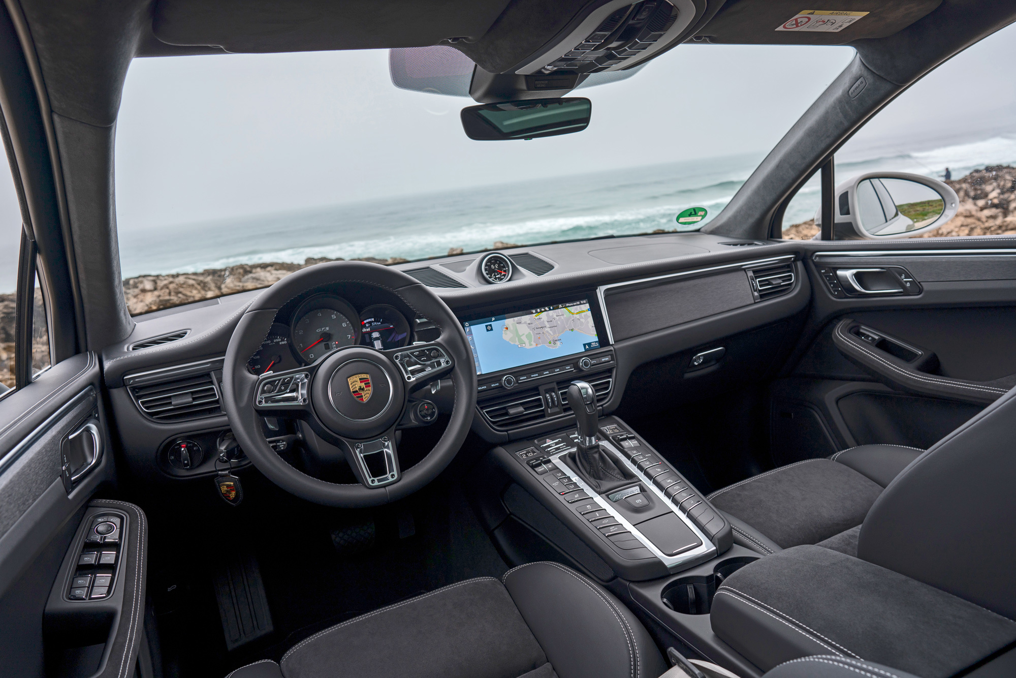 Интерьер Макана одним кажется немного устаревшим, но для прочих это оазис в пустыне безжизненных сенсорных панелей. В любом случае, как и другие версии после рестайлинга, GTS получил расширенный сенсорный экран, более удобный при использовании навигации. Как в Бокстере или Каймане, пакет отделки GTS выполнен с акцентом на алькантару. Повторюсь: это не шибко практично. Я бы оставил кожаным по крайней мере руль...