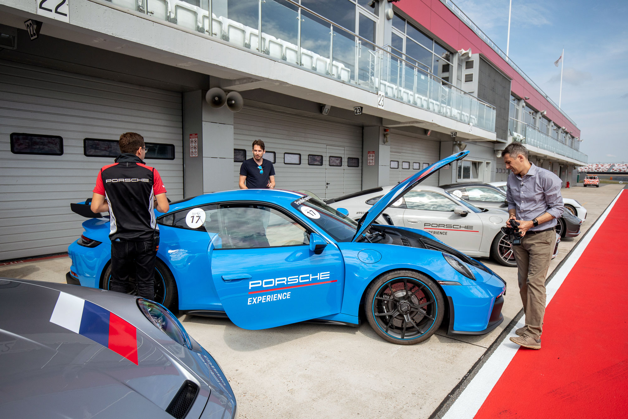 В отличие от реальных учеников, выкупающих день за рулём определённого Porsche, мы должны время от времени меняться местами с напарником и — автомобилями с другими экипажами. Лично мне это только на пользу. Во-первых, рядом находится надёжный товарищ и автор Драйва бельгиец Ян Кооманс. Он гонщик-любитель, один из быстрейших пилотов Porsche в тайм-атаке. Хорошо знает MRW, может не только подсказать, но и показать. Я езжу, считай, с личным тренером.