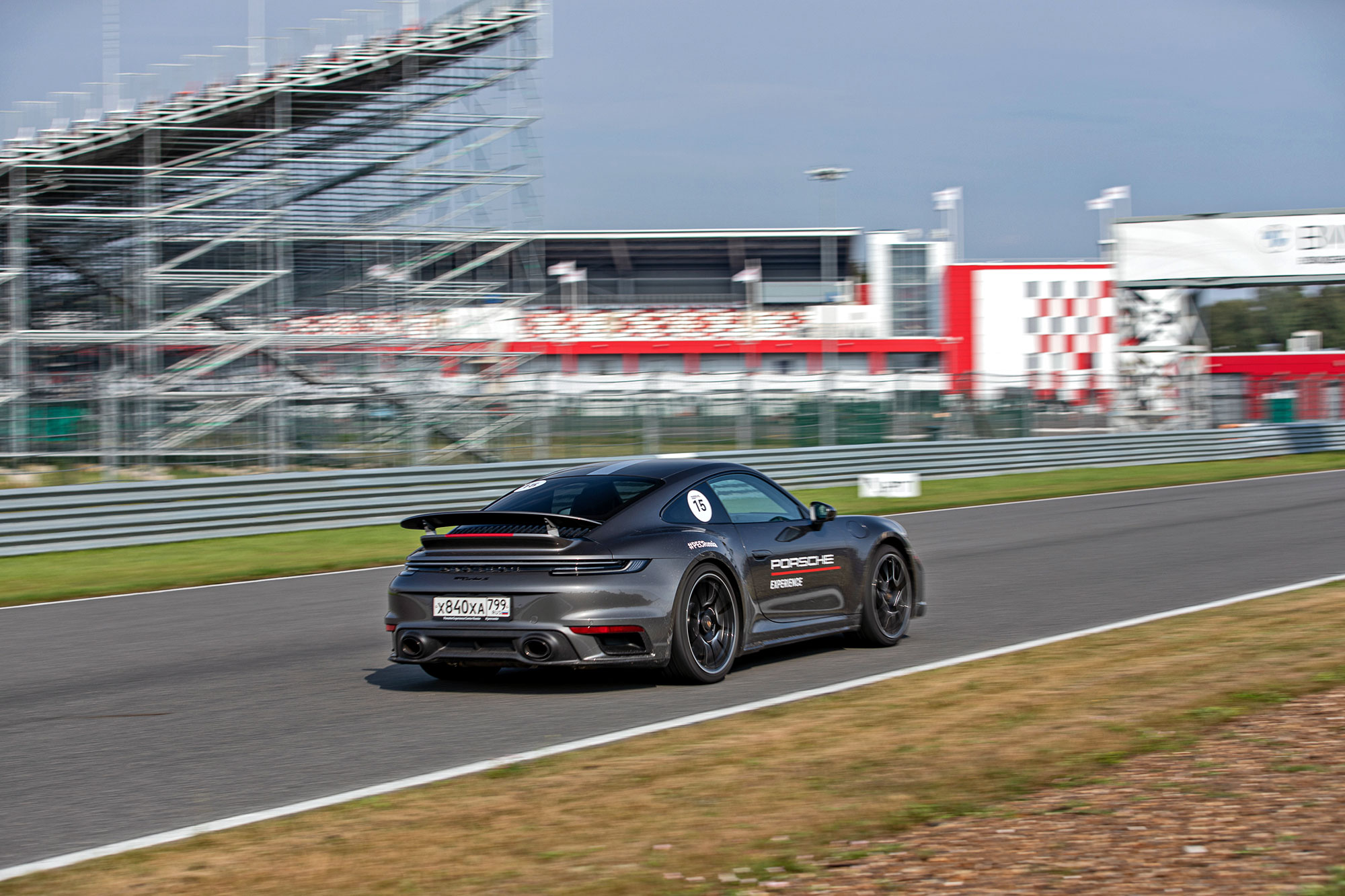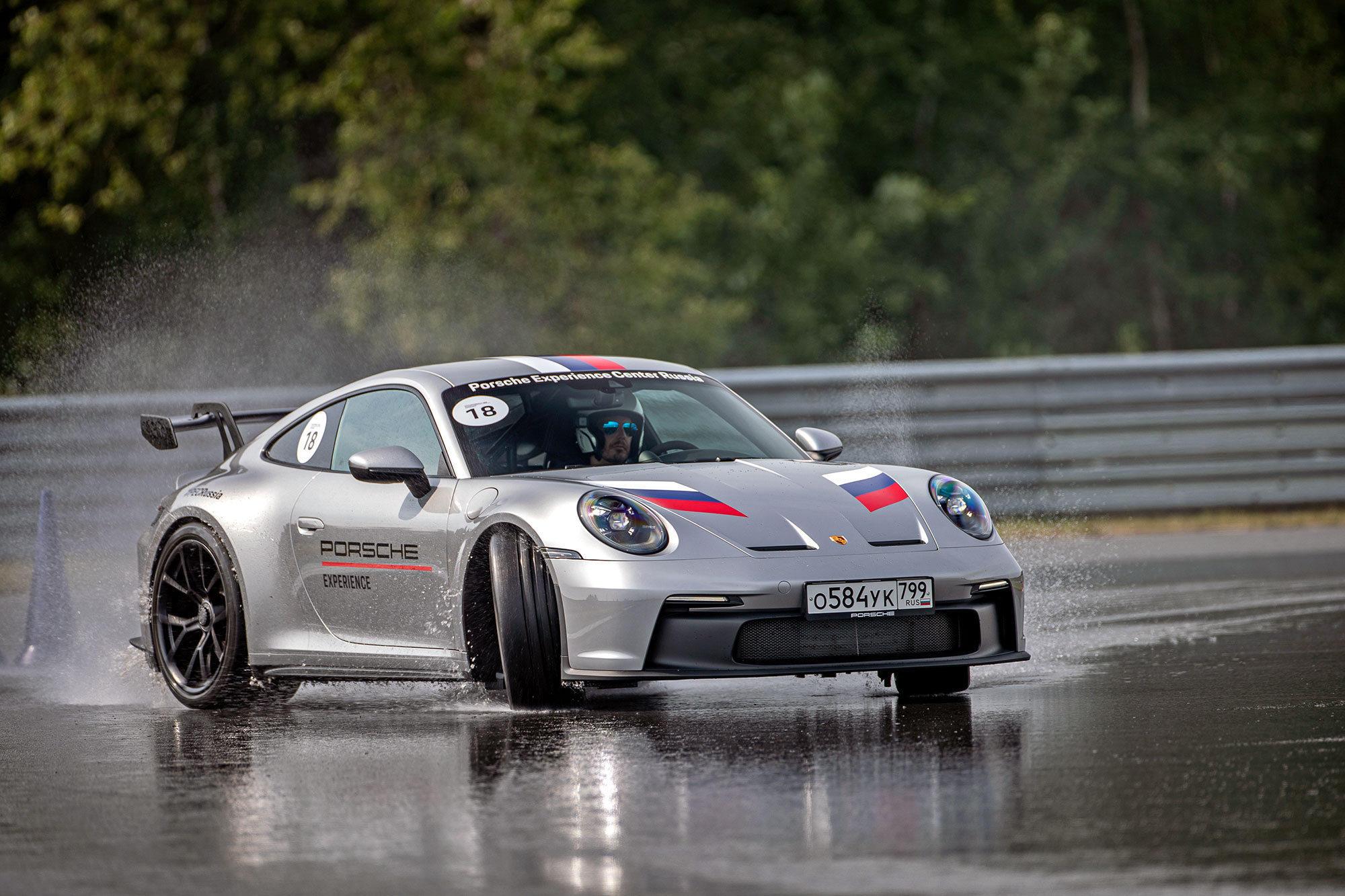 Известный вам Олег Кесельман организовал нечто поинтереснее простого тест-драйва на треке. Обычно ведь как делается: рассадили журналистов в колонну за инструктором, проехали несколько кругов паровозиком — свободны. Здесь же за основу шестичасового мероприятия взята программа наиболее продвинутых курсов фирменной школы вождения Porsche, которой много лет руководит наш тест-пилот. Кольцо Moscow Raceway поделено на отрезки, и каждый мы подолгу утюжим под присмотром Олега и его команды.