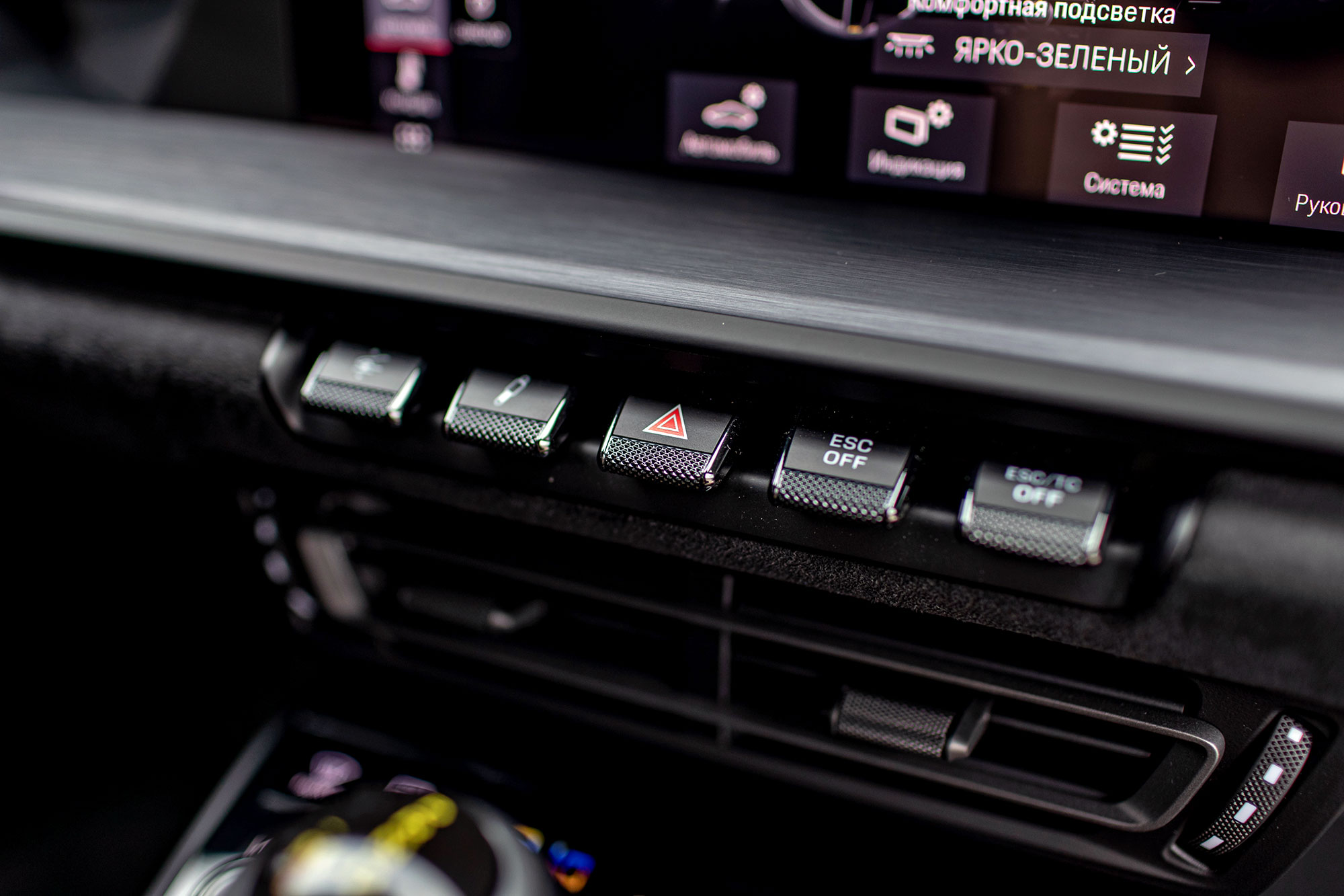 Вместе с «роботом» GT3 992 унаследовал от предшественника нормальный рычаг выбора передач. Он не только выглядит солиднее комичного тумблера, но и позволяет переключать передачи вручную по старинке, а не только подрулевыми гашетками. Я слышал, покупатели других 992-х уже интересуются, нельзя ли установить туда селектор от GT3. Увы: здесь сохранён тросовый привод парковочного режима, а в гражданских моделях коробка управляется исключительно по проводам.