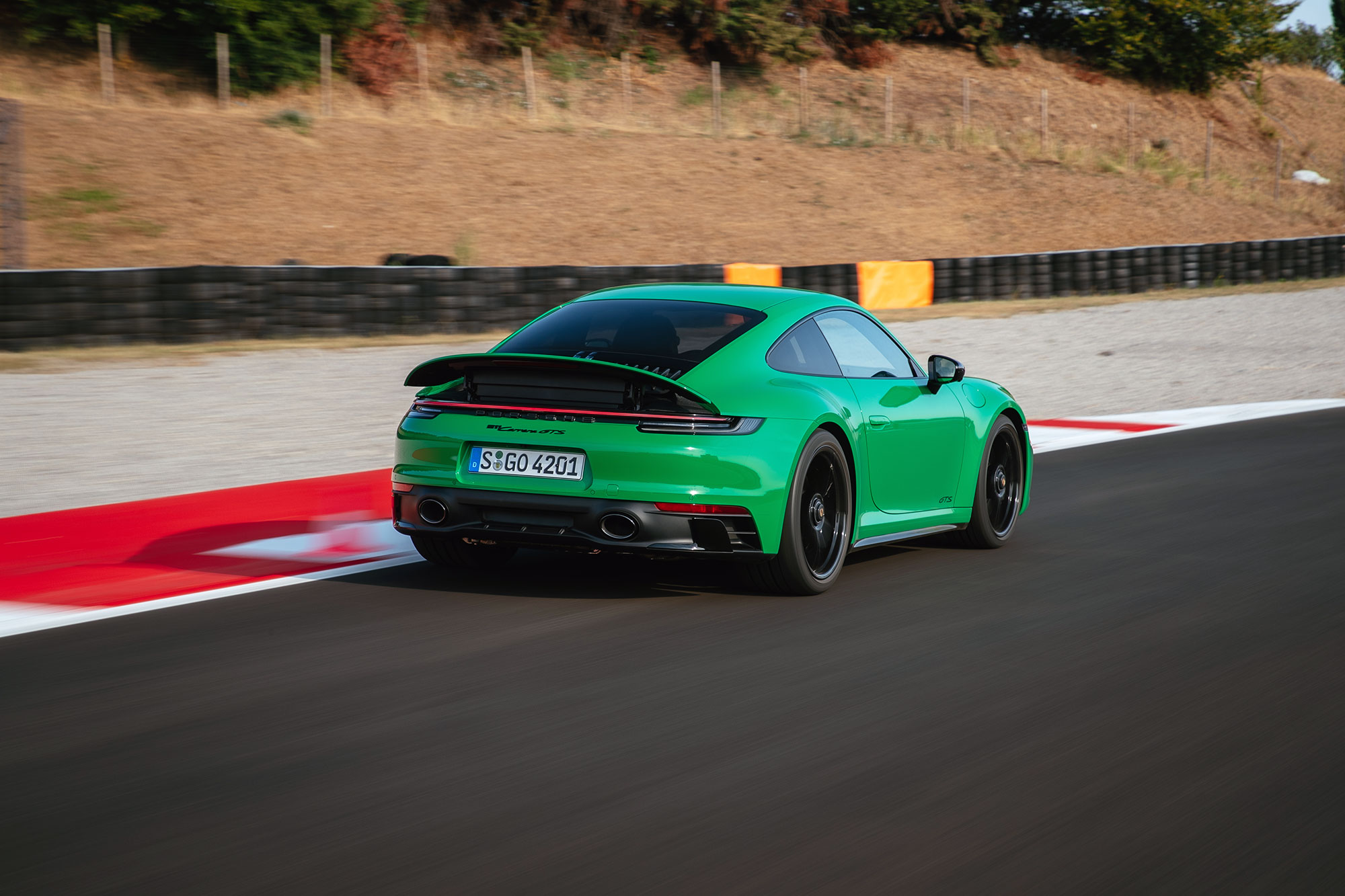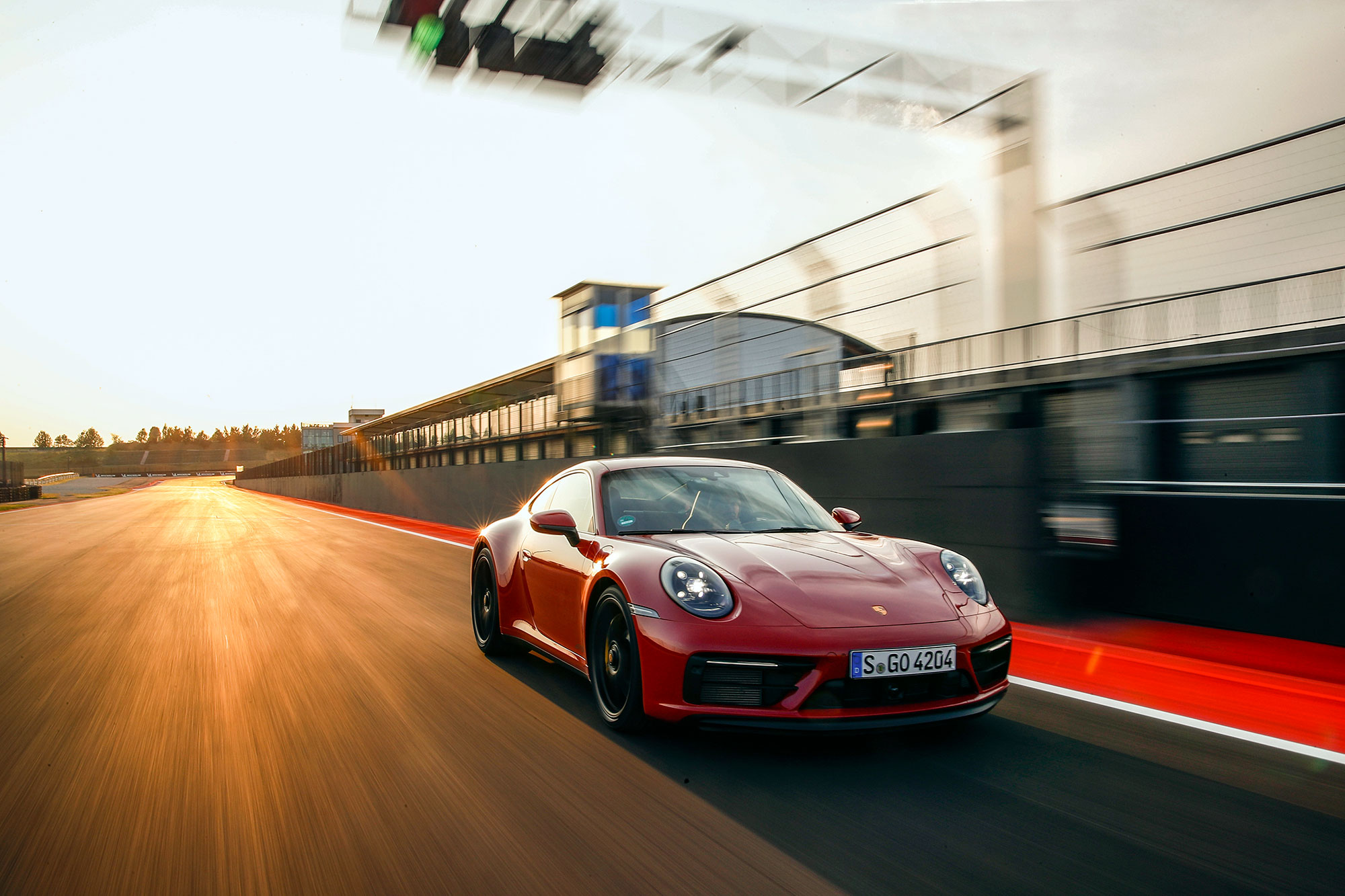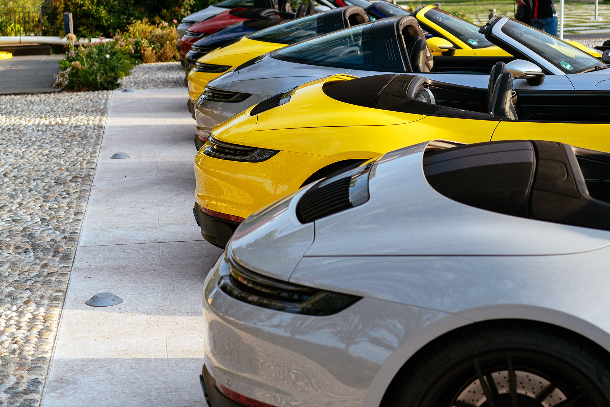 Когда-то в этих местах был картодром, не шибко подходящий для теста спорткаров, но нынешней конфигурации хватает и ширины, и скорости, и интересных связок поворотов. Официальное открытие состоялось всего за пару дней до нашего приезда, так что я оказался среди первых посетителей. Предполагается, что мы выкатываем на трек купе, а с кабриолетом и таргой знакомимся на дорогах общего пользования. Логично. А упоминал ли я 30-градусную жару? Теперь точно да. Первое на очереди — полноприводное купе Carrera 4 GTS.
