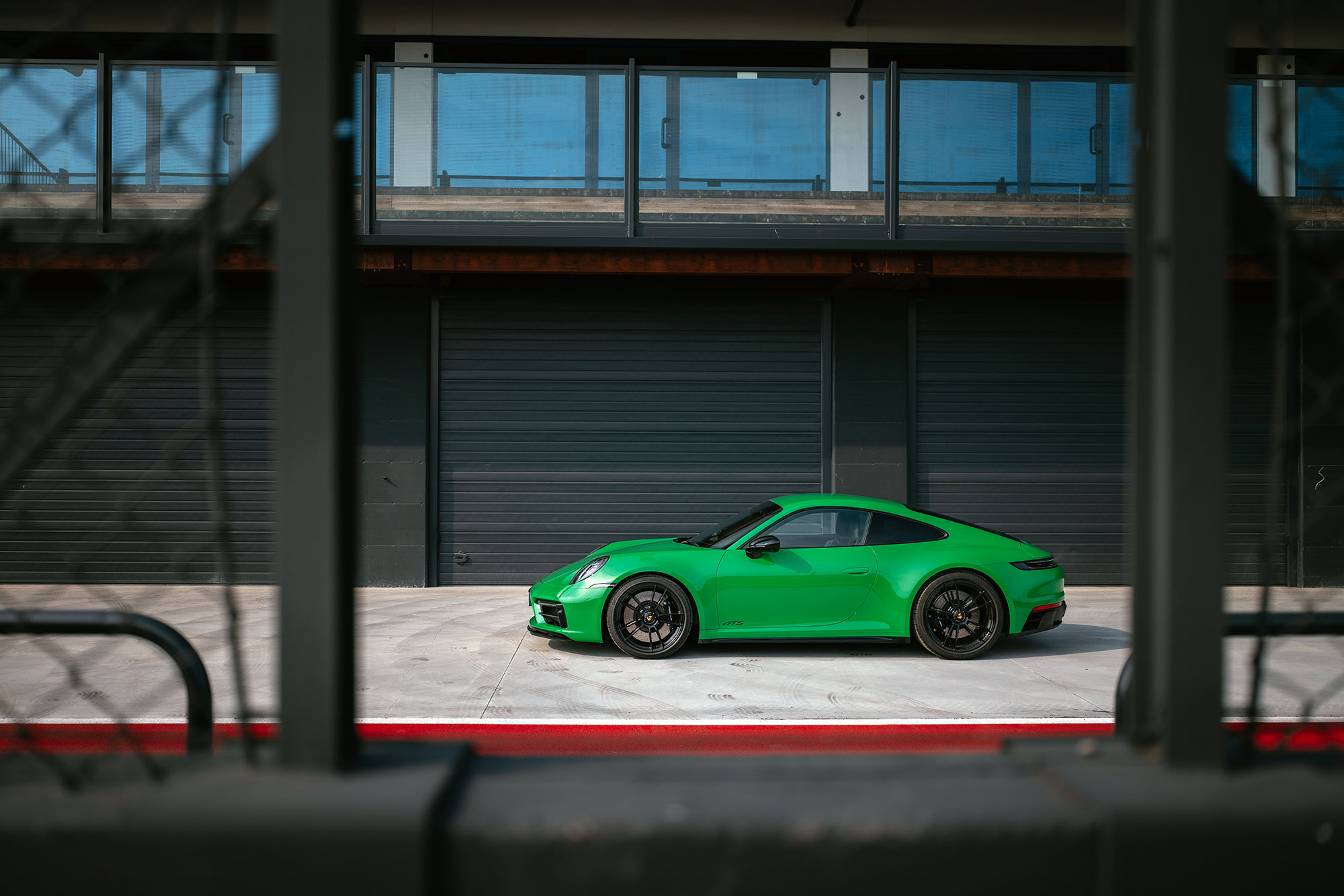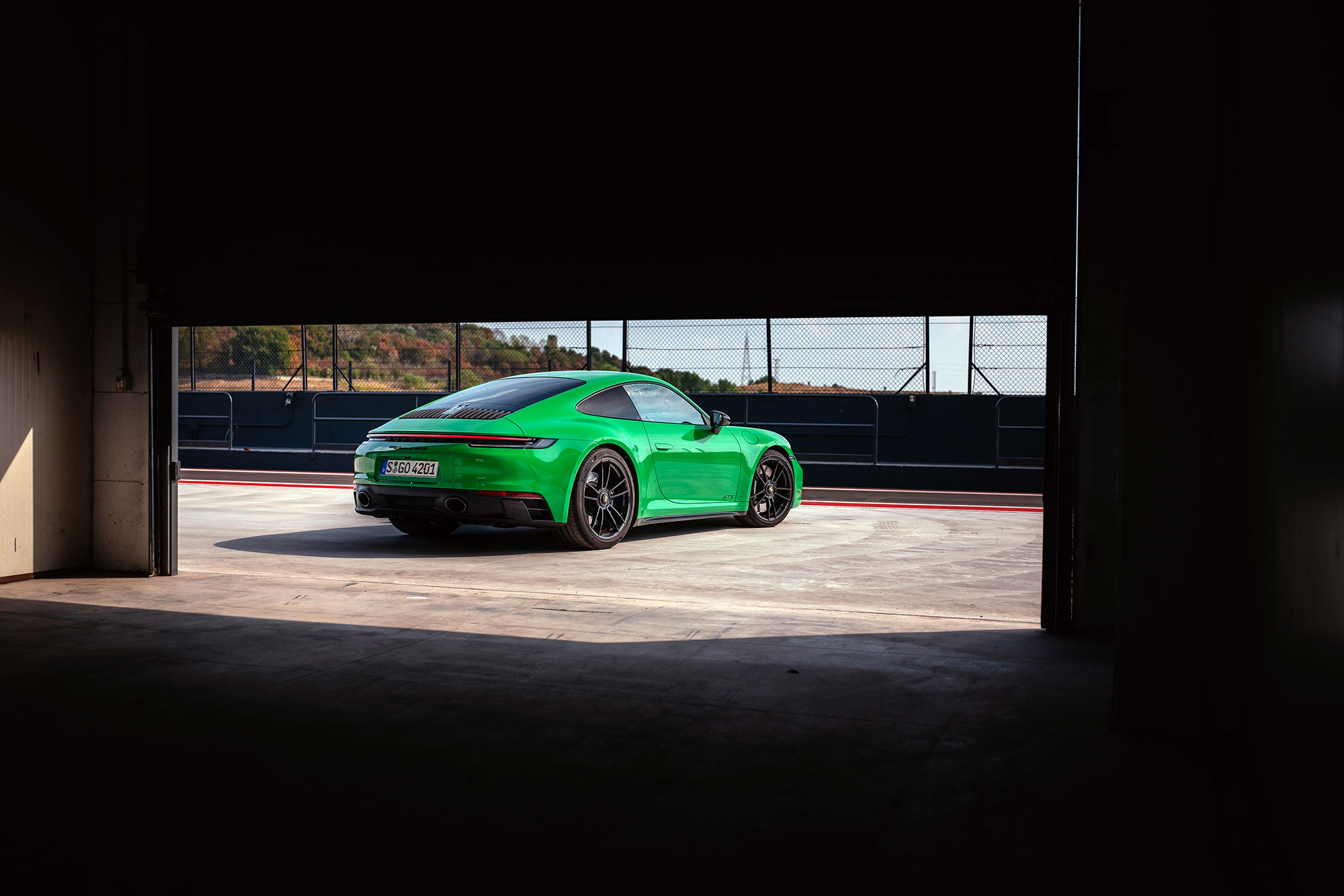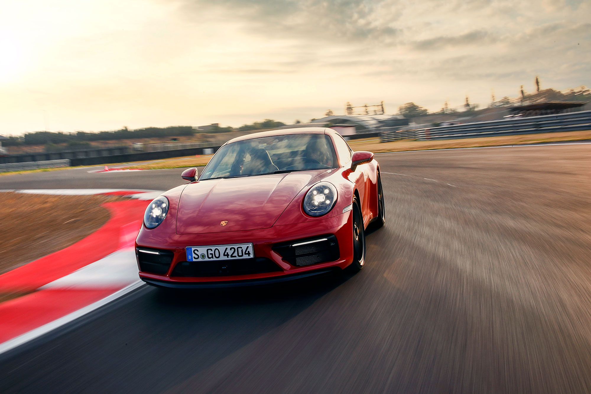 Когда-то в этих местах был картодром, не шибко подходящий для теста спорткаров, но нынешней конфигурации хватает и ширины, и скорости, и интересных связок поворотов. Официальное открытие состоялось всего за пару дней до нашего приезда, так что я оказался среди первых посетителей. Предполагается, что мы выкатываем на трек купе, а с кабриолетом и таргой знакомимся на дорогах общего пользования. Логично. А упоминал ли я 30-градусную жару? Теперь точно да. Первое на очереди — полноприводное купе Carrera 4 GTS.