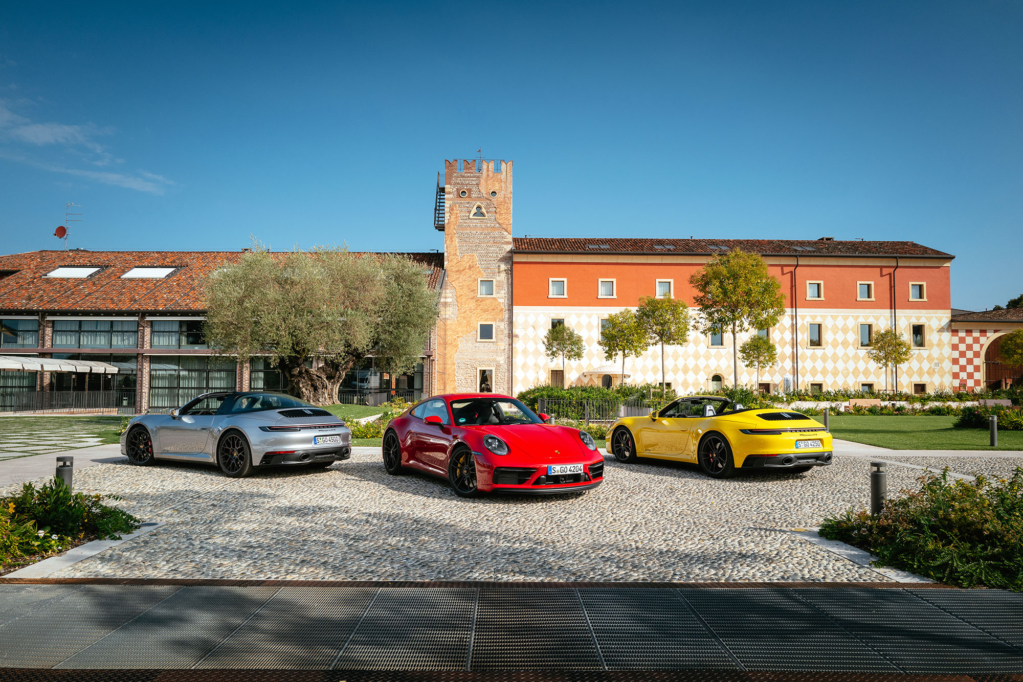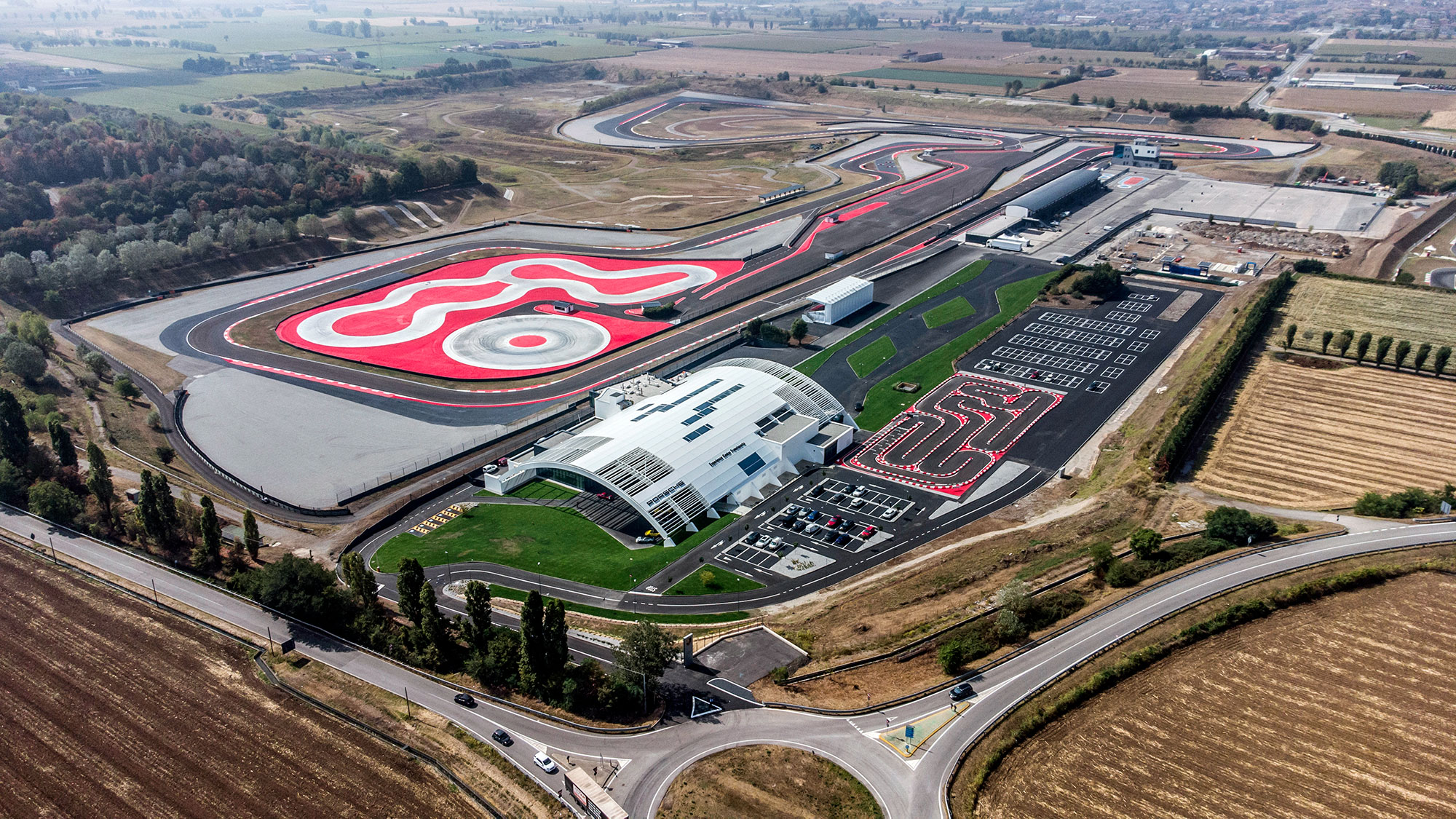 Премьера спорткара Porsche немыслима без трека. В этот раз нас принимает новый с иголочки экспириенс-центр неподалёку от города Брешиа, в часе езды на восток от Милана. Названный в честь провинции Франчакорта комплекс стоил 28 миллионов евро, и это видно не только по восхитительному местоположению или просторным современным зданиям — на территории проложена собственная высококлассная кольцевая трасса длиной 2,5 км.