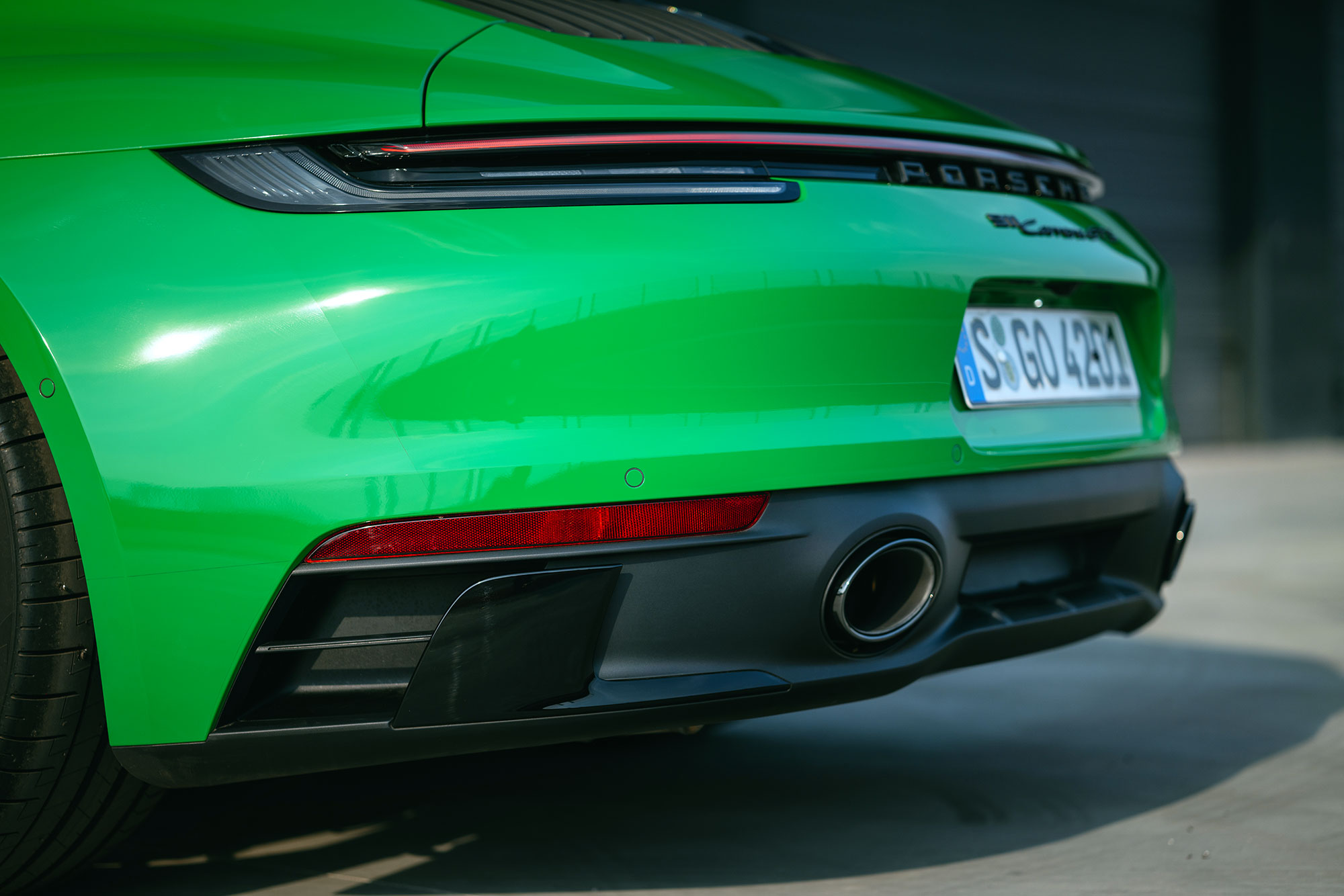 Базовый для GTS cпортивный выпуск (Porsche Sport Exhaust или PSE) позволяет менять звук с очень мирного на чуть громкий. Всё как у других Каррер 992. Но именно тут обращает внимание то, что PSE придерживается заданной программы, как бы бодро я ни ехал. Видите ли, у 911-х предыдущего поколения, как и у современных Бокстеров с Кайманами, электроника сама открывает заслонку глушителя при разгоне в пол на определённых оборотах, даже если спортрежим выключен — меня это слегка раздражает. Здесь же клапан остаётся закрытым до самой отсечки.