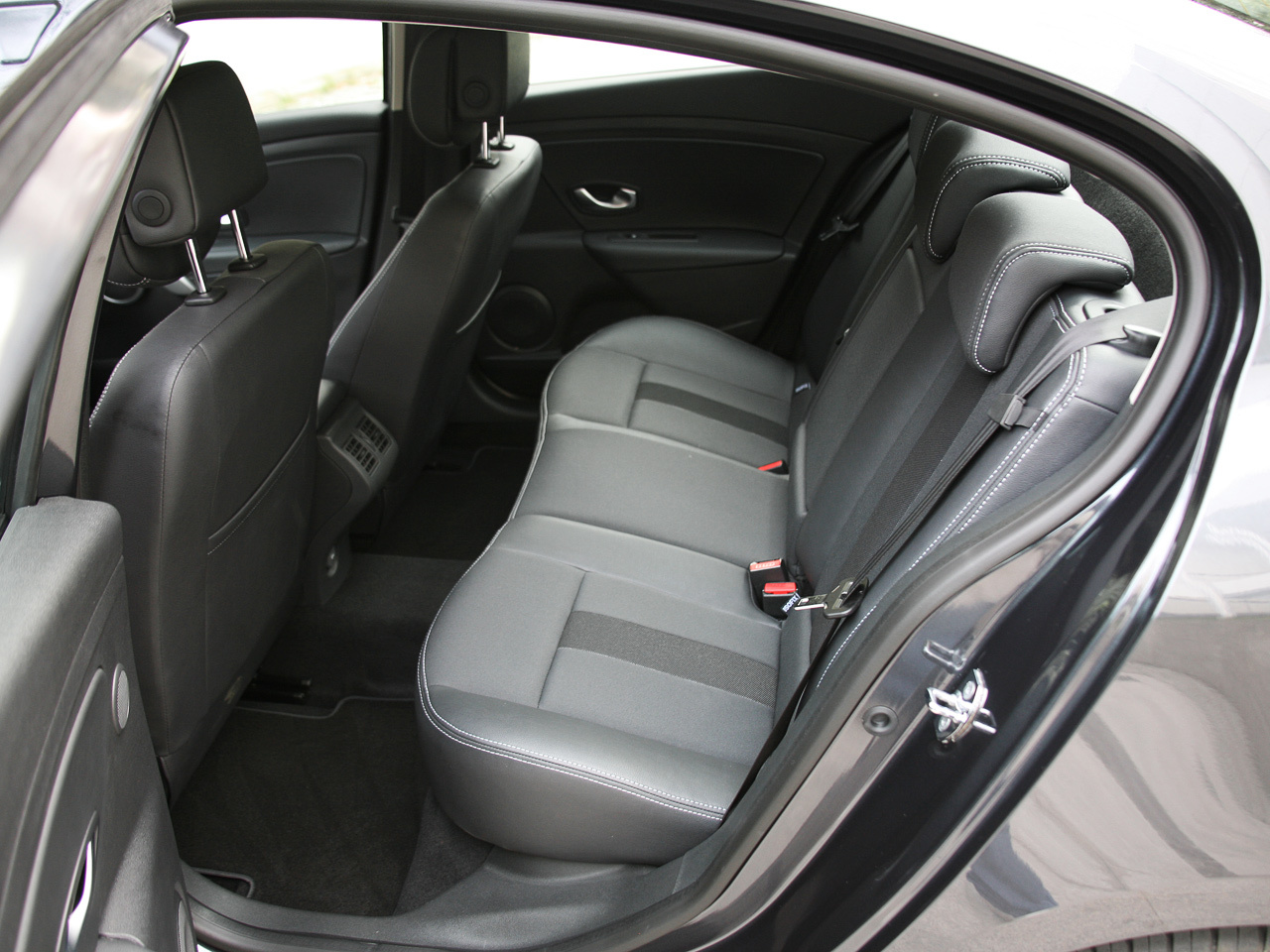 Всё это не могло не отразиться на компоновке интерьера. Инженеры уверяют: по ширине в локтях и по высоте салон Флюенса лучший в классе. С рулеткой я не лазил, но субъективно места внутри с избытком. Даже рослые журналисты без проблем усаживались «сами за собой» и не протирали обивку крыши затылками. А двери, открывающиеся на большой угол, упрощают посадку. Но голову пригнуть всё же надо, а то покатая крыша оставит вам на память синяк.