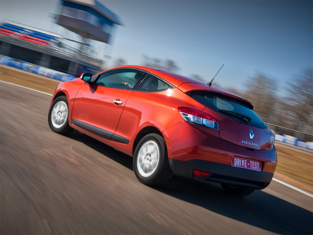 От концепт-кара, показанного два года назад на Женевском мотор-шоу, серийный Megane Coupe отличается существенно. Подъёмных дверей нет, вместо видеокамер заднего вида — обычные зеркала. Колёса тоже заурядны. Но обводы кузова почти не изменились. Много общего и в деталях. Именно деталями «француженка» берёт за душу. Стальная панель задней двери рассечена высокохудожественными выштамповками, по металлу капота идёт острая волна. Спереди — «клыки» воздухозаборников, а задними фонарями можно любоваться без устали. Что в темноте, что днём выглядят они великолепно.