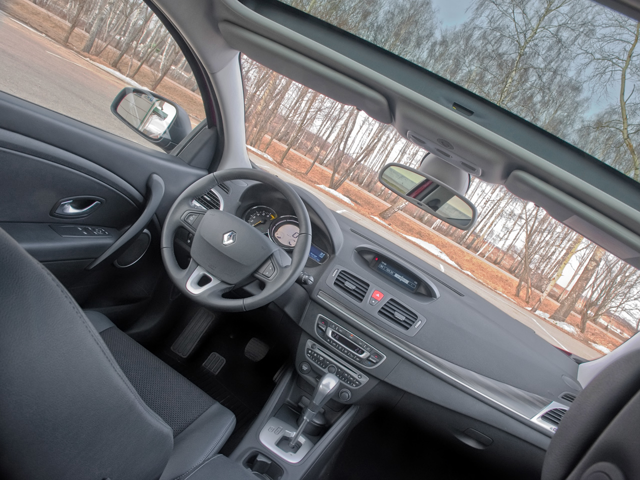 Несмотря на предельно скромную отделку серебристым пластиком, салон Мегана не выглядит угрюмым. Напротив, чувство меры лишь подчеркивает качественность интерьера. Но не все детали вызывают положительные эмоции. Прыгаю за руль, жму кнопку «Старт» — в ответ тишина. Ведь ставшую традиционной для Renault чип-карту нужно вставить в специальный слот и только потом запустить мотор. Ритуал этот, надо сказать, быстро надоедает. Россыпь мелких кнопок климат-контроля и магнитолы вынуждают отвлекаться в пути. Цифровой же «иллюминатор» спидометра безбожно врёт на малых скоростях.