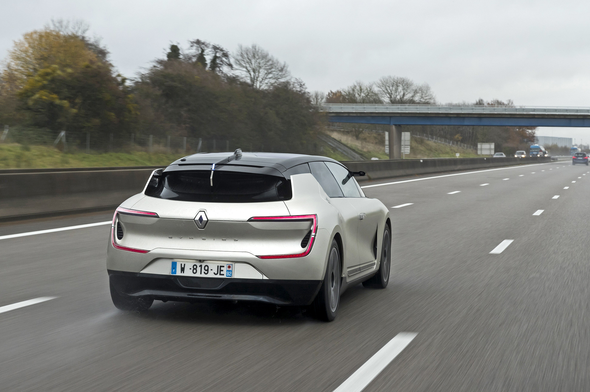 Для теста на старейшем французском шоссе А13 получено разрешение местных властей. Маршрут можно назвать тепличным: с отбойником на всём протяжении, чёткими полосами разметки и без единого съезда. Единственное серьёзное препятствие — узкий пункт оплаты по транспондеру. Многие компании уже испытывают автономные прототипы на более замороченных загородных дорогах, в городах, даже на гравийках и по снегу. Но у нас тут ведь не взаправдашние испытания, а мероприятие для прессы, так что лучше без осложнений. Тем более что Symbioz вполне может организовать их сам.