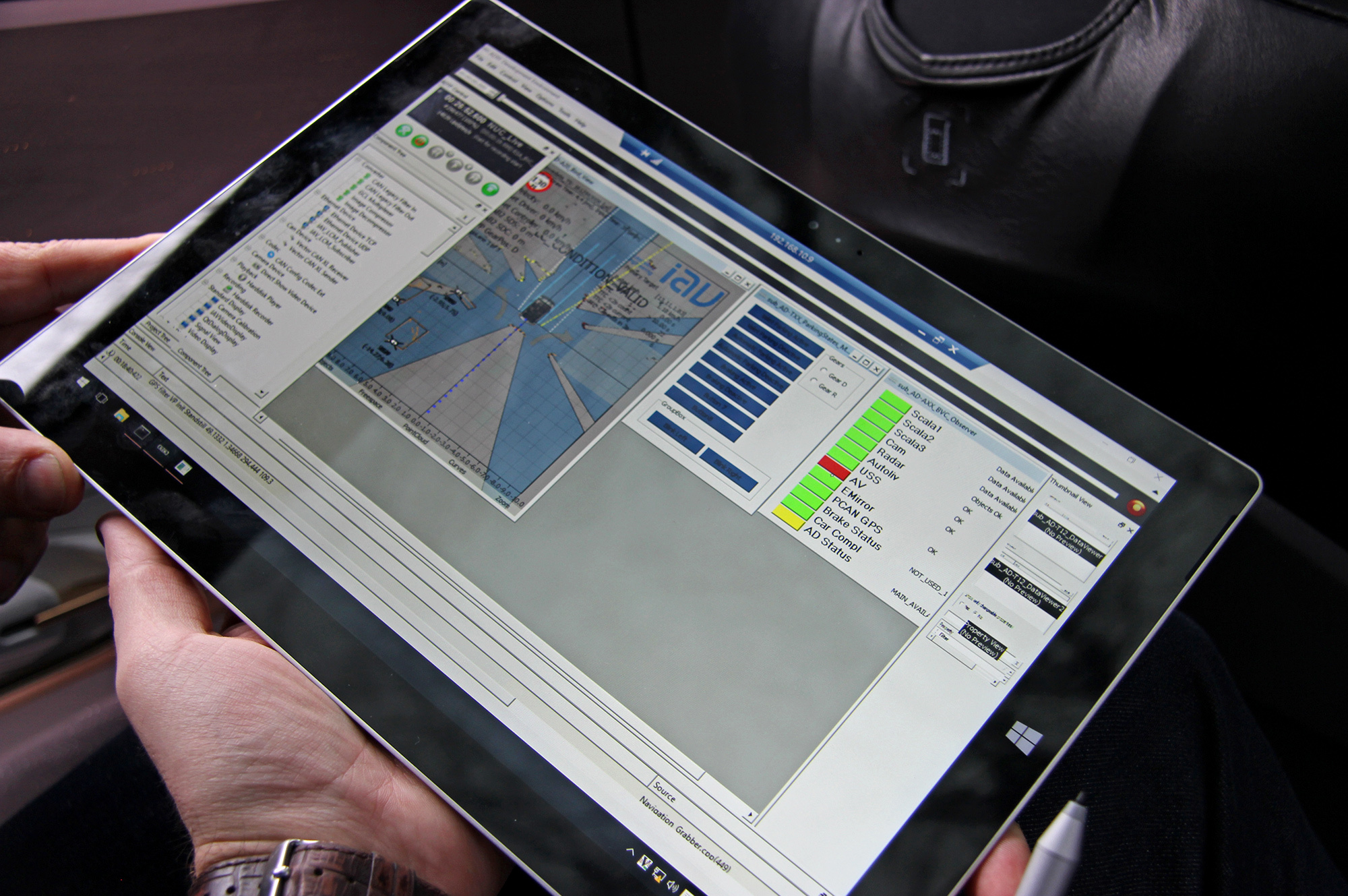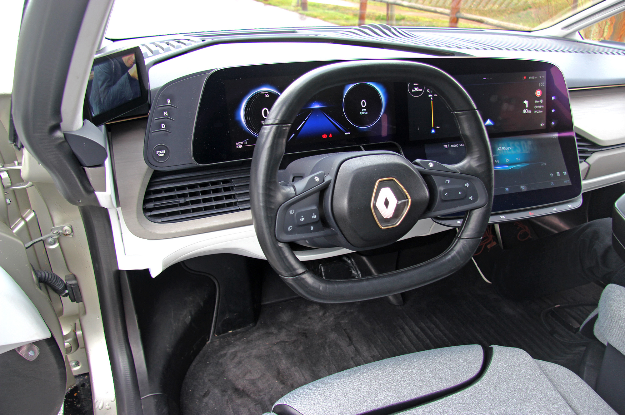 Первым за руль садится коллега. При включении автопилота машина шарахается влево. Журналист хватает баранку, а инженер справа корректирует траекторию своим джойстиком. Ещё попытка — тот же результат. Со стороны задача кажется простой — плавно убрать руки. Но на 120 км/ч не хочется, чтобы автопилот выкинул какой-нибудь фортель. Останавливаемся, реношники колдуют с настройкам на планшетах. Объясняют: вчера, мол, был сильный боковой ветер — машина подстроилась под него. Странно, что система адаптируется в одну сторону. Стартуем заново, но Symbioz опять сбоит.