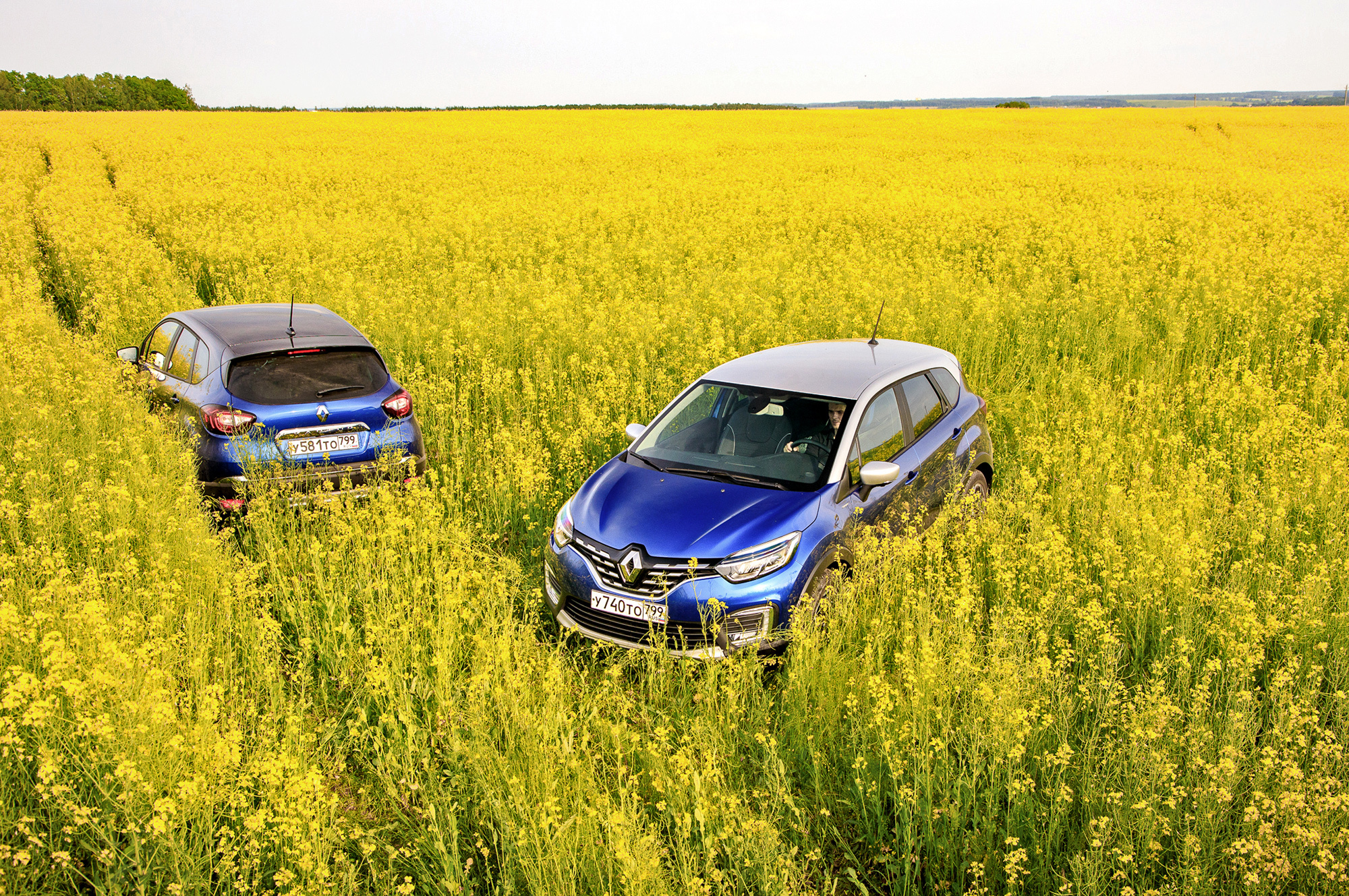 С выбором внедорожного маршрута мы не угадали: оба Каптюра без малейшего труда справляются с фрагментарно раскисшей колеёй. Причём бодаться с грунтом проще в обновлённом кроссовере, где руль не рвёт из рук. А отклики на газ достаточно точны, чтобы пользоваться тяговитостью турбомотора без лишней пробуксовки.