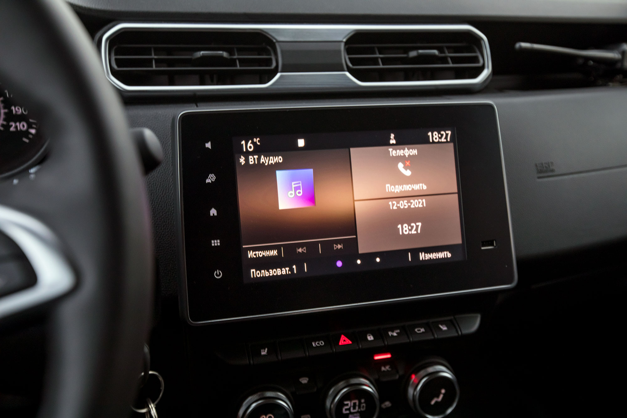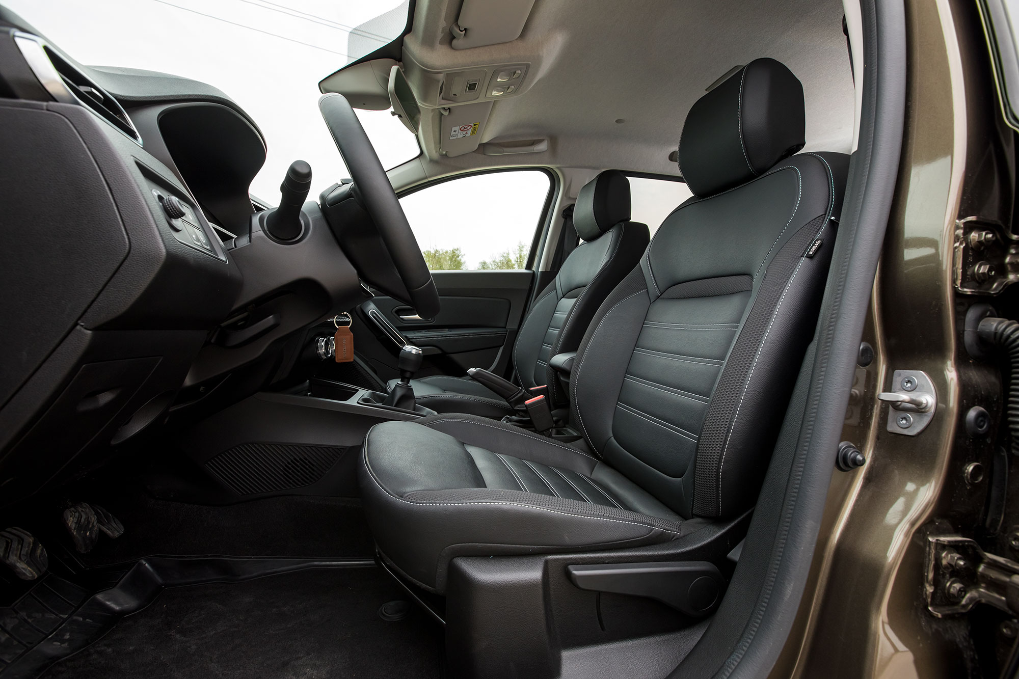 Театр начинается с вешалки, а Duster — с посадки. Руль установлен почти вертикально и регулируется по всем направлениям, а водительское кресло можно опустить как никогда низко. Само сиденье тоже иное: удобное и гостеприимное, оно принимает тело глубоко, а не выталкивает, как раньше. Всё это выводит качество совместной жизни с Дастером на новый уровень. К тому же интерьер собран лучше прежнего, а в отделке используется хоть и жёсткий, но не гулкий пластик. И Duster хорош деталями: металлизированной окантовкой ручек климат-контроля и стильным набалдашником рычага коробки передач, словно взятого у хот-хэтча.