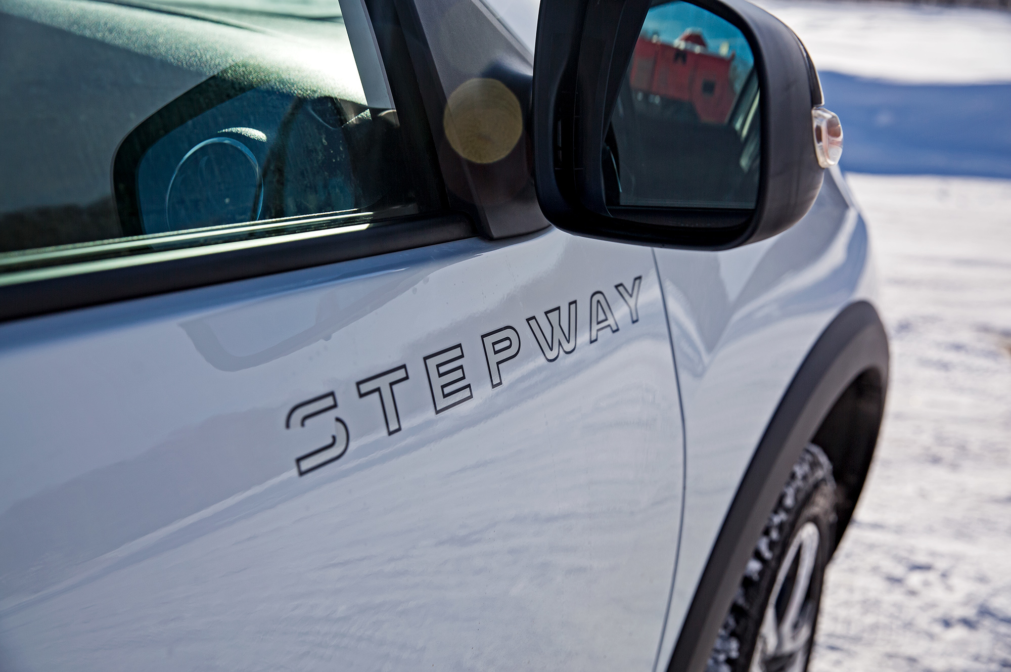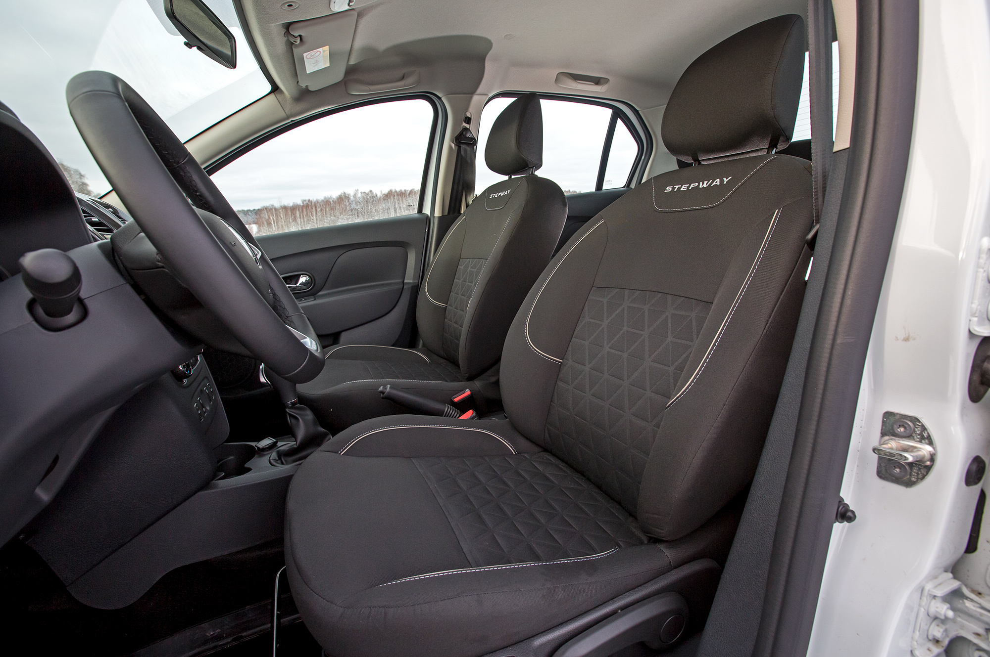 Вариатор потребовал корректив передней подвески Логана, но характер управляемости не изменился. Renault по-прежнему неважно держит прямую и нервно ёрзает, попадая в колею. На пределе под сброс газа Stepway норовит по-логановски уйти в занос. Машине с мотором H4Mk положен электрогидроусилитель, благодаря которому руль чуть легче, и реактивное усилие нарастает логичнее, чем у моделей с чистой гидравликой. Удары от неровностей всё равно сыпятся на руки водителя, особенно в поворотах, хотя и в меньшей степени.