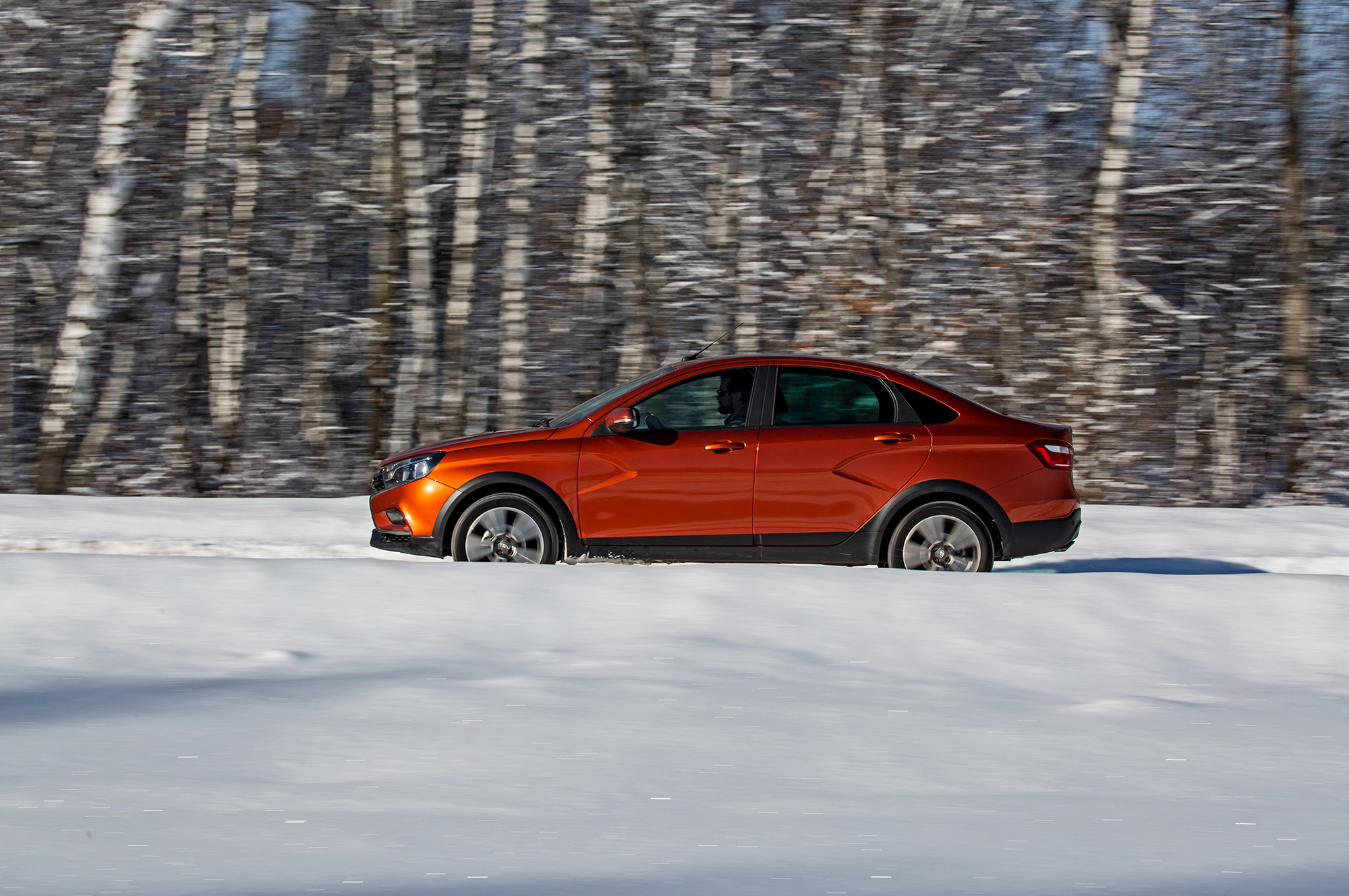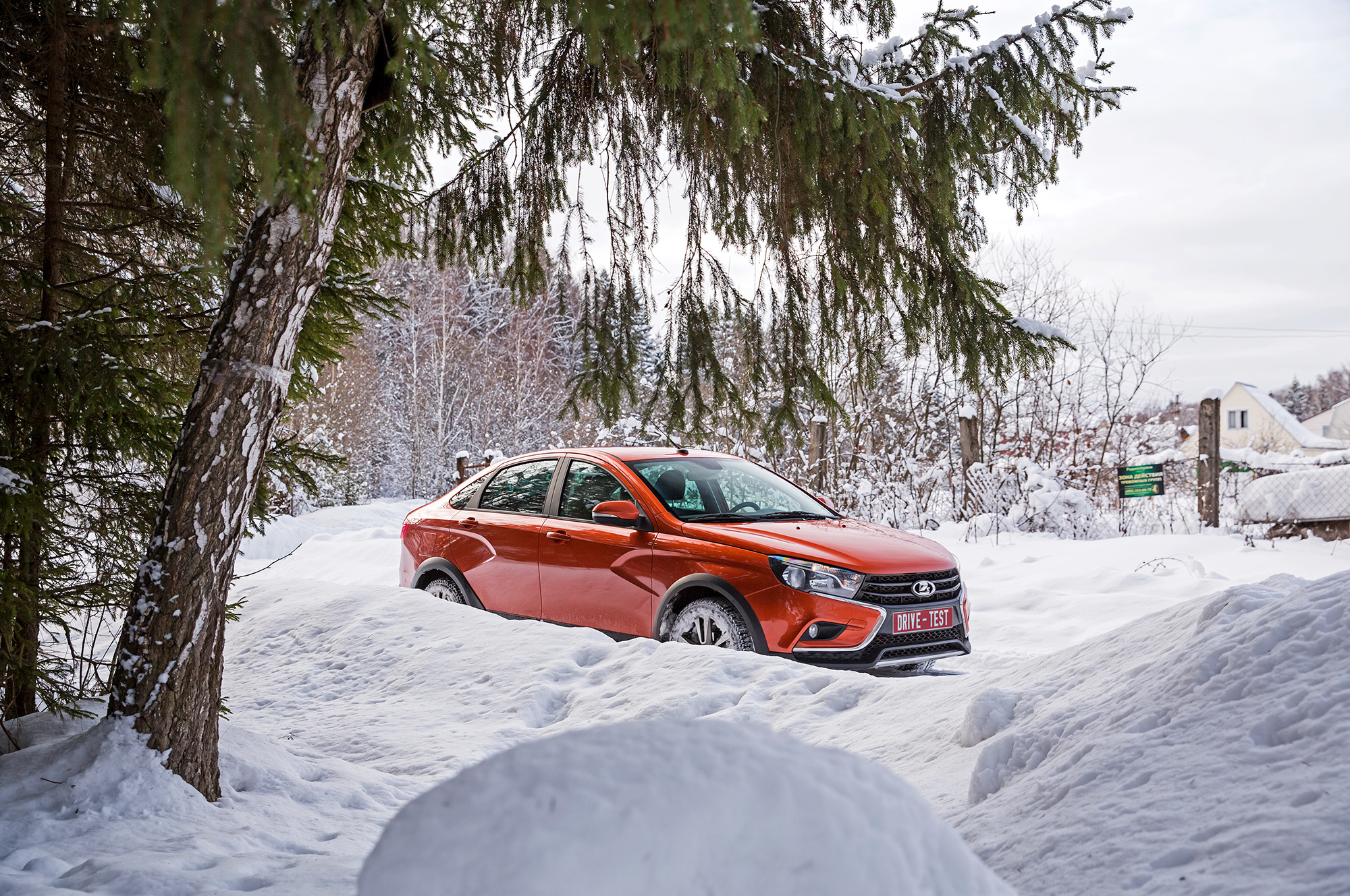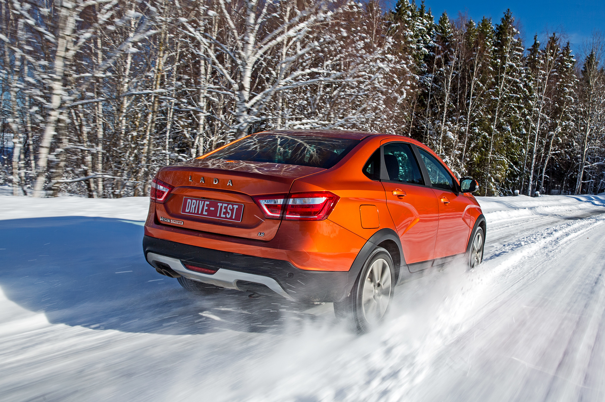 Vesta на фоне Логана воспринимается более эмоциональной. Руль легче (особенно в парковочных режимах) и точнее. В нуле нет зажатости. Высок темп реакции на команду к смене курса, но не чрезмерно. Vesta меньше валится на бок, чем Stepway, однако резкие манёвры чреваты доворотом по крену. Скользкую дугу Cross пишет с минимальным обозначением сноса, а довольно резкий занос под сброс газа хорошо отрабатывает система стабилизации.