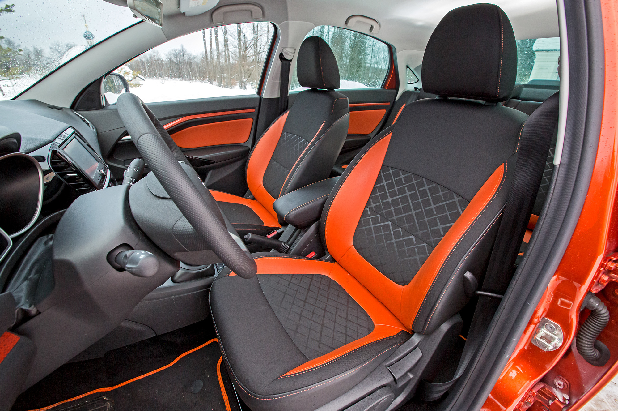 У обоих седанов пороги пачкаются. Передние двери Лады открываются так, словно вообще лишены фиксаторов промежуточного положения: того и гляди долбанёшь соседнюю машину на парковке. А ручки под естественный хват порой залипают в оттопыренном положении — эта проблема преследует Весту с рождения. Но геометрия посадки просчитана хорошо, велики диапазоны регулировок. Обзор вперёд подпорчен высокой передней панелью и пухлыми стойками, а в ненастье ситуацию усугубляет левая щётка, которая недочищает несколько важных сантиметров.