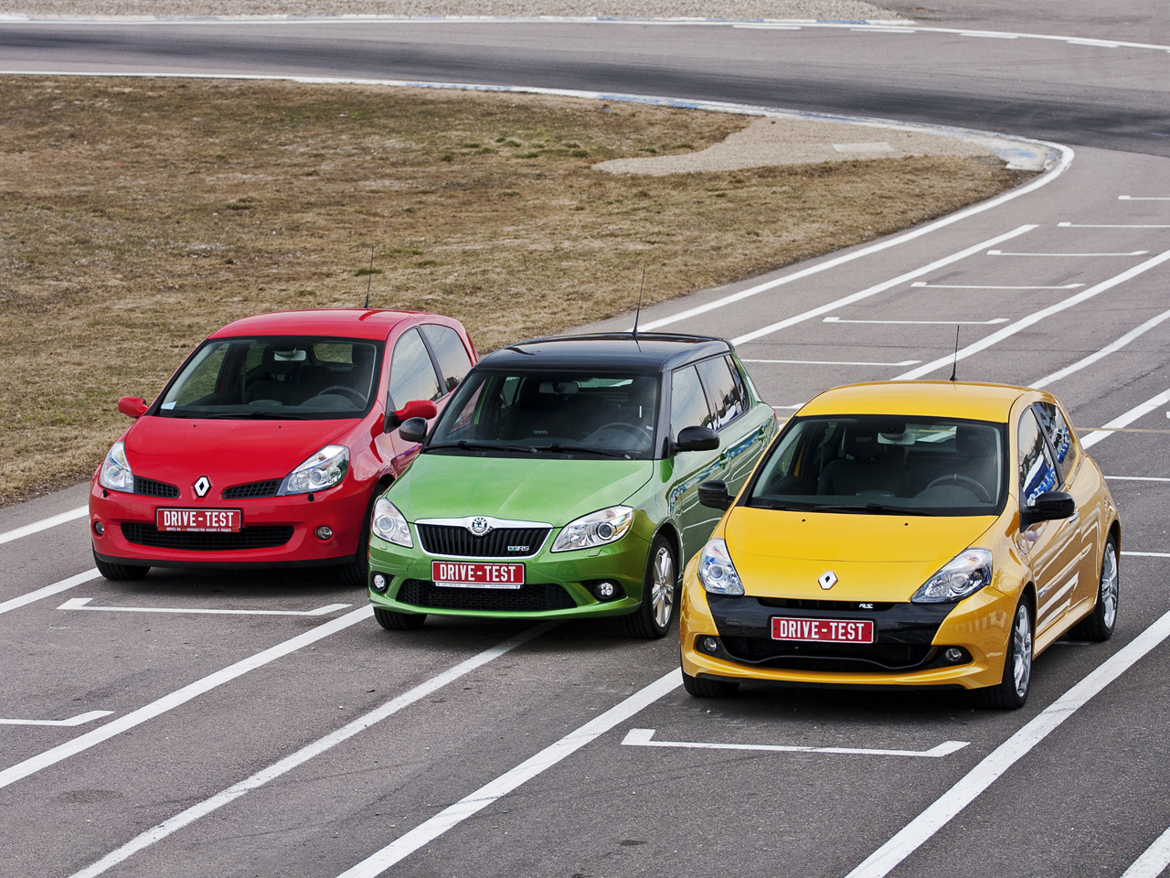 Renault Clio RS приготовлен по классическому рецепту «горячего» хэтчбека. Трёхдверный кузов, атмосферный двухлитровый мотор с хорошей отдачей на верхах и механическая коробка передач. А создатели зелёного автомобильчика Skoda Fabia RS, кажется, безоговорочно ошиблись с ингридиентами. Банальная пятидверка оснащена турбомотором 1.4, и работает он в паре с «роботом». Некорректное сравнение? Отнюдь: мощность Фабии составляет 180 л.с., а сцеплений у семиступенчатой коробки DSG — как раз на два наших Clio.