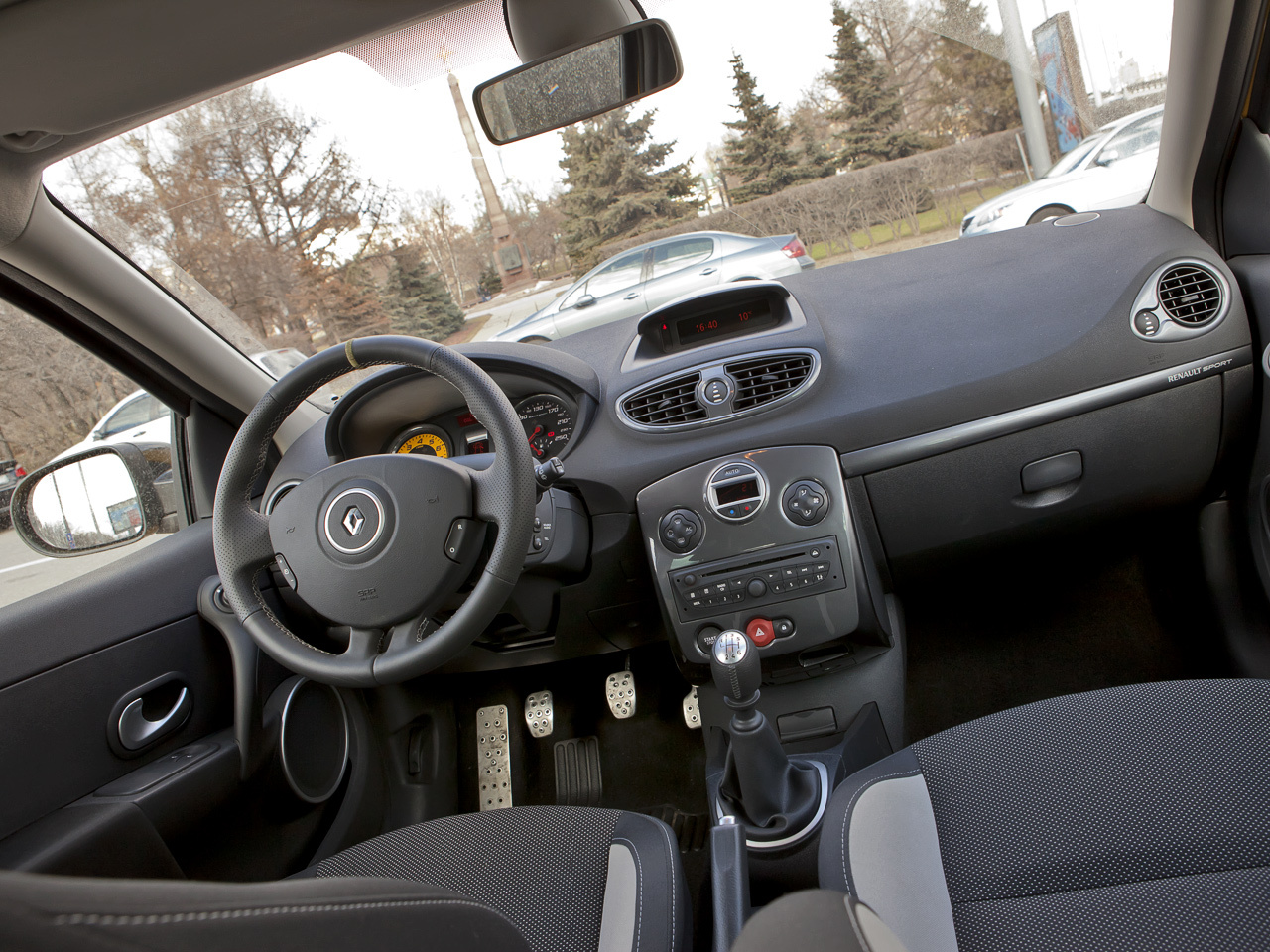 Крайняя левая педаль у Clio RS образца 2009 года тоже скрипит. Дворник расположен там же, где и раньше, и по-прежнему обязывает инструктировать мойщиков, чтоб не обдирали краску, когда протирают стекло. Зато рычаг «механики» попадает в лузы передач точнее и легче, а обивка кресел на вид и на ощупь кажется более долговечной. И монохромный дисплей с увеличенным разрешением отображает больше информации. Стал симпатичнее блок аудиосистемы, которая дополнена поддержкой протокола Bluetooth.