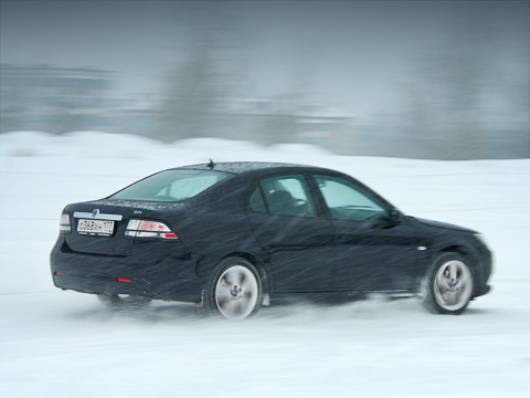 Но совсем здорово было бы увидеть на презентации полноприводные Саабы. Сколько я ни искал, ни одного не нашёл. Так что любое неосторожное движение газом — и либо шлифуешь лёд, либо идёшь собирать вылетевшие шипы.