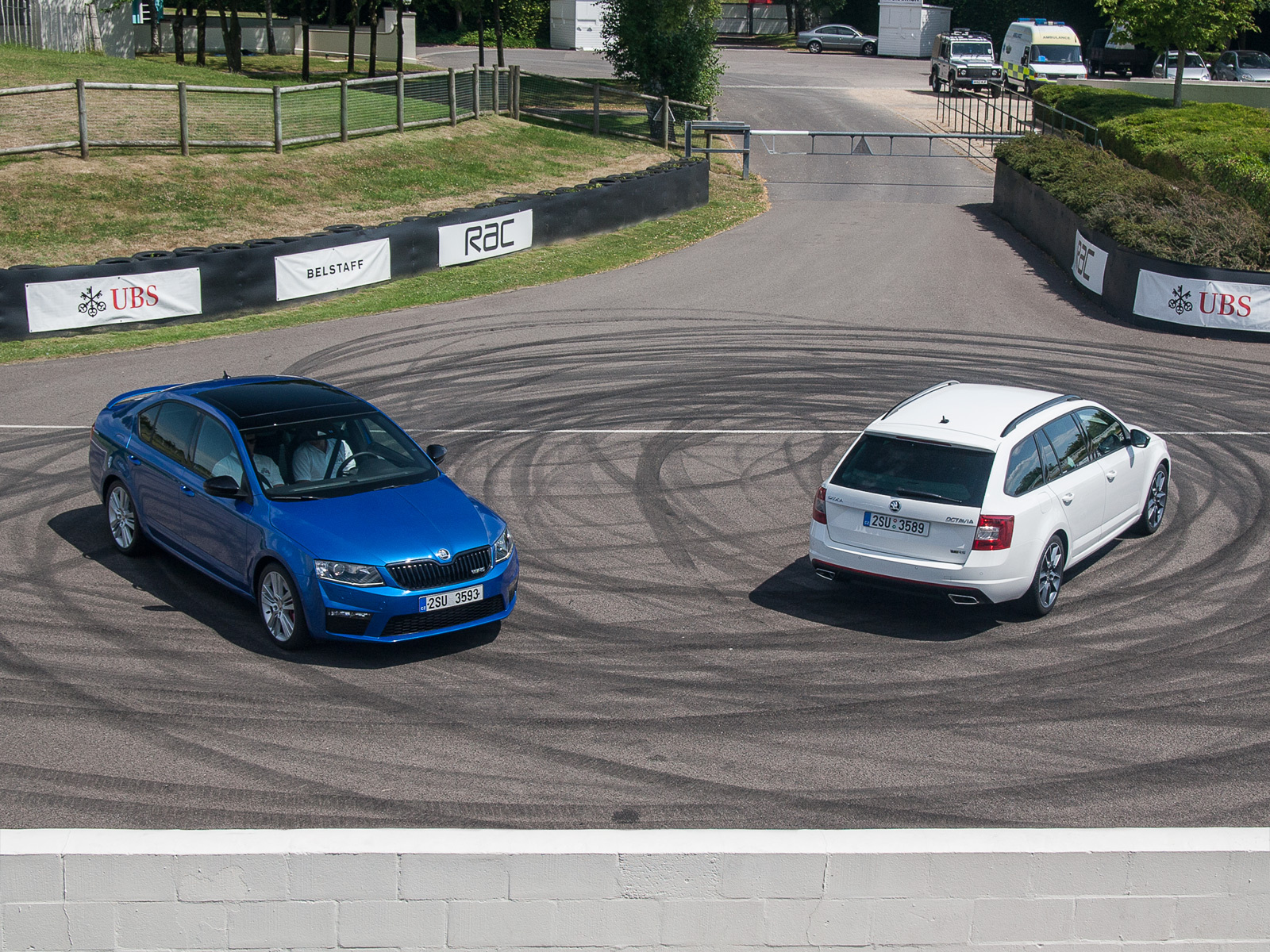 Новейшую Октавию RS её создатели впервые официально представили на гоночной трассе Goodwood Circuit. Несмотря на гудвудское название, в знаменитом Фестивале скорости трек не участвует. Он вообще простаивает. Последним серьёзным событием тут была встреча Британского клуба автогонщиков 2 июля 1966 года. Нынче здесь проходят тесты и работает аэродром для малой авиации. И вдруг — премьера Шкоды для всей мировой автопрессы. Стоя на террасе двухэтажного павильона имени чемпиона Формулы-1 Джеки Стюарта, мы наконец дождались обещанного шоу. На трассу вылетела пара бело-зелёных бестий и, оглушая всех и вся, принялась жечь покрышки. Напустив пахучую дымовую завесу и расчертив асфальт чёрными кругами, ралли-кары Skoda Fabia S2000 исчезли, уступив место виновнице торжества. Лифтбек и универсал бесшумно, совершенно буднично приехали и встали. После фабийной вакханалии Octavia RS выглядела не горячей штучкой, а повседневным семейным автомобилем. И на то был хитрый расчёт.