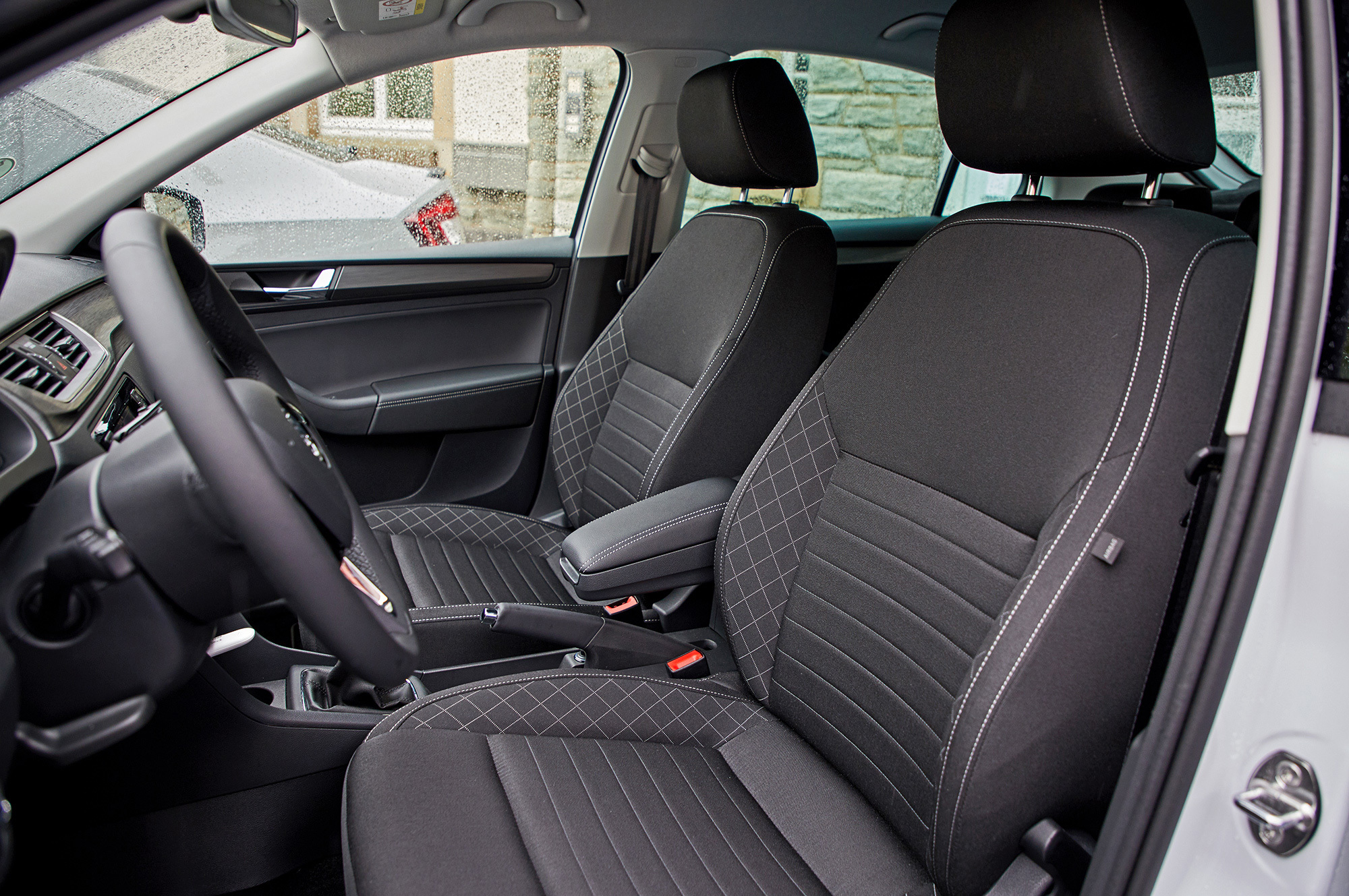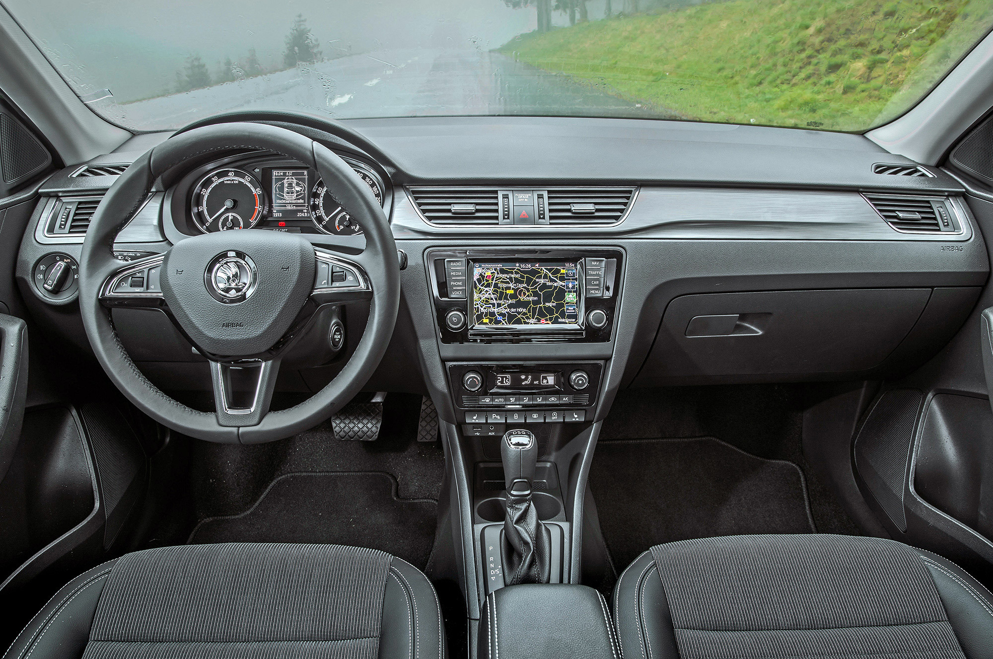 В салоне нововведения подметить проще: переработаны приборы, на дверях появились мягкие подлокотники с прострочкой и красивые гранёные ручки. Изменились блок климат-контроля, дефлекторы вентиляции, дизайн поперечной декоративной вставки. Мультимедийные системы Swing и Amundsen прибавили в диагонали примерно по полдюйма. Теперь Rapid можно заказать с системой Smart Link, которая позволяет увязать Rapid со смартфоном при помощи систем Android Auto, Apple CarPlay или MirrorLink. Ну и зонтик в нише под передним пассажирским креслом, как в Октавии.