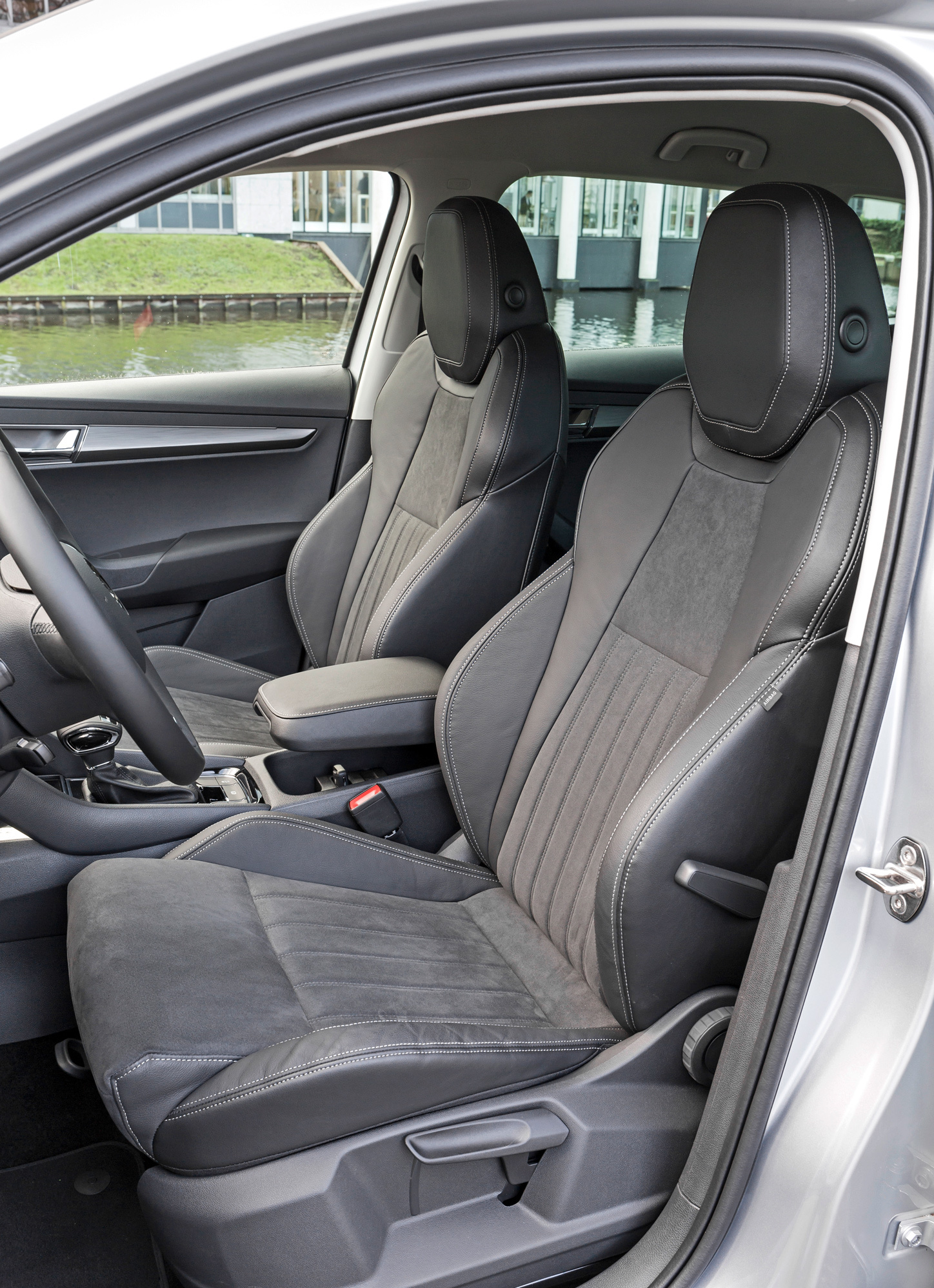 Баритон двигателя не слишком навязчив, но заметен во всех режимах. Это самый характерный источник звука в салоне. В целом я бы не назвал Karoq шумным, прочие возмущения сбалансированы. Шкоде повезло с шинами: Continental VikingContact 7 гудит сдержанно. Увы, не могу оценить вклад аэродинамики в акустическую картину, поскольку в день теста в окрестностях Амстердама дует так, что даже в неподвижном автомобиле стоит заметный свист. И это при том, что Karoq прилично развязан от внешних шумов.