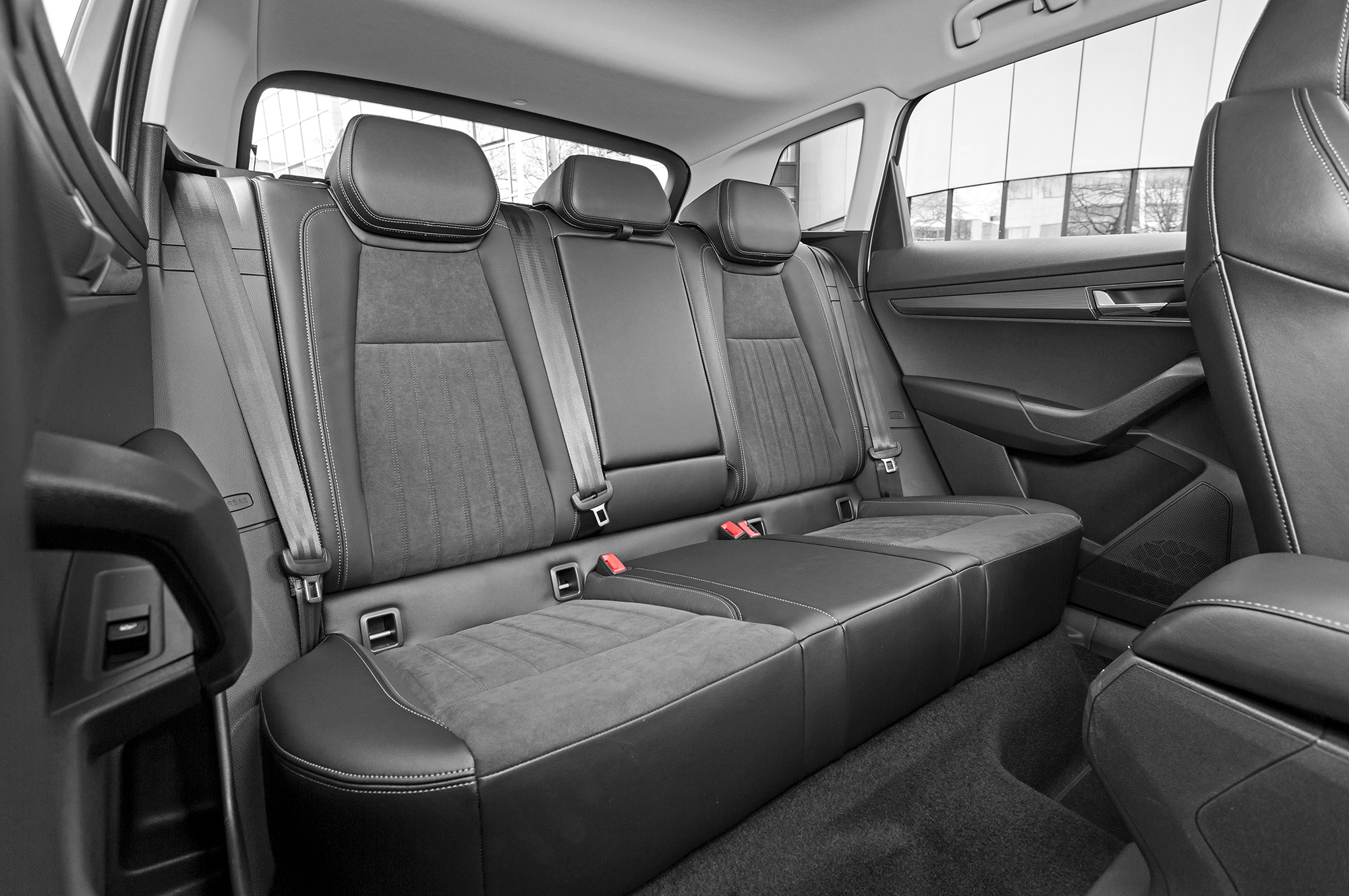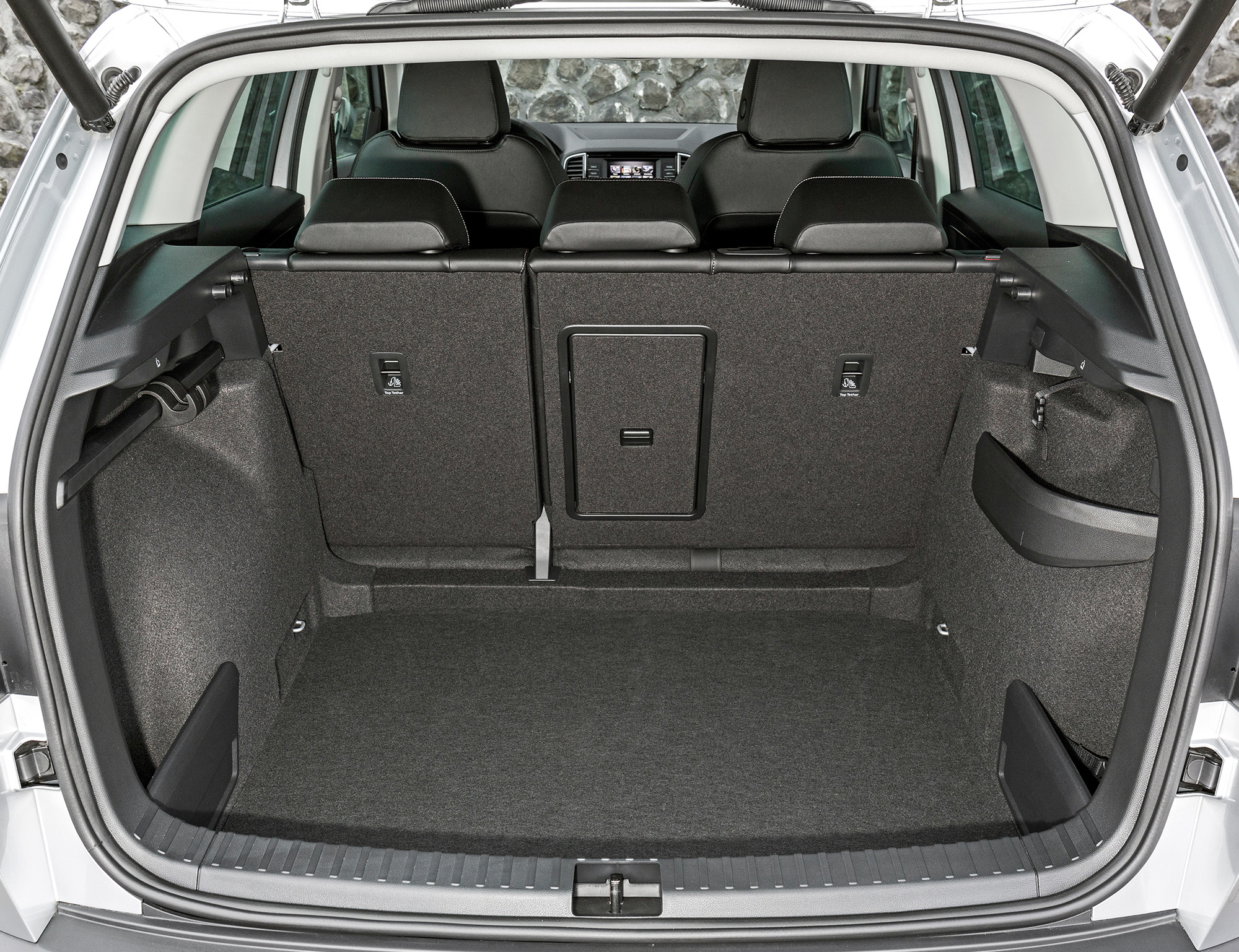 По сравнению с чешским локализованный Karoq лишён трёх отдельных сидений второго ряда, которые можно сложить или даже вытащить. Нет таких и в прайс-листе. Только разделённый на две неравные части диван с небольшим лючком для длинномеров. Падая на подушку, спинка образует большую ступеньку с дном багажника. Сюда явно просится регулируемый по высоте европейский фальшпол, хотя и ему не дано образовать ровную площадку.